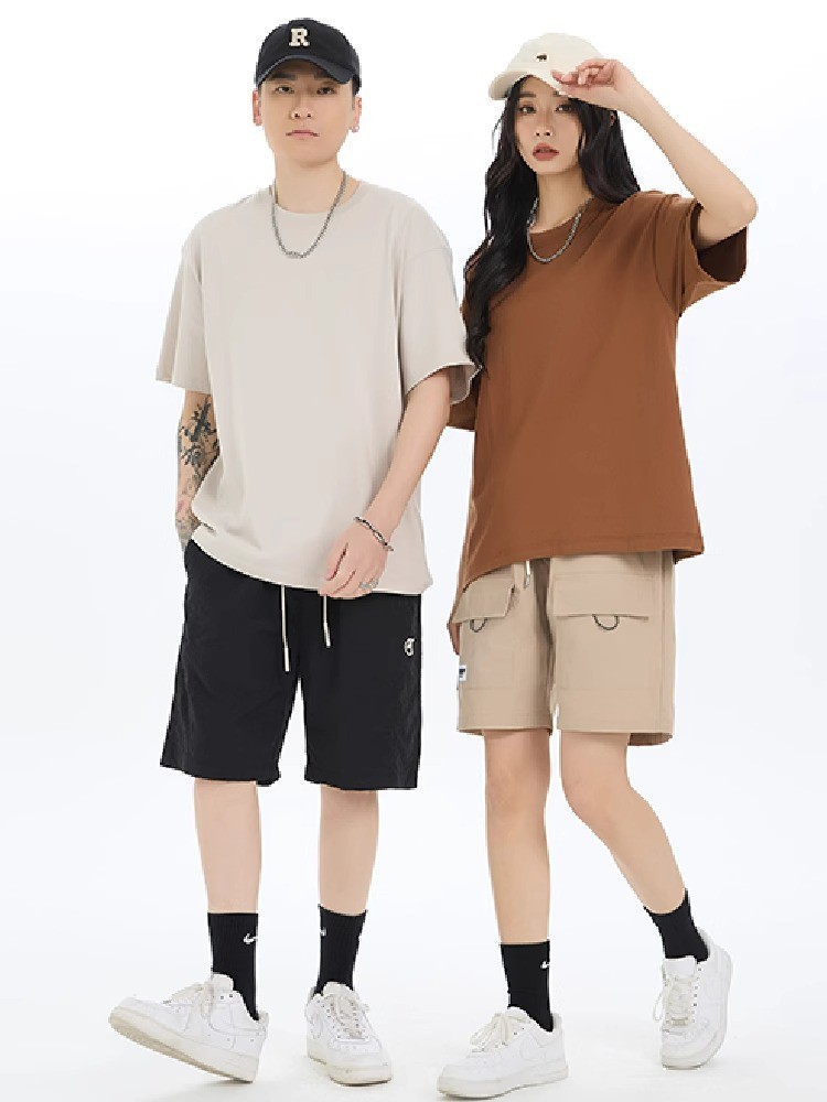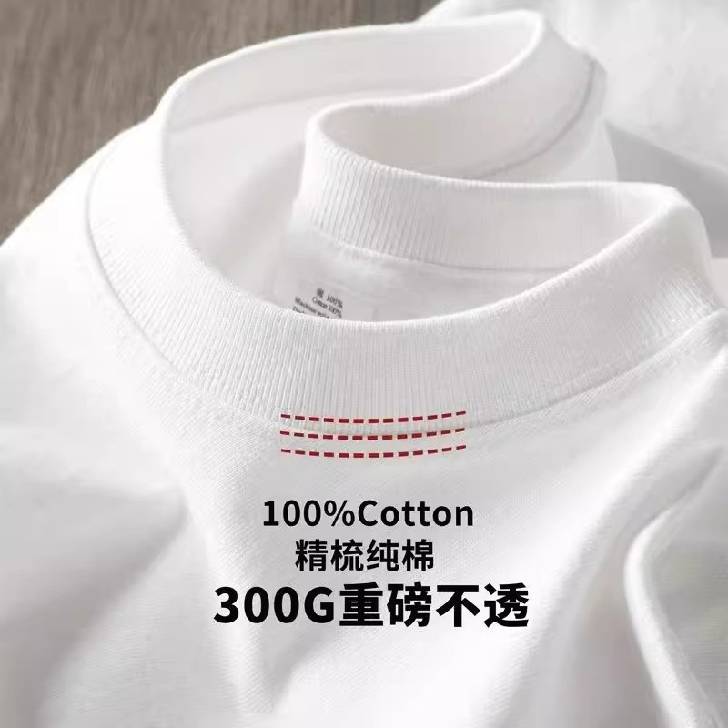 남성과 여성을위한 300g 무거운 반팔 티셔츠 두껍고 불투과성 단색 반소매 느슨한 플러스 사이즈 기본 탑 옷스토어 가기