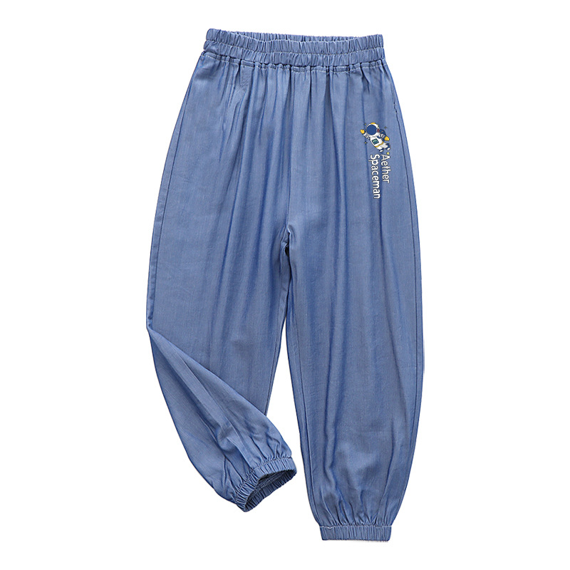 2024 새로운 소년 청바지 아이스 실크 캐주얼 바지 만화 인쇄 잘 생긴 작은 소년 유행 바지