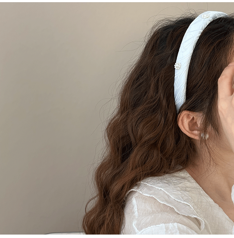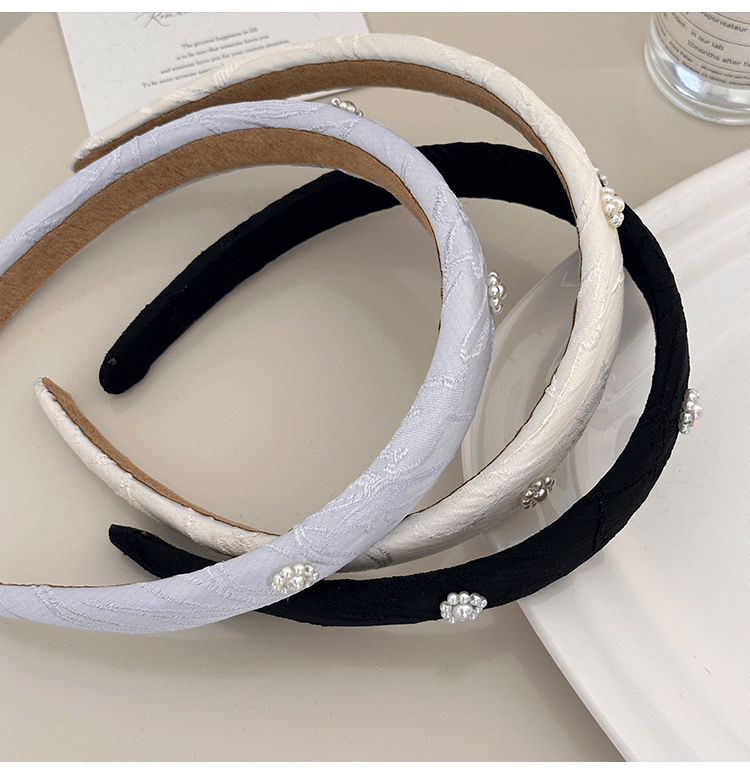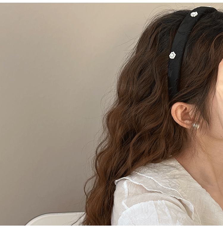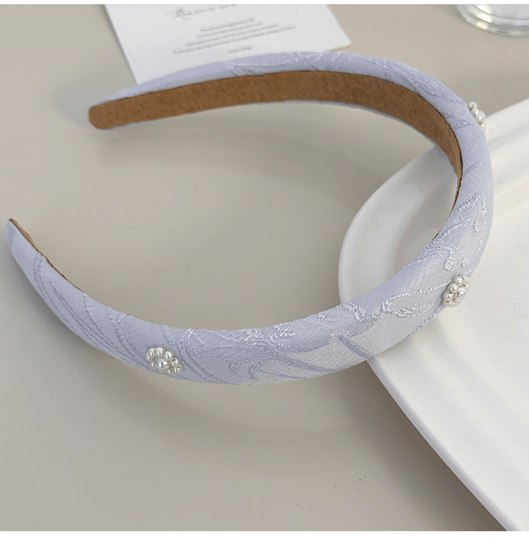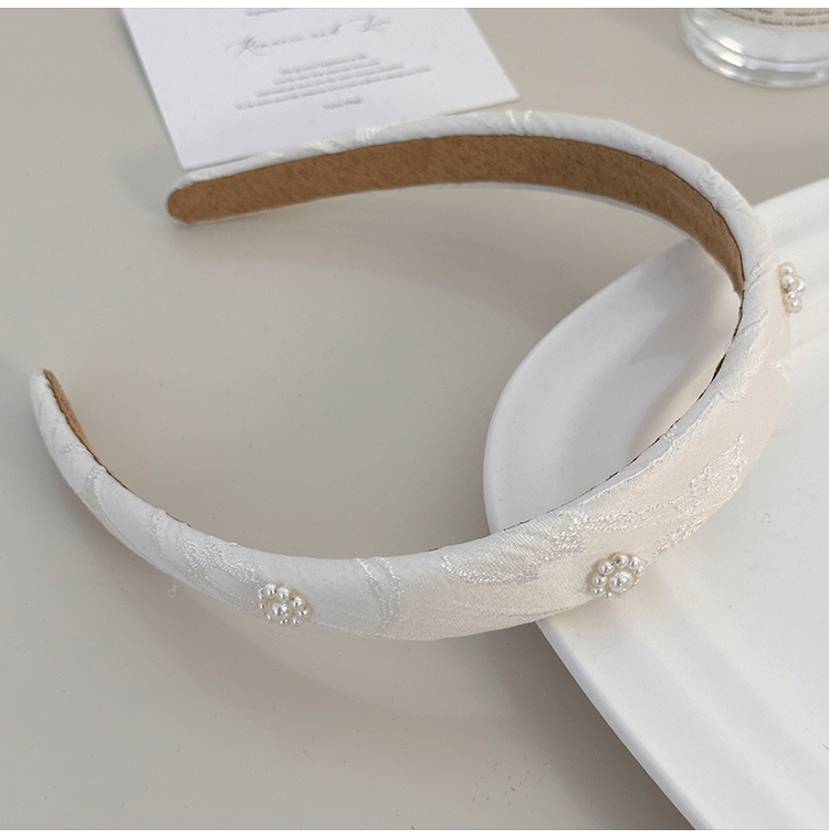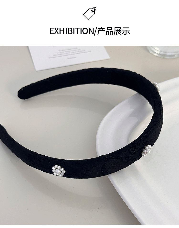 간단한 자수 진주 꽃 스폰지 머리띠 2024 새로운 스타일 신선한 스타일 머리띠 높은 두개골 탑 외출 올 매치 헤어 스탬프스토어 가기