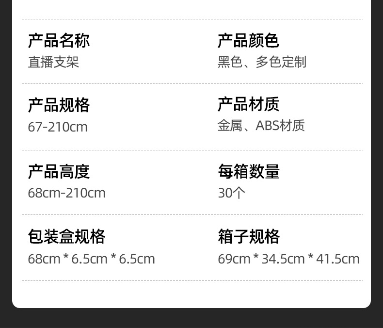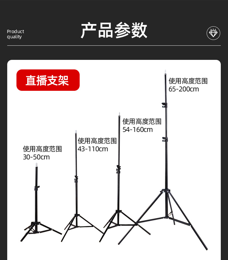 2.1米手机直播支架拍照摄影补光三脚架落地式支架多功能摄影支架