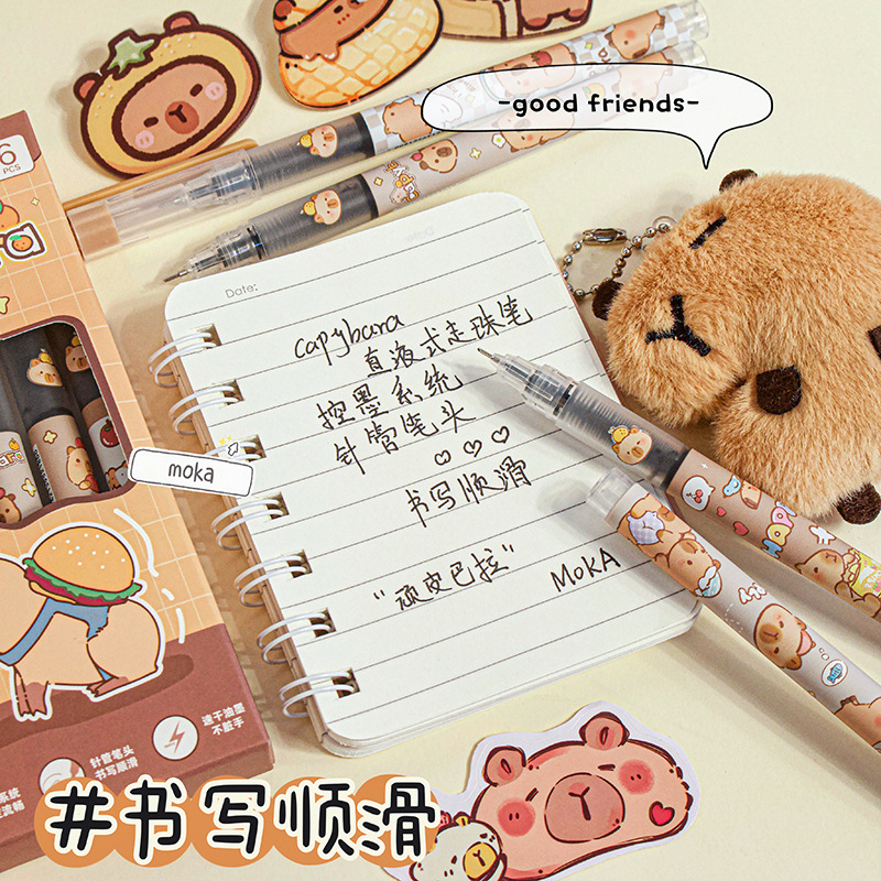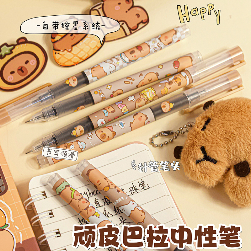 새로운 스타일의 귀여운 카드 가죽 스트레이트 액체 젤 펜 귀여운 & 만화 학생 쓰기 블랙 시그니처 테스트 풀 캡 펜스토어 가기