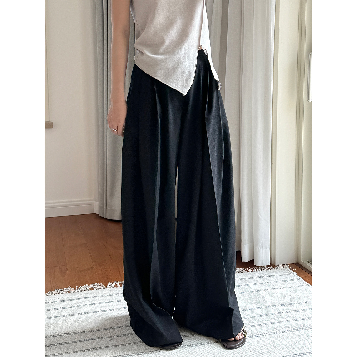Lvu 여름 새로운 일본 스타일 예술적 댄스 센스 캐주얼 와이드 레그 세트 바지 편안한 착용감 부드럽고 편안한 세트 바지