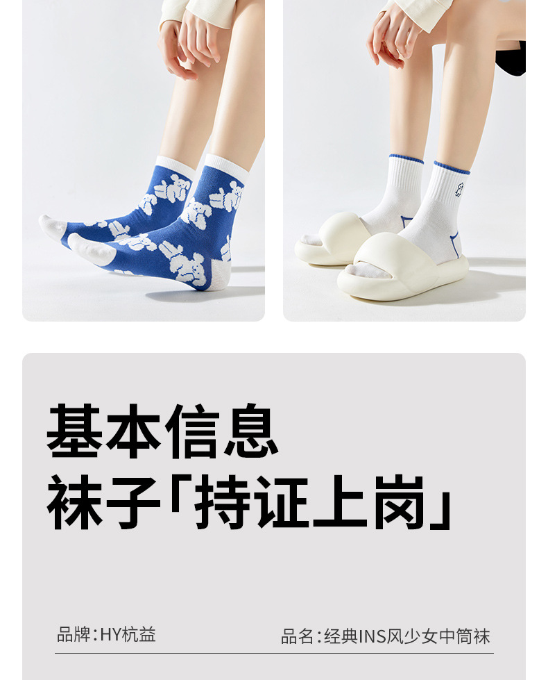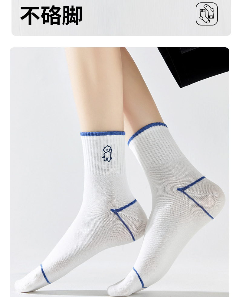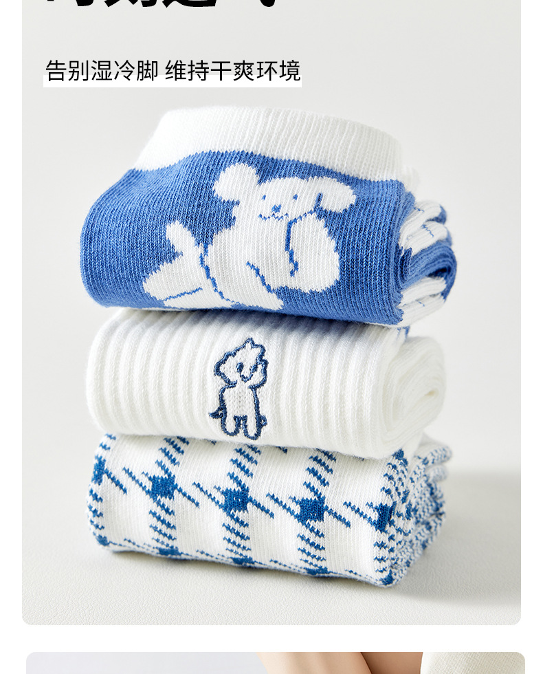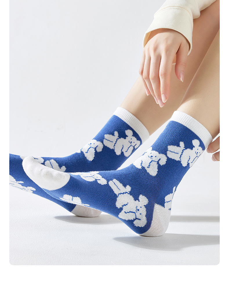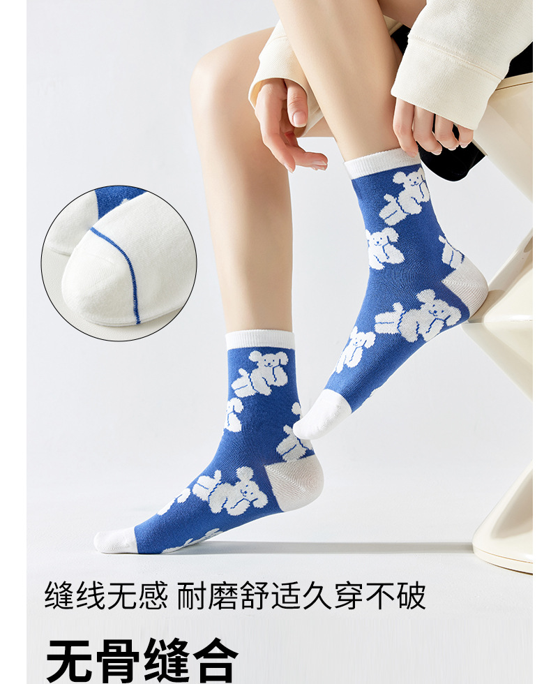 블루 강아지 양말 여자 중간 길이 양말 Ins 트렌디 한 봄과 여름 순수 코튼 한국식 귀여운 대학 스타일 올 매치 스타킹