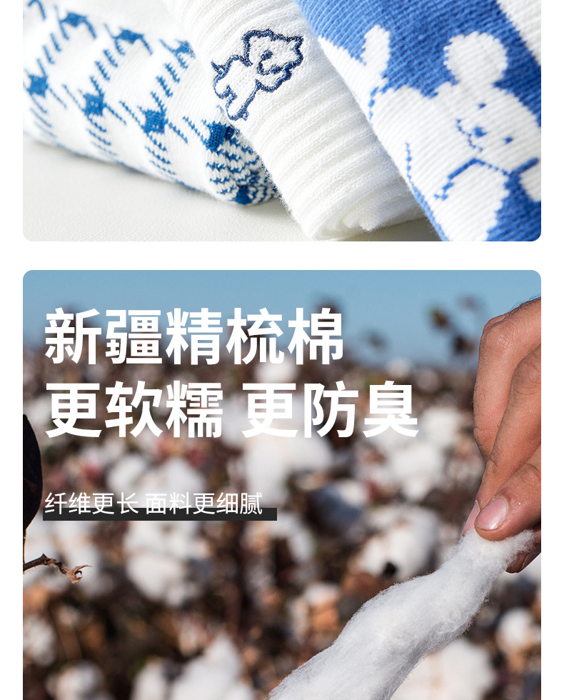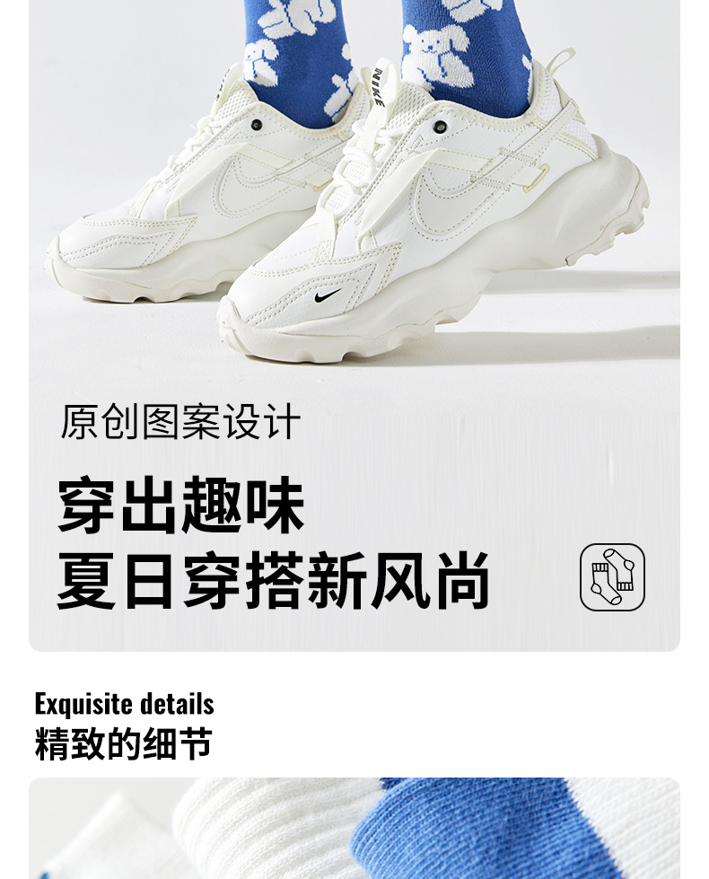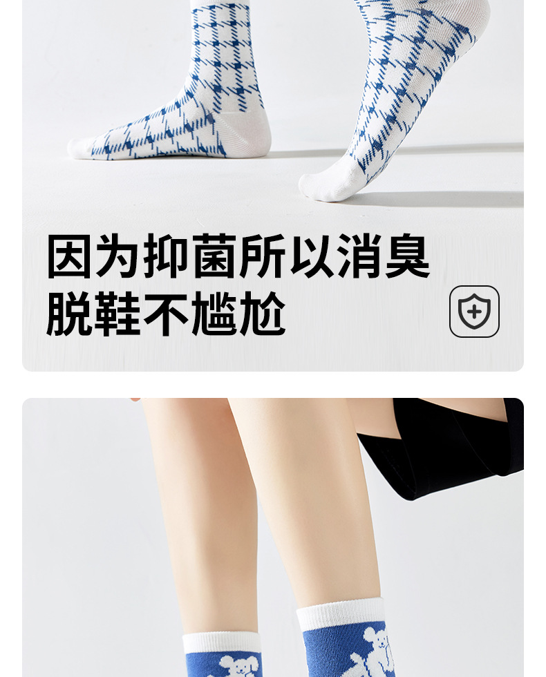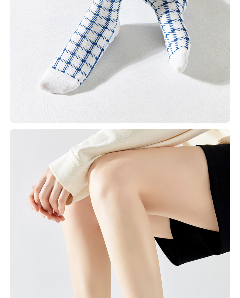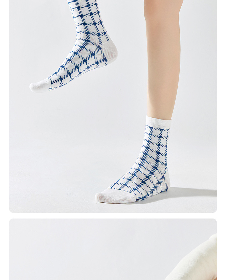 블루 강아지 양말 여자 중간 길이 양말 Ins 트렌디 한 봄과 여름 순수 코튼 한국식 귀여운 대학 스타일 올 매치 스타킹