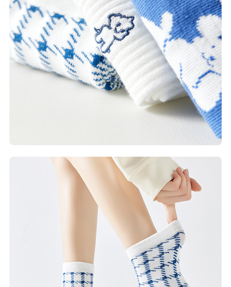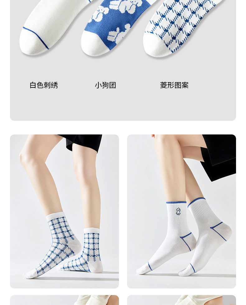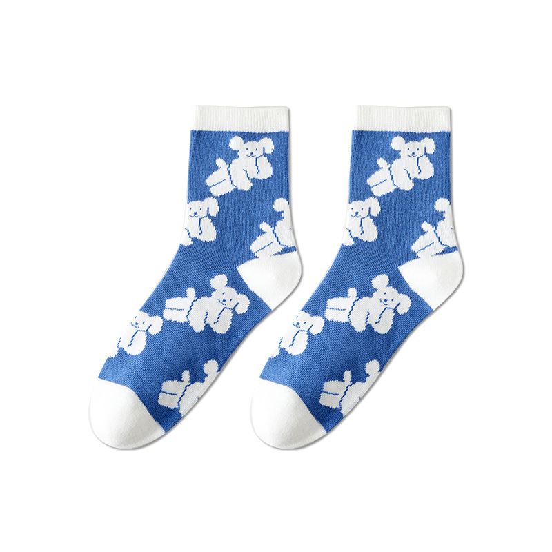 블루 강아지 양말 여자 중간 길이 양말 Ins 트렌디 한 봄과 여름 순수 코튼 한국식 귀여운 대학 스타일 올 매치 스타킹스토어 가기