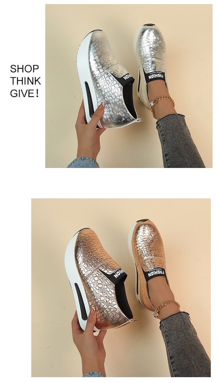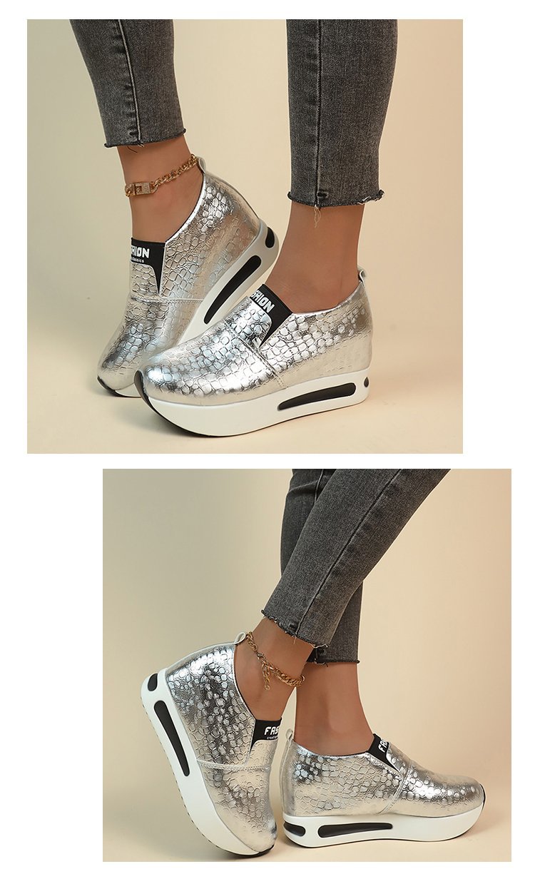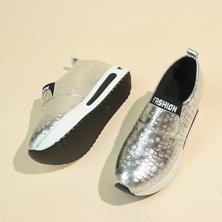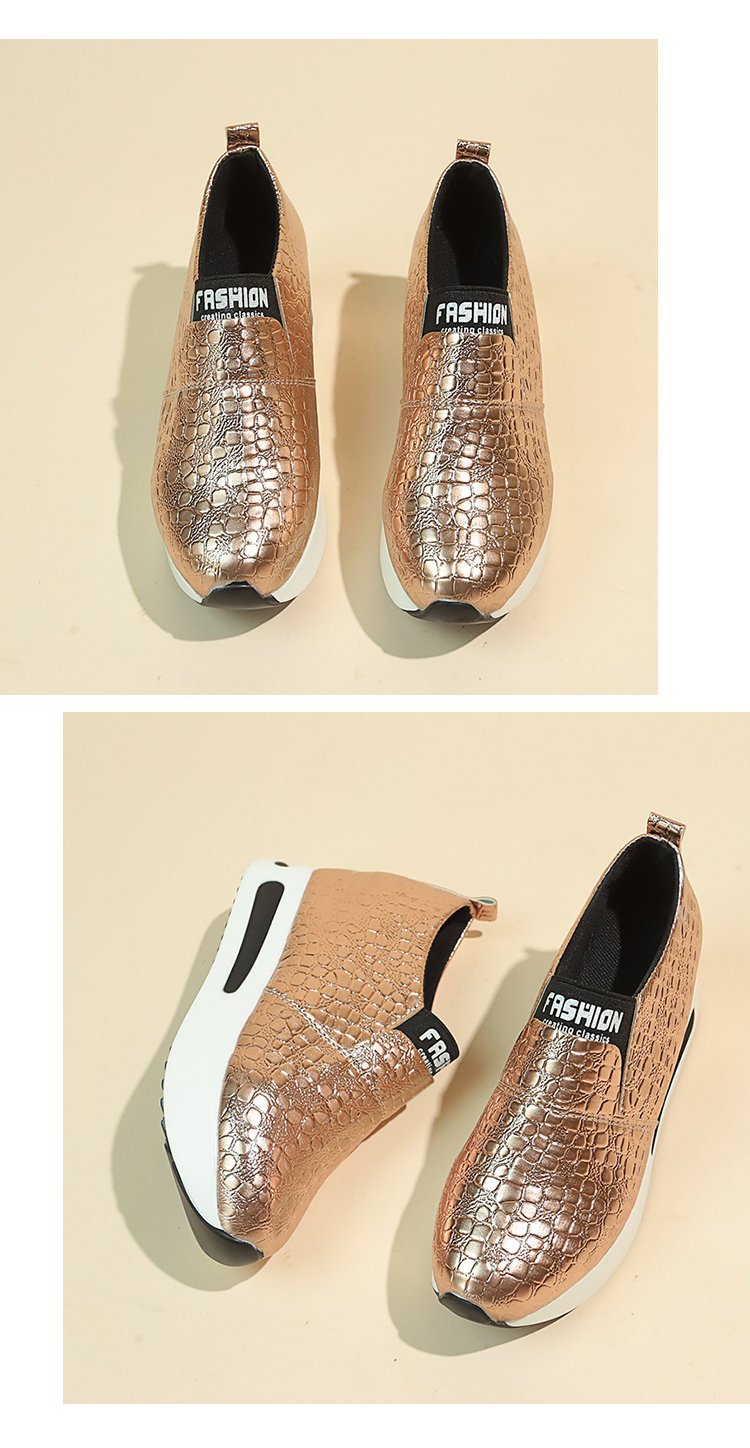 국경 간 플러스 사이즈 스포츠 뱀 인쇄 밝은 가죽 신발 여성의 봄과 가을 2024 폭발 한 페달 스포츠 신발 여성
