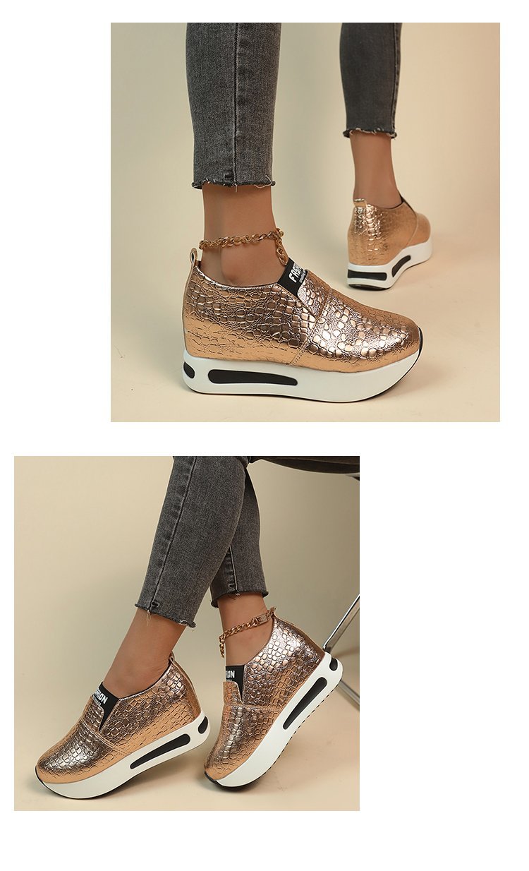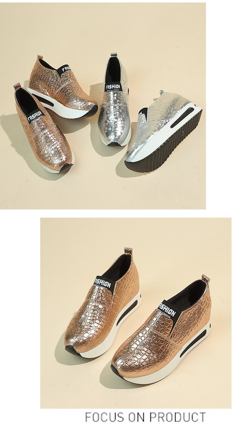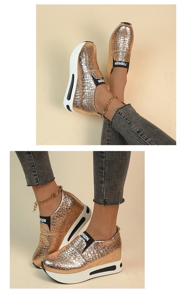 국경 간 플러스 사이즈 스포츠 뱀 인쇄 밝은 가죽 신발 여성의 봄과 가을 2024 폭발 한 페달 스포츠 신발 여성