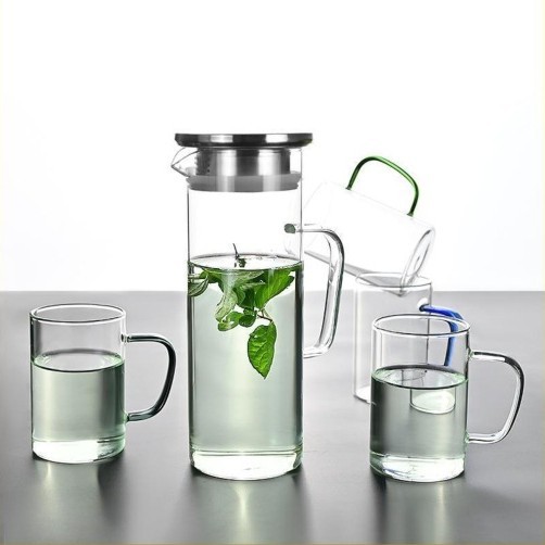 Yingyue 유리 물 세트 5 조각 사무실 가구 높은 붕규산 냉수 주전자 대용량 새해 복지 선물 도매스토어 가기