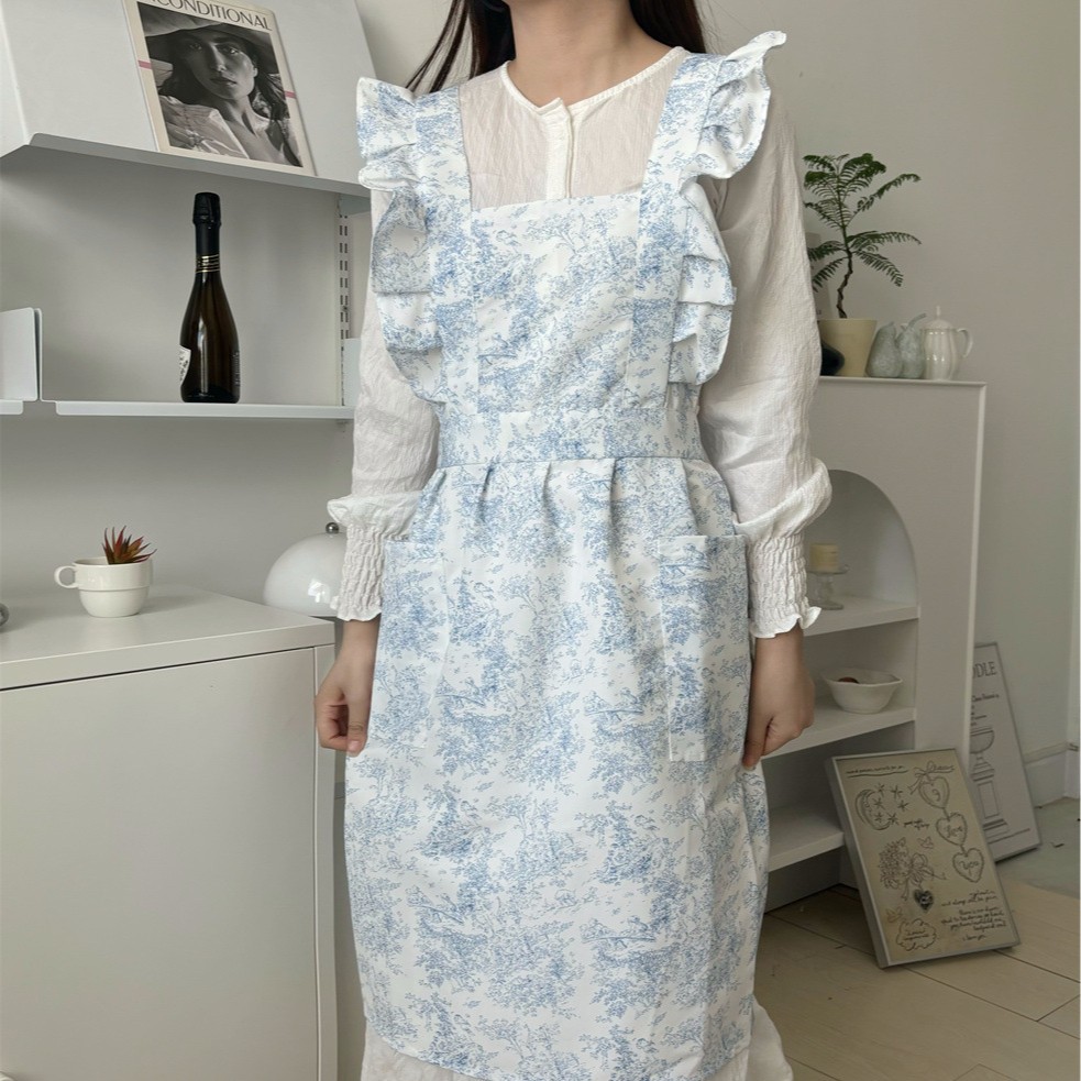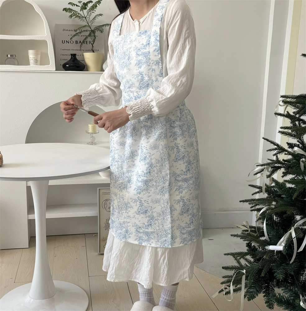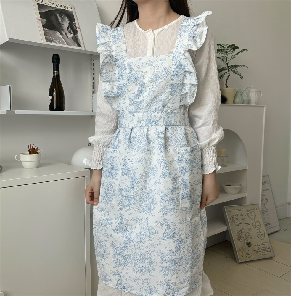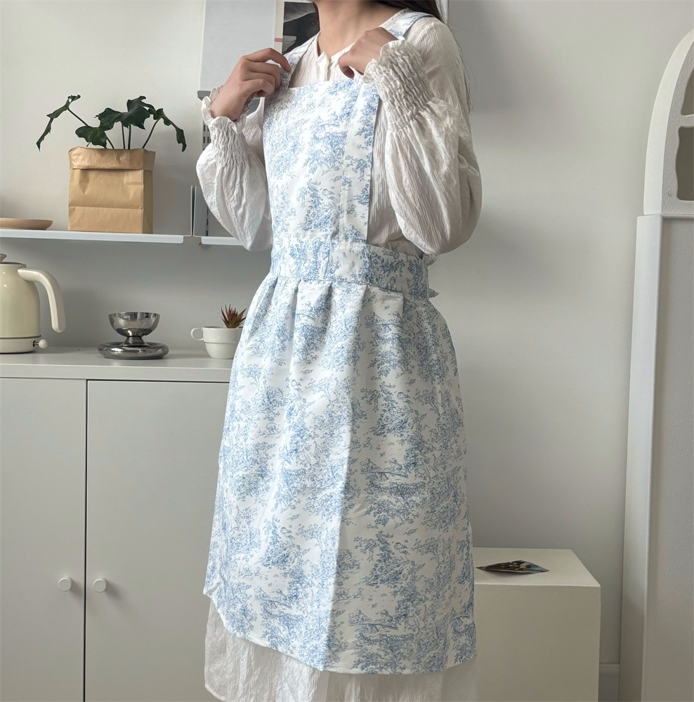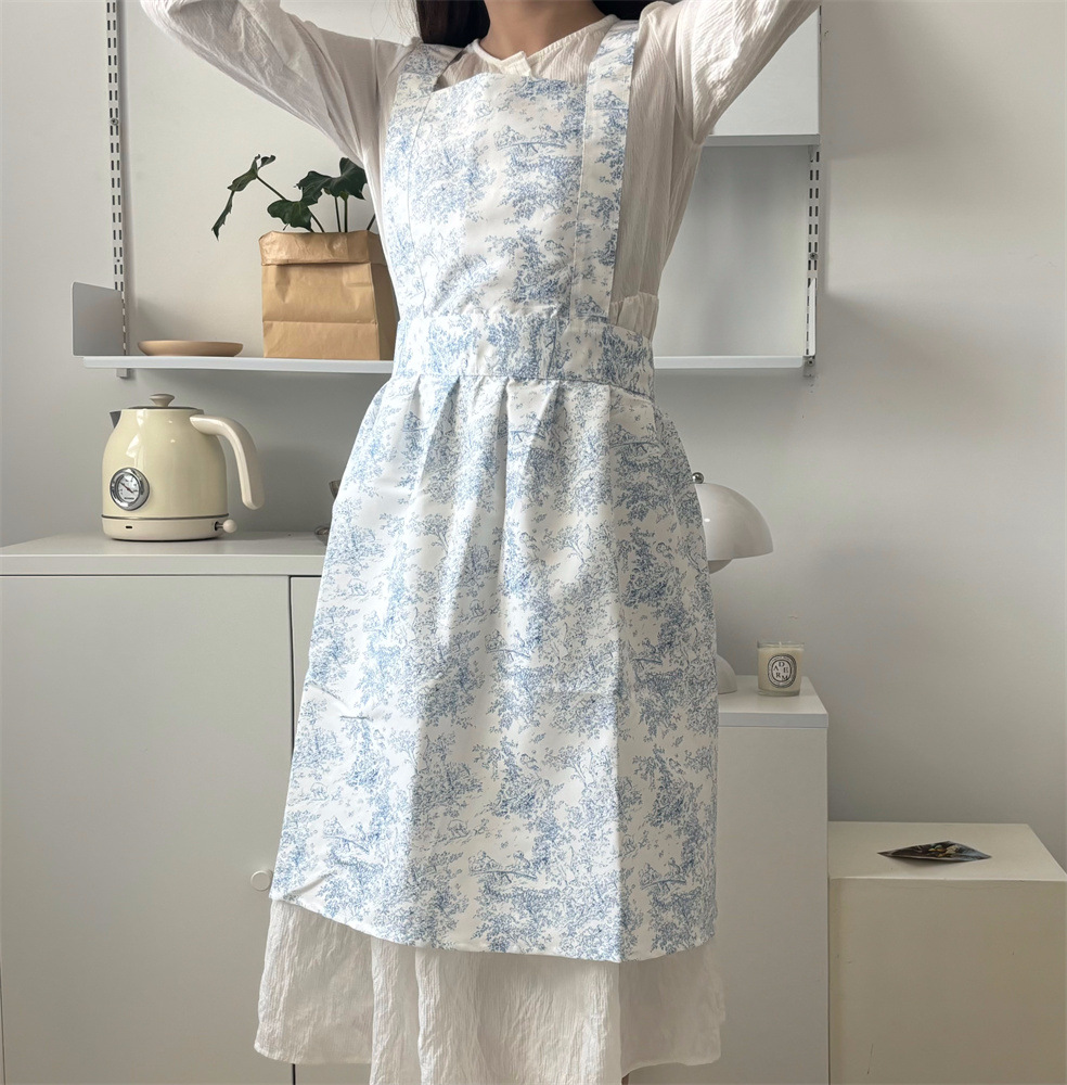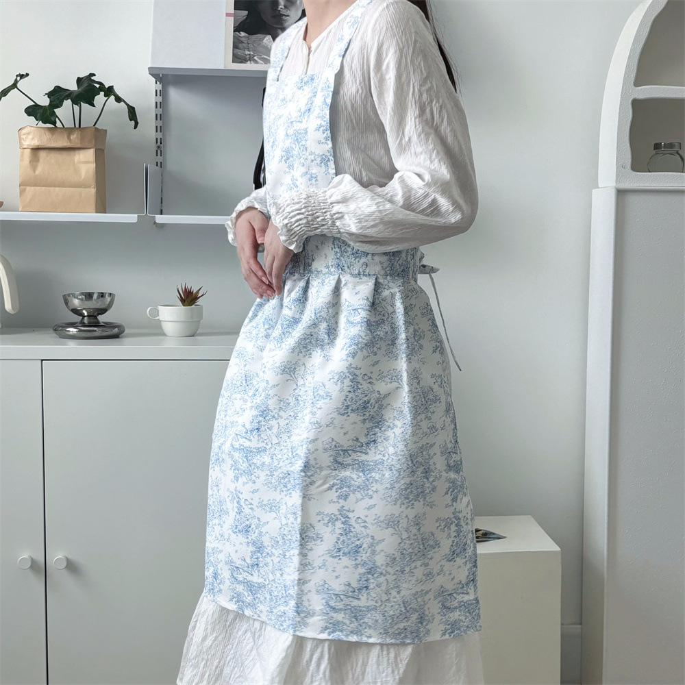 방수 및 오일 방지 블루 잉크 카페 3 차원 앞치마 안티 애쉬 애완 동물 가게 앞치마 대외 무역 한국스토어 가기