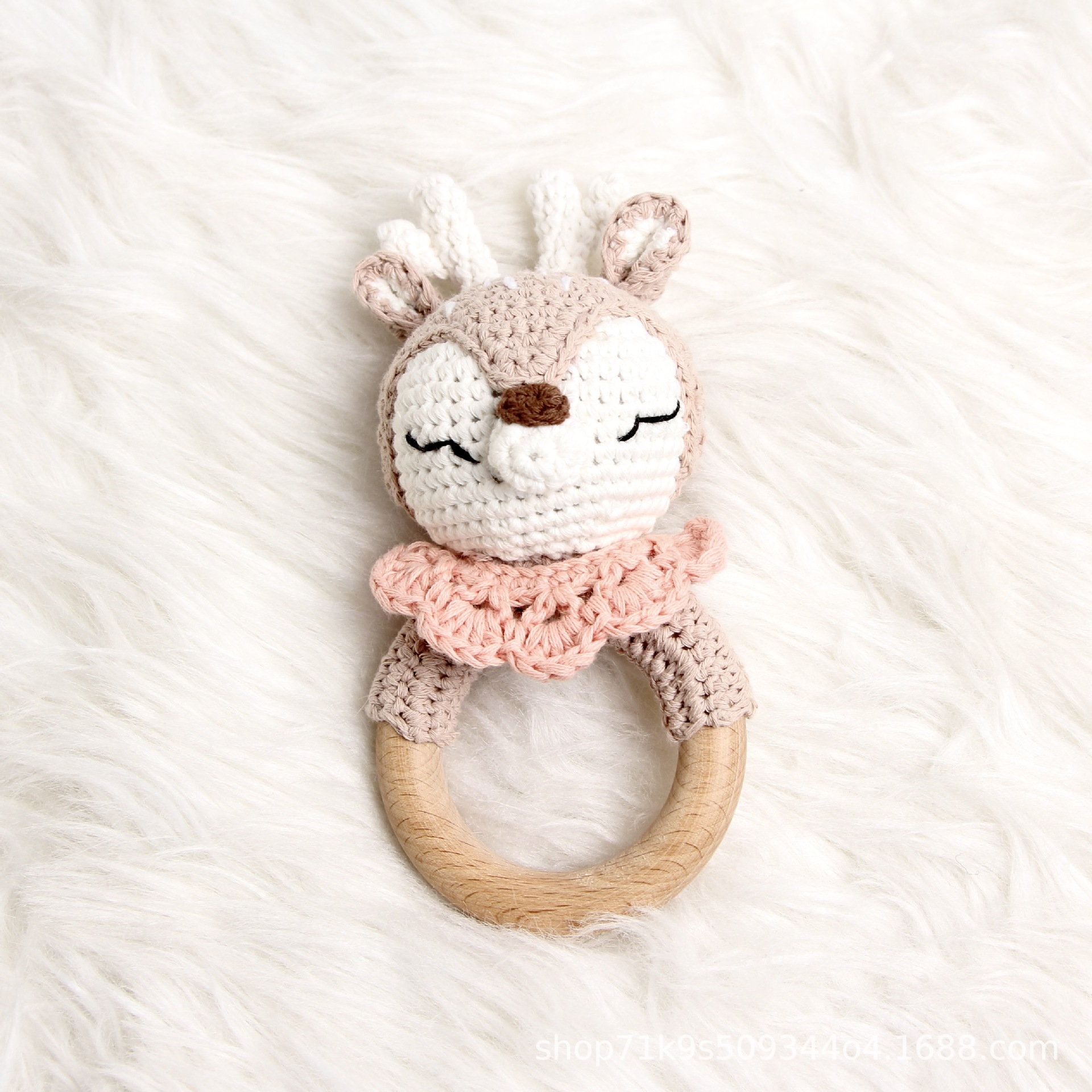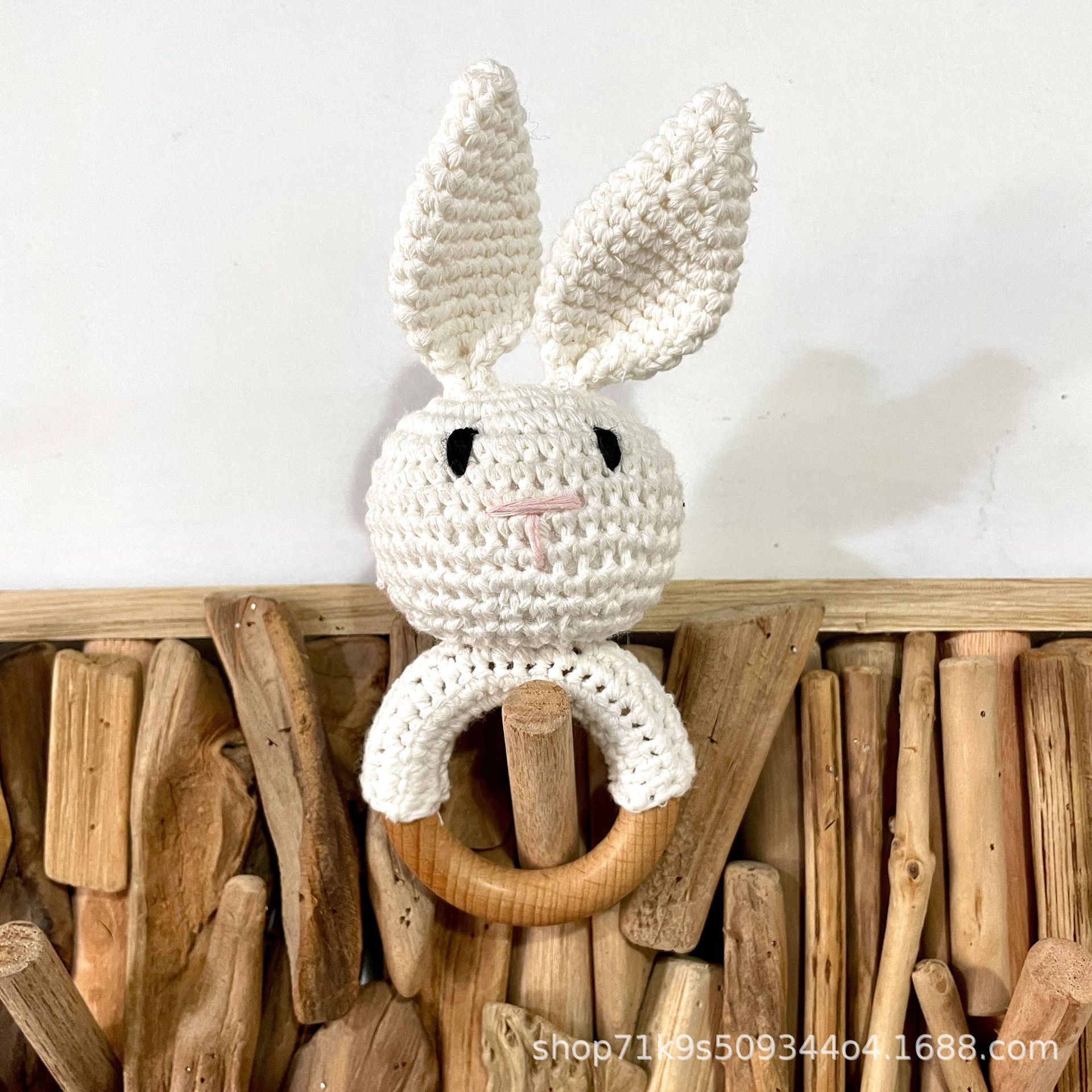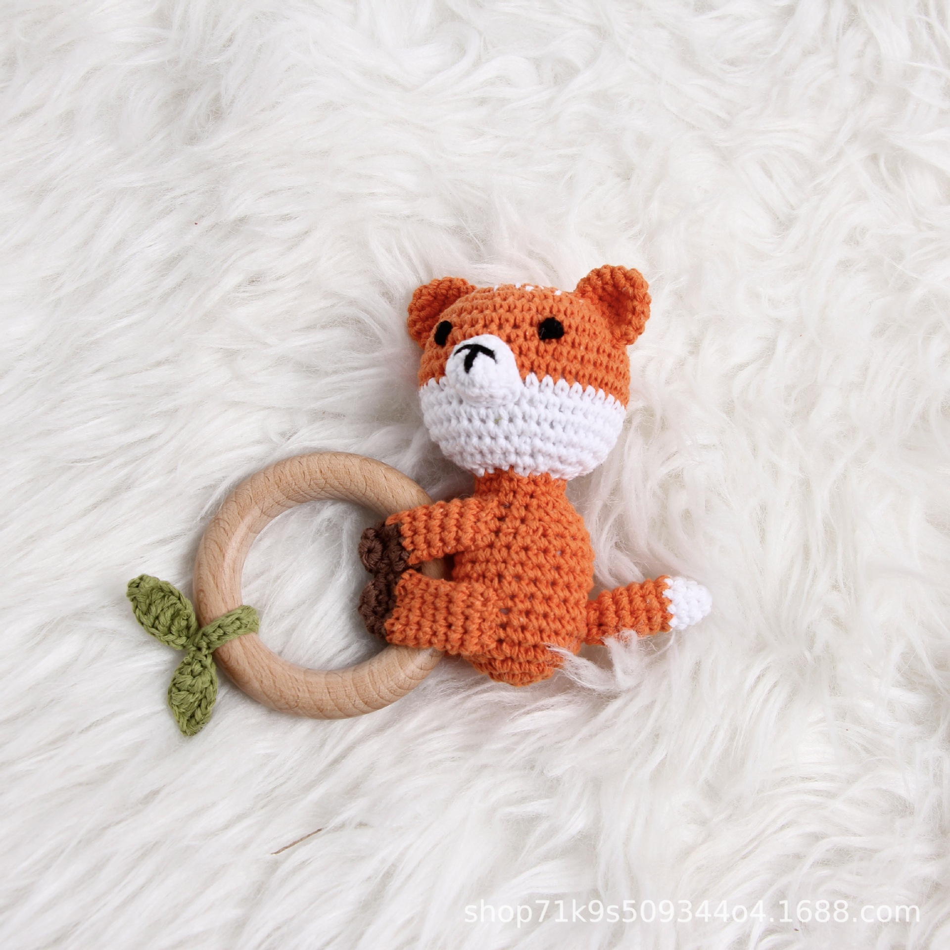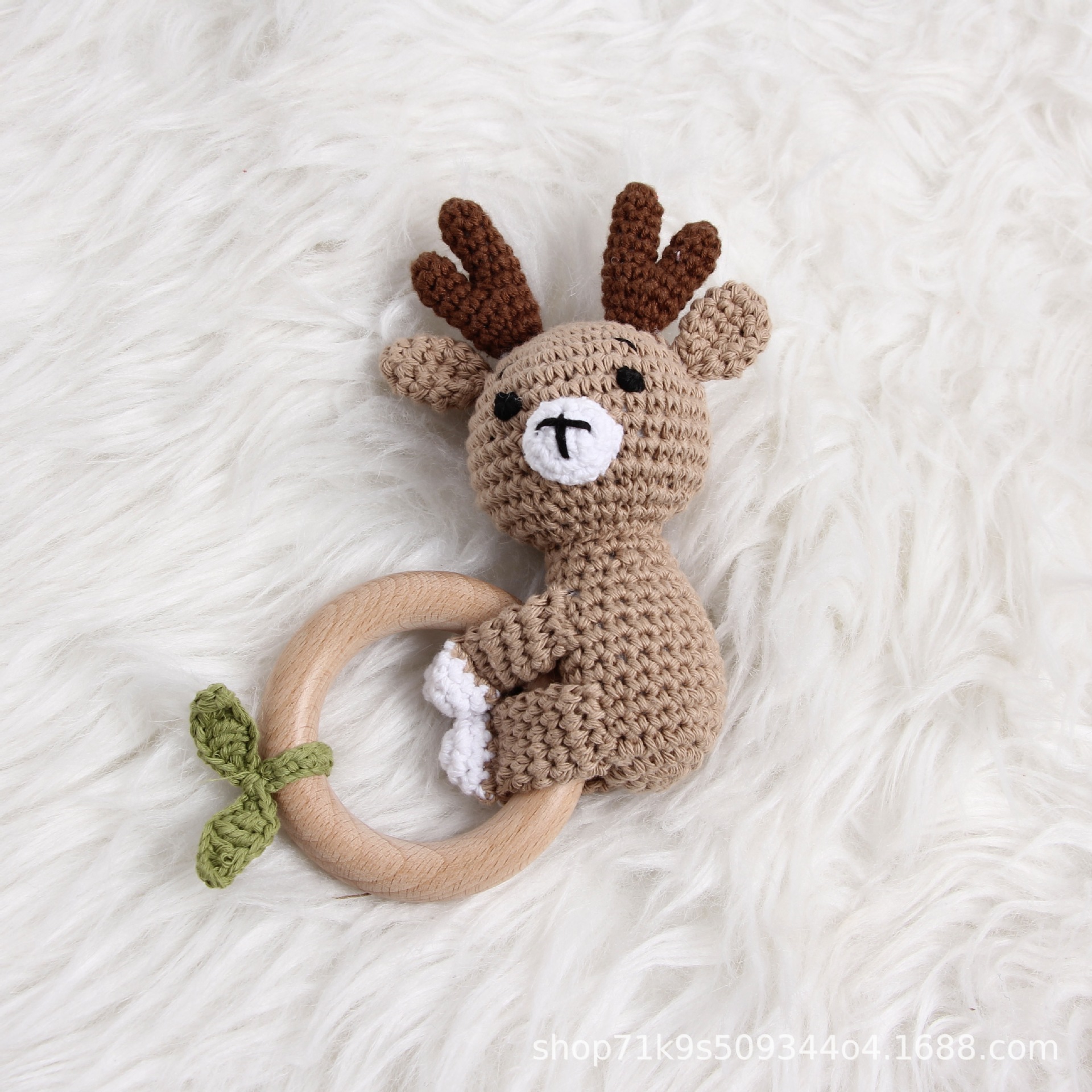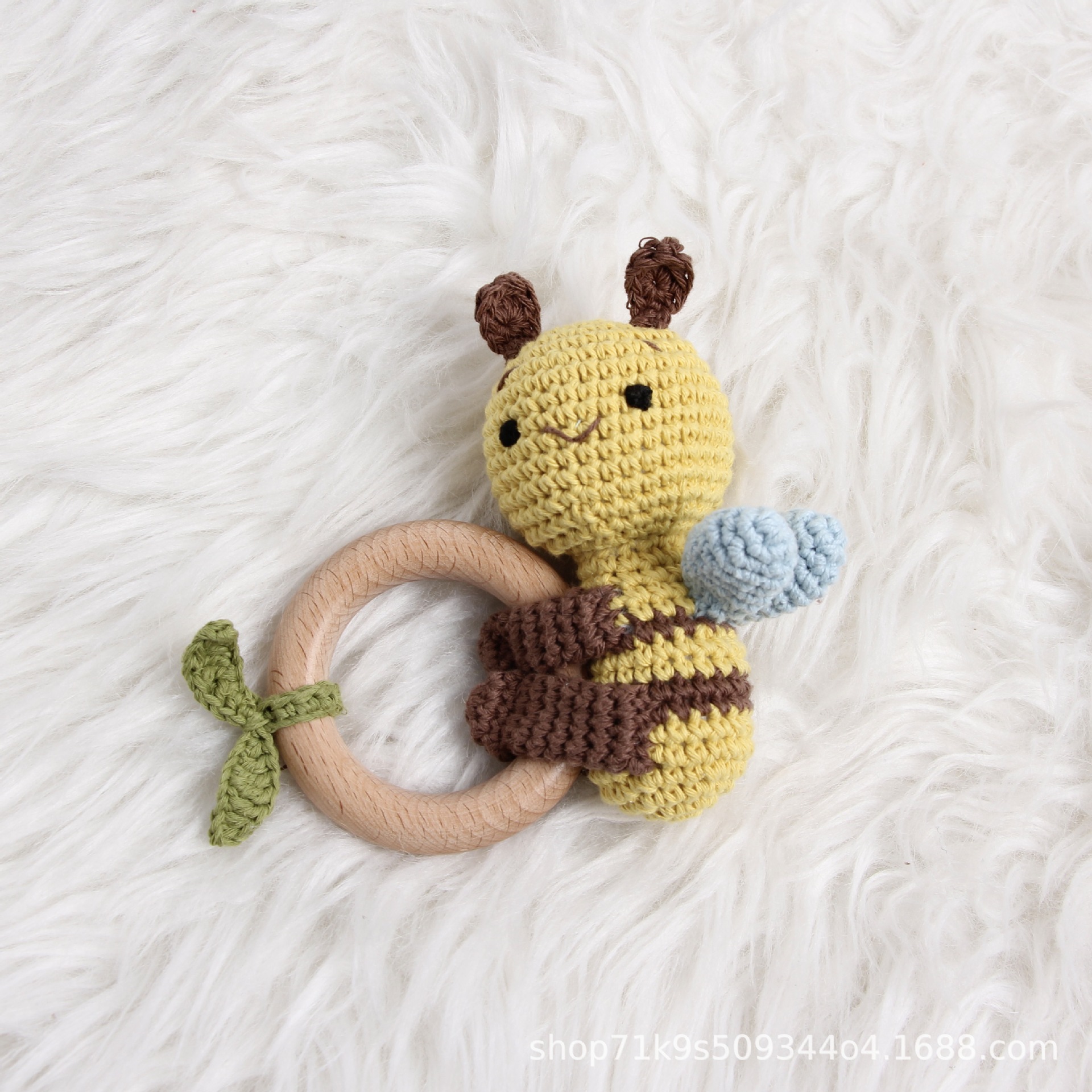 跨境爆款Crochet Rattle 手工钩针木质纯棉摇铃
