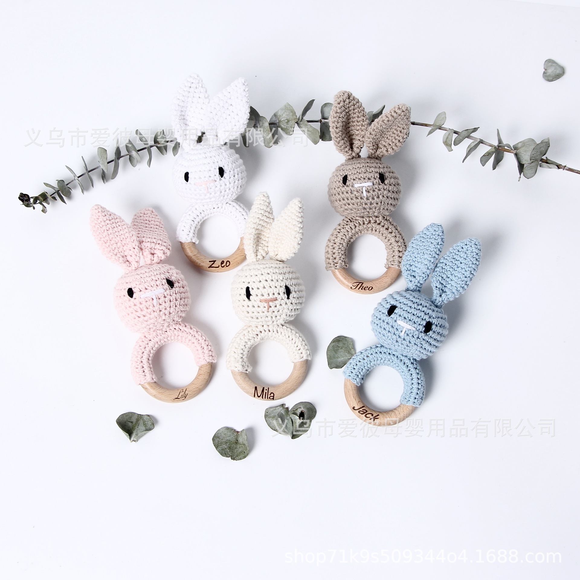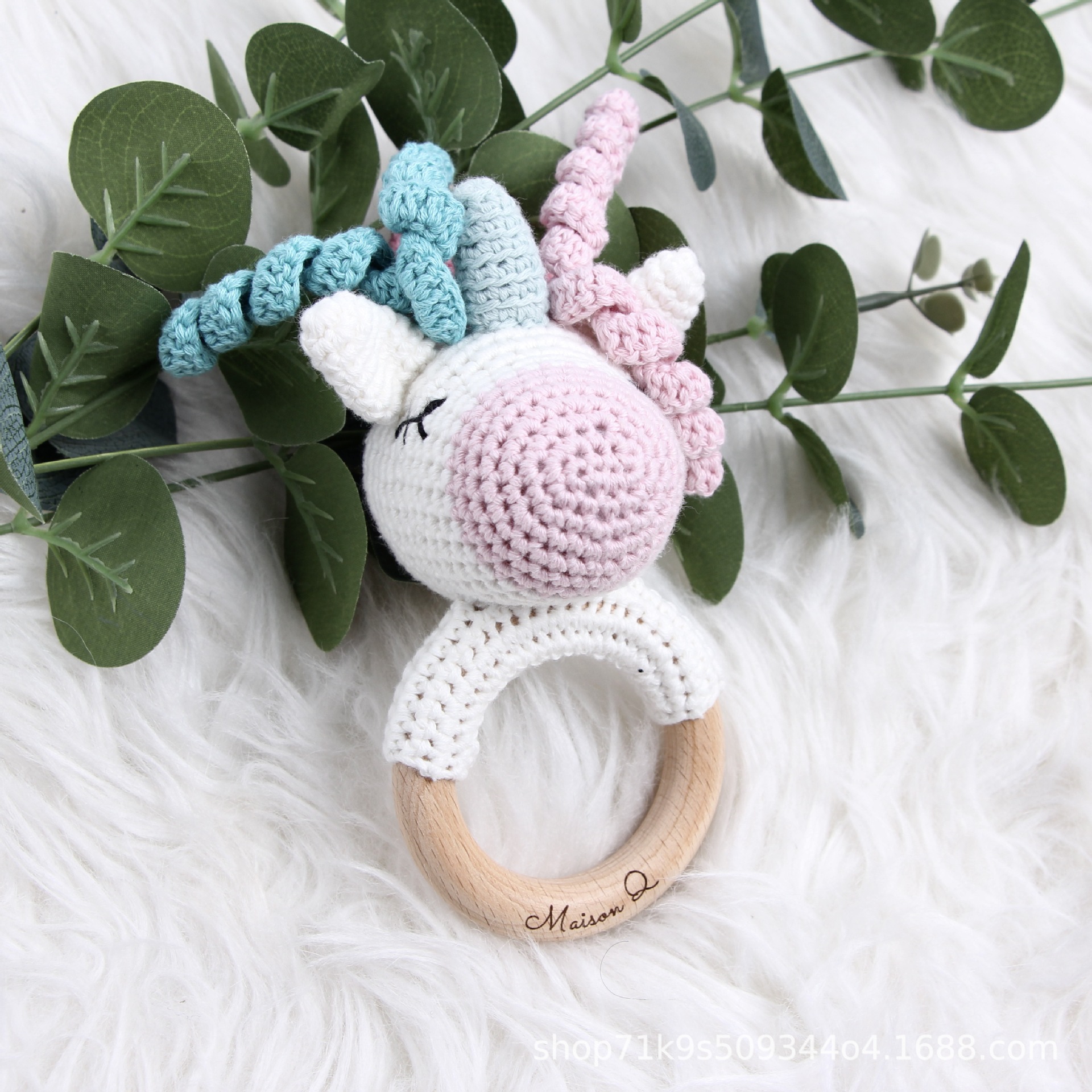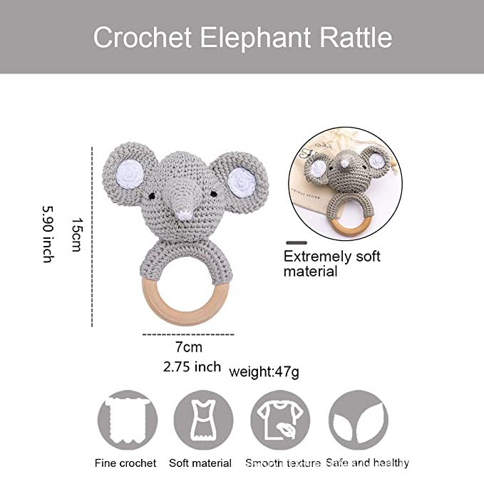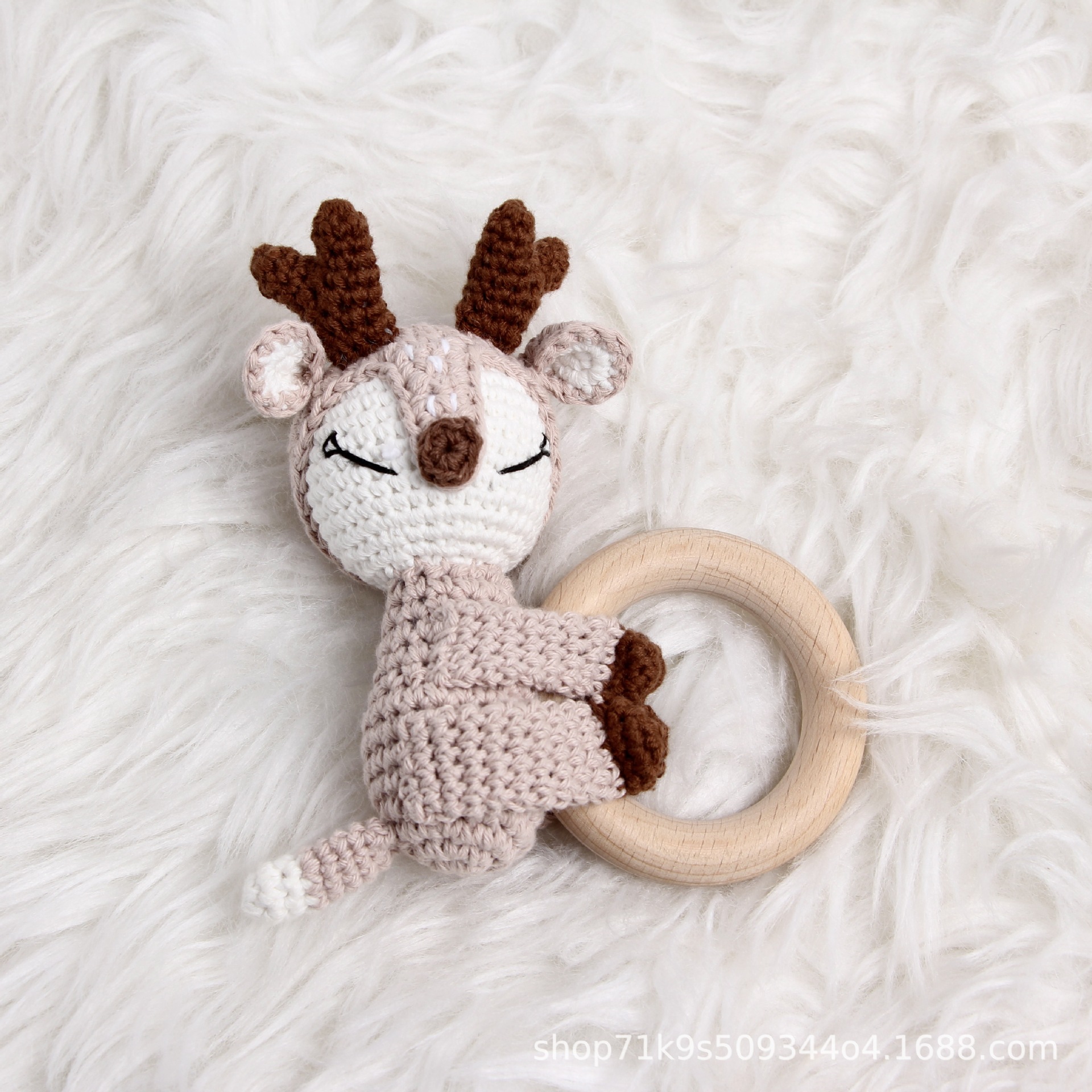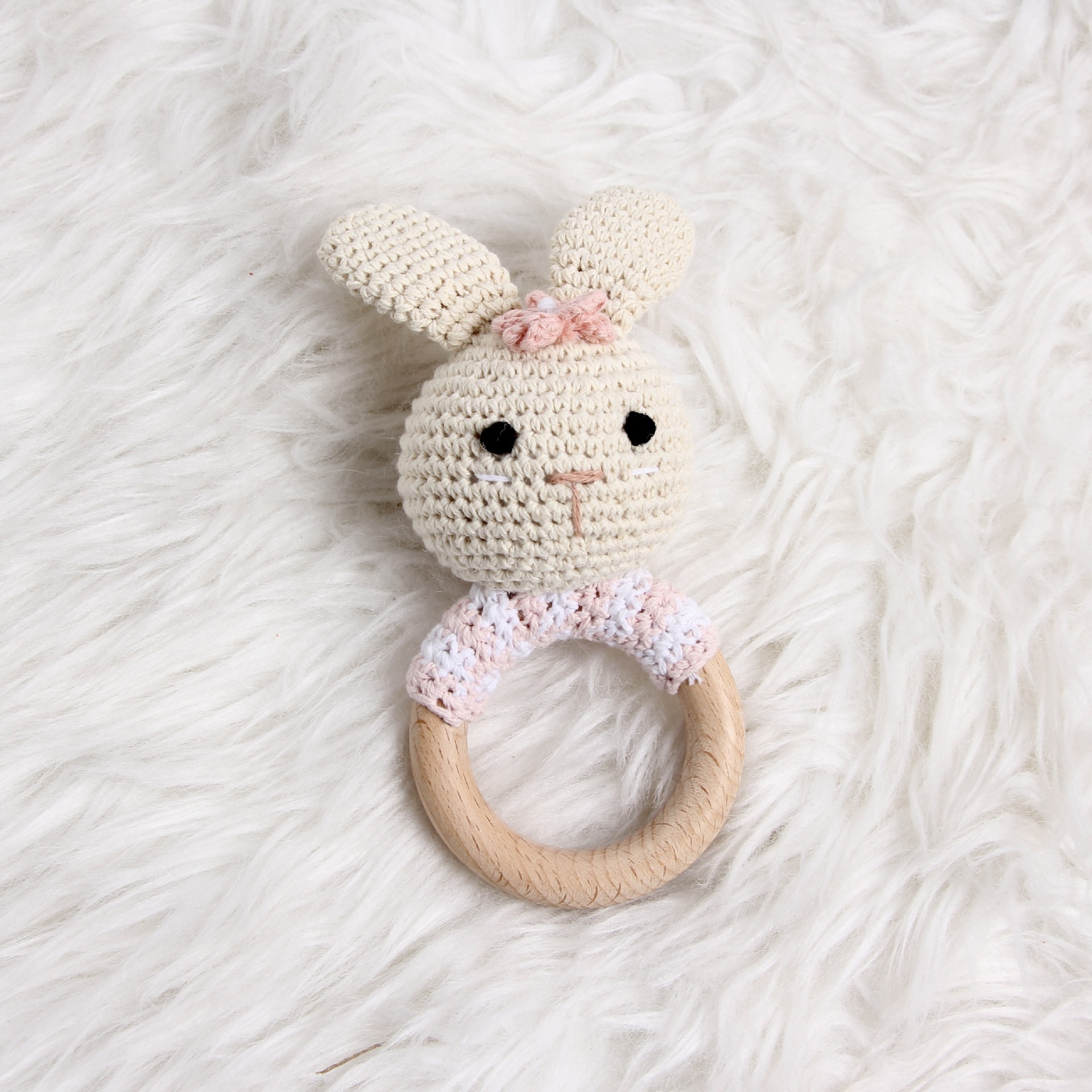 跨境爆款Crochet Rattle 手工钩针木质纯棉摇铃