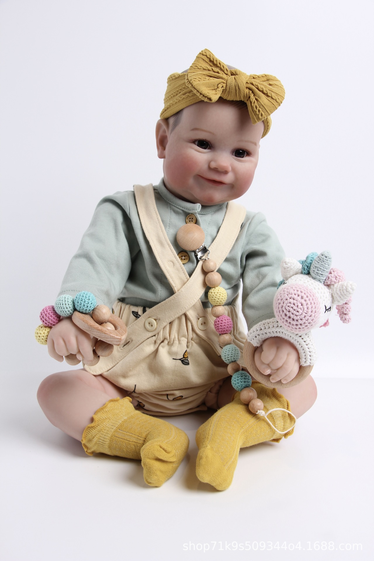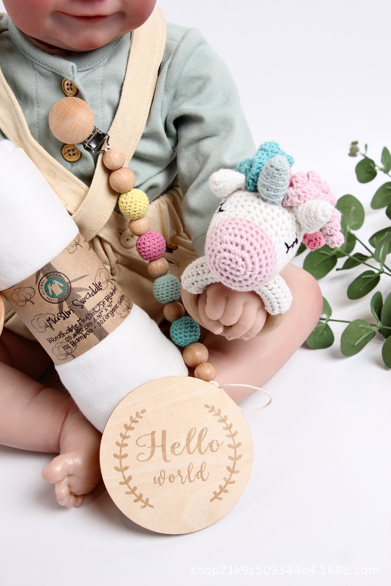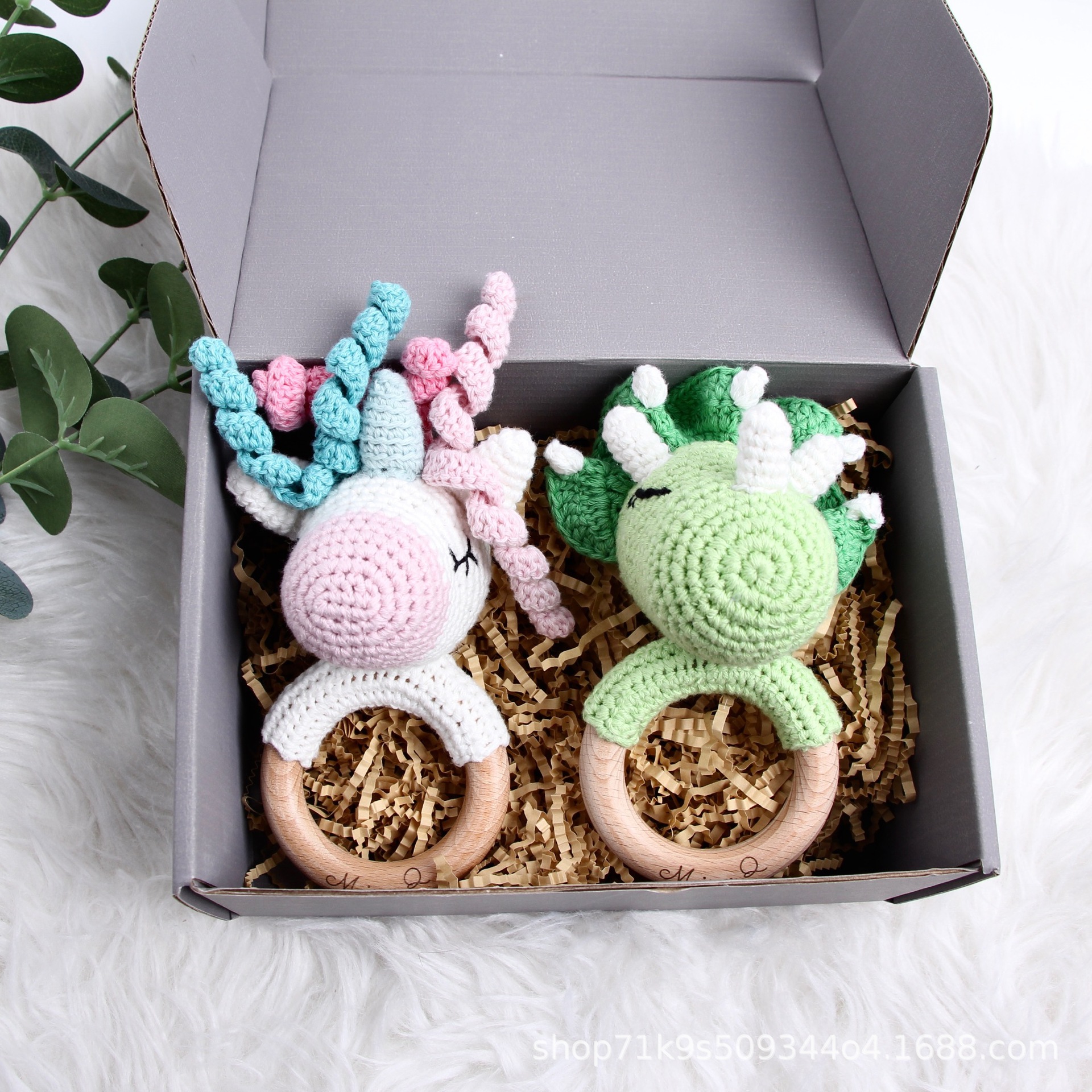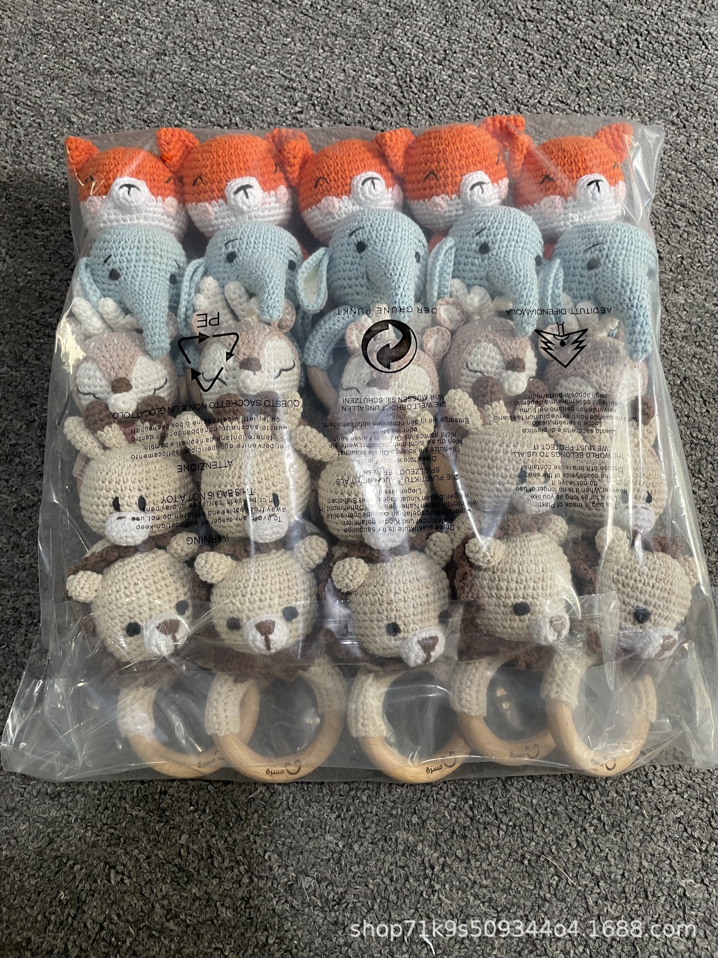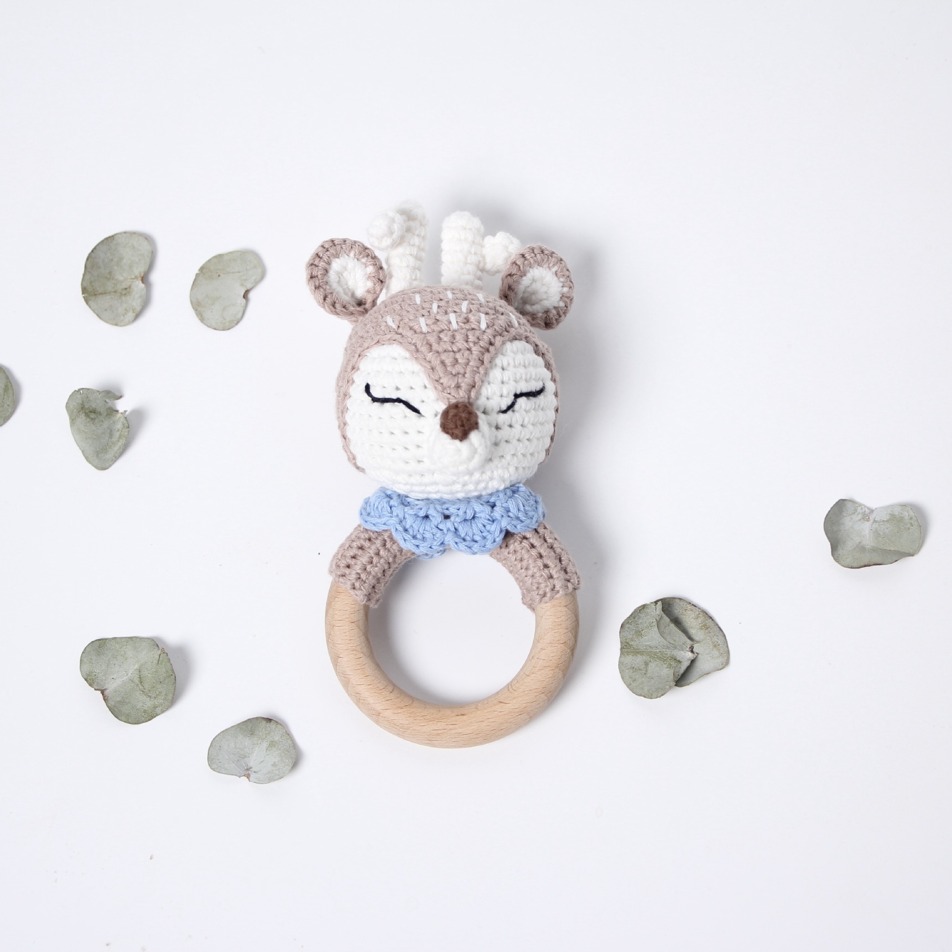 跨境爆款Crochet Rattle 手工钩针木质纯棉摇铃