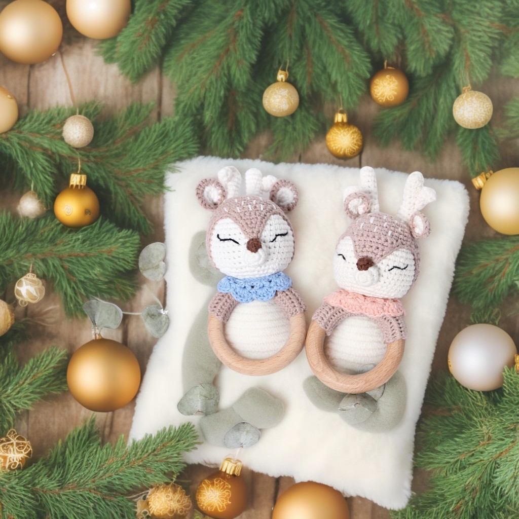 국경 간 폭발 아기 크리스마스 수제 치아 껌 물린 나무 크로 셰 뜨개질 유기농면 나무 반지 진정 딸랑이 선물