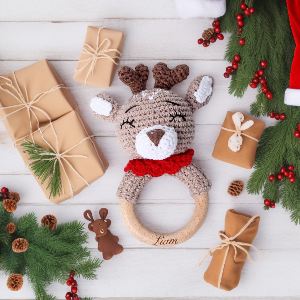 국경 간 폭발 아기 크리스마스 수제 치아 껌 물린 나무 크로 셰 뜨개질 유기농면 나무 반지 진정 딸랑이 선물스토어 가기