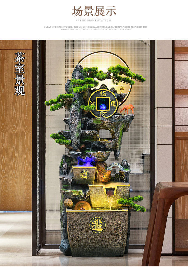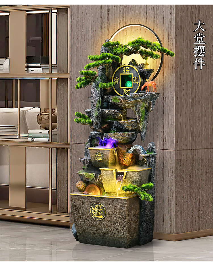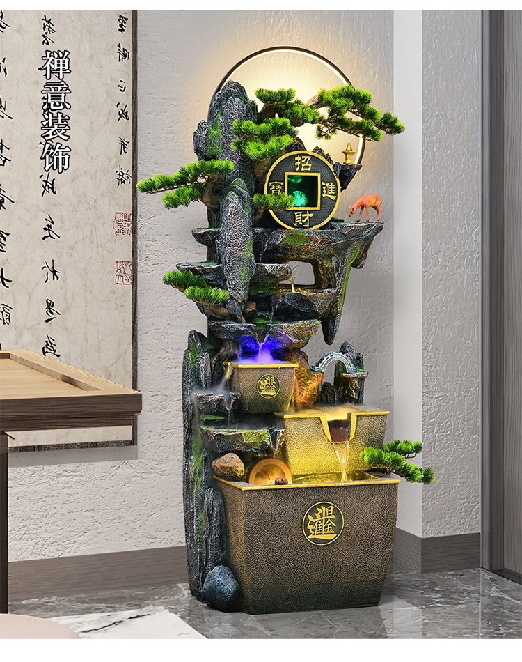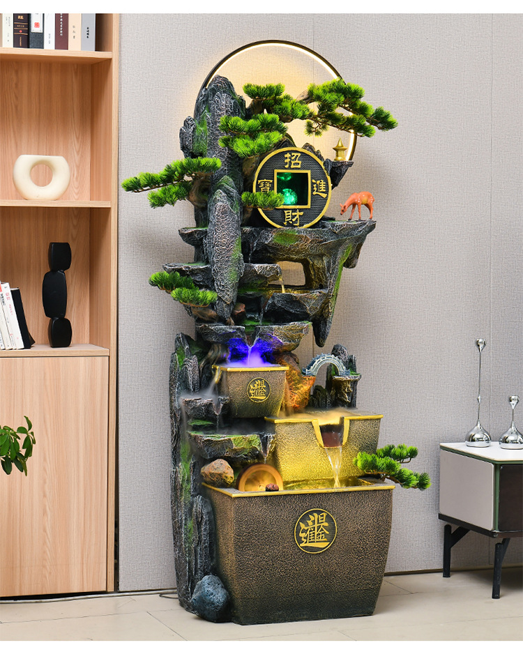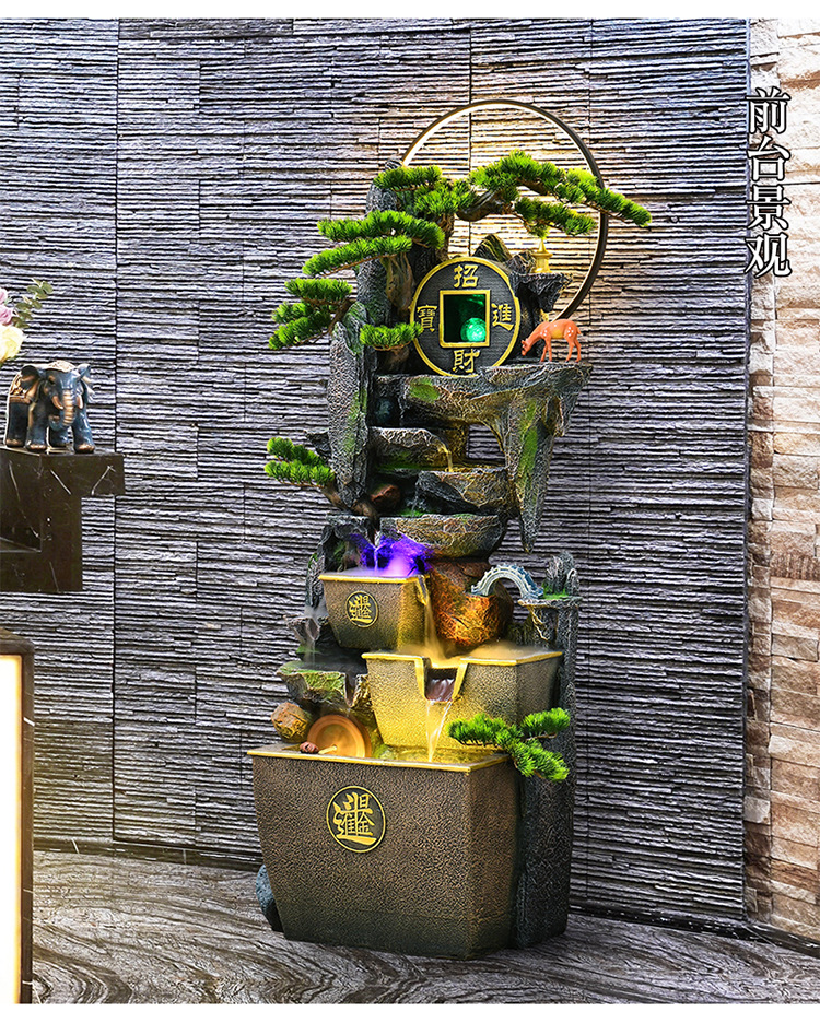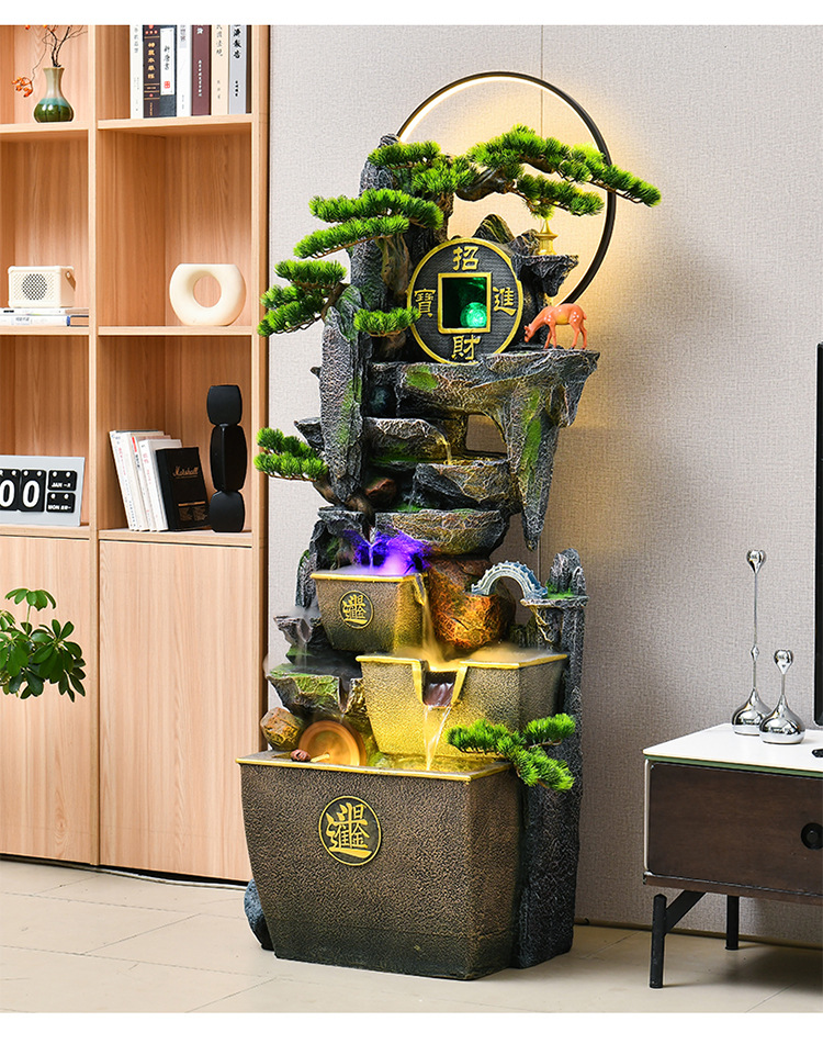 거실 높은 산과 흐르는 물 장식품 바닥부터 바닥까지 풍수 휠 운세 선물 장식 사무실 바위 분수 순환 물 풍경스토어 가기