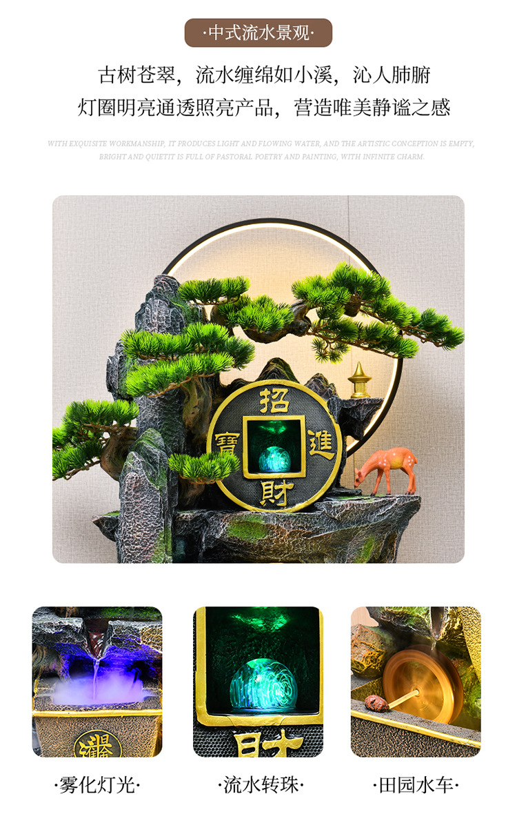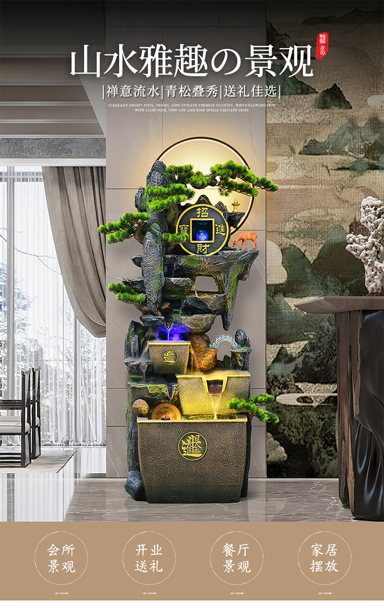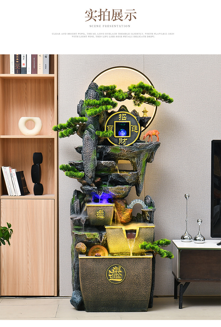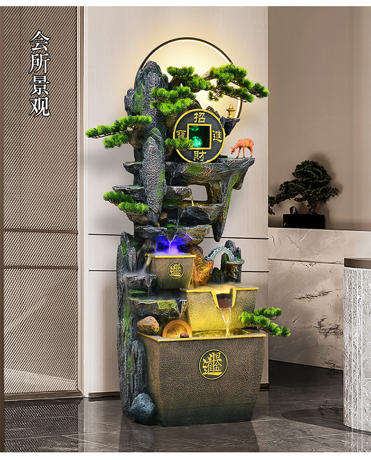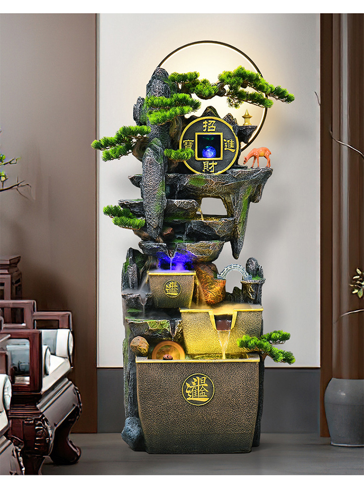 거실 높은 산과 흐르는 물 장식품 바닥부터 바닥까지 풍수 휠 운세 선물 장식 사무실 바위 분수 순환 물 풍경스토어 가기
