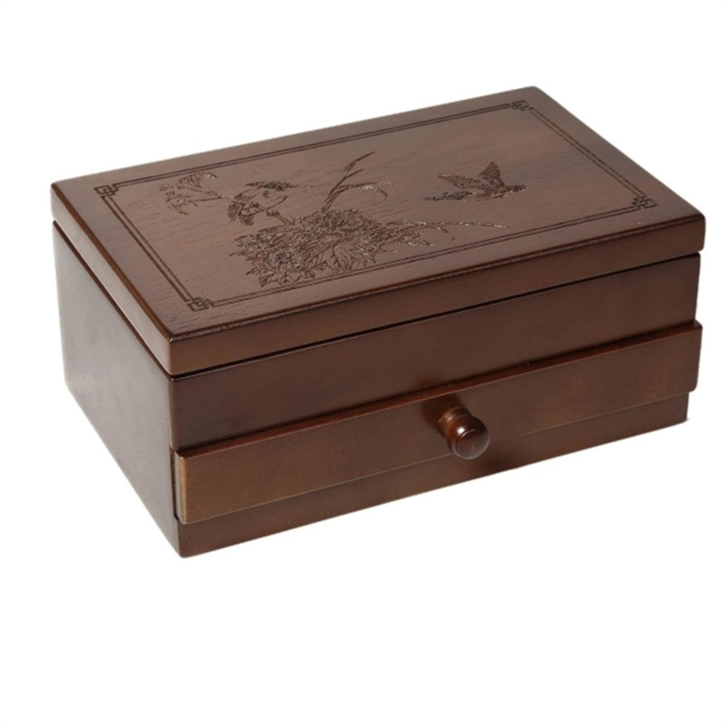 거울 드레싱 테이블이있는 나무 보석 상자 보석 상자 반지 귀걸이 보석 상자 메이크업 브러시 솔리드 우드 보관 상자