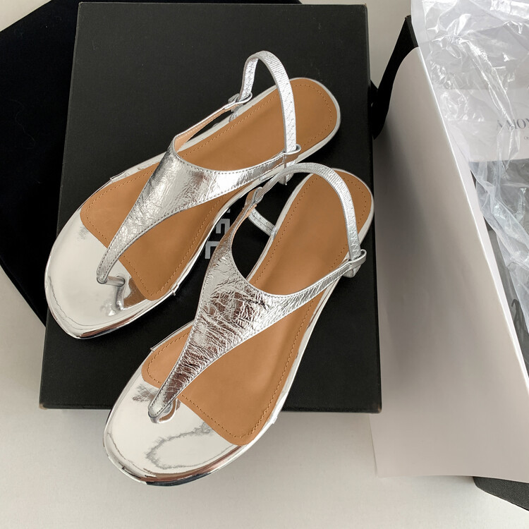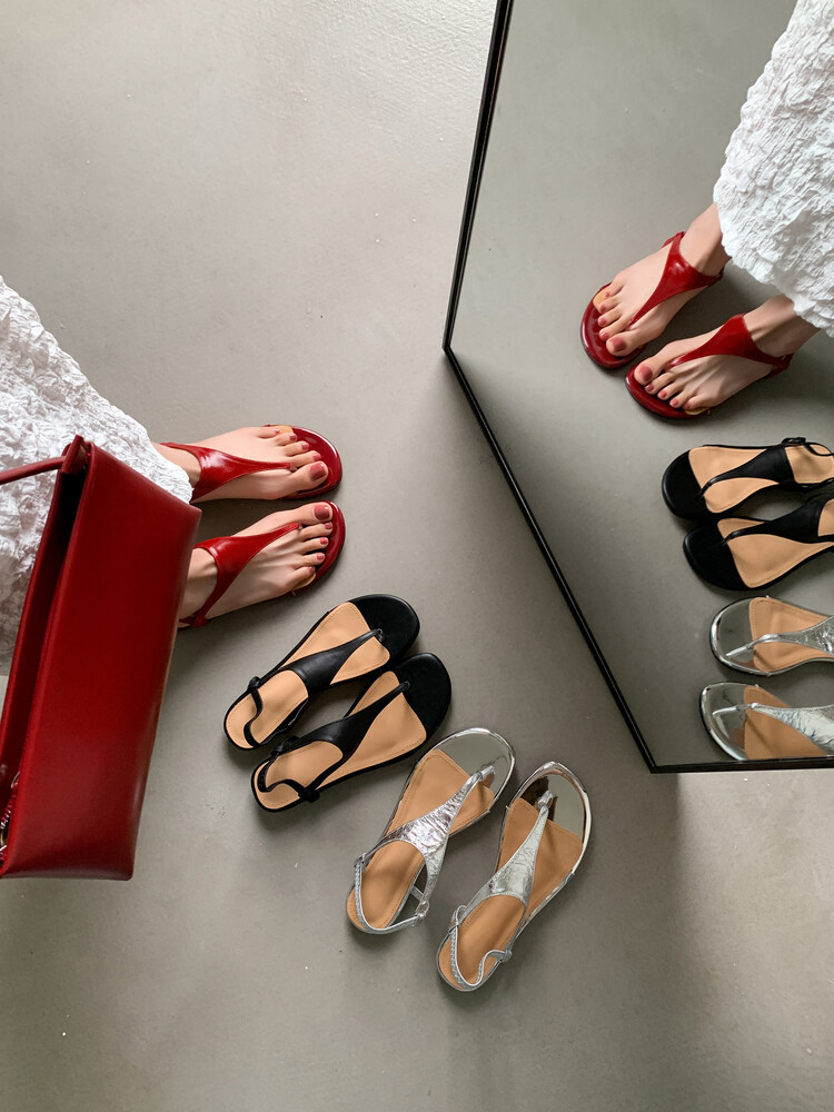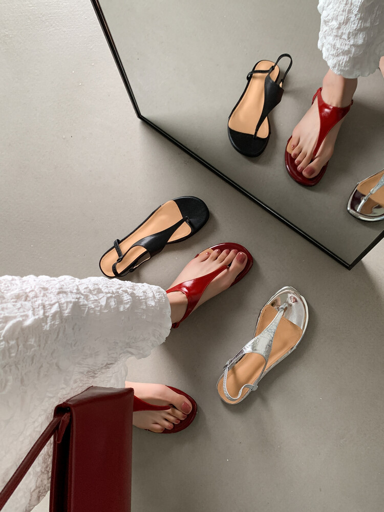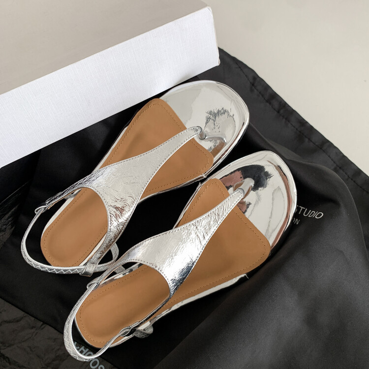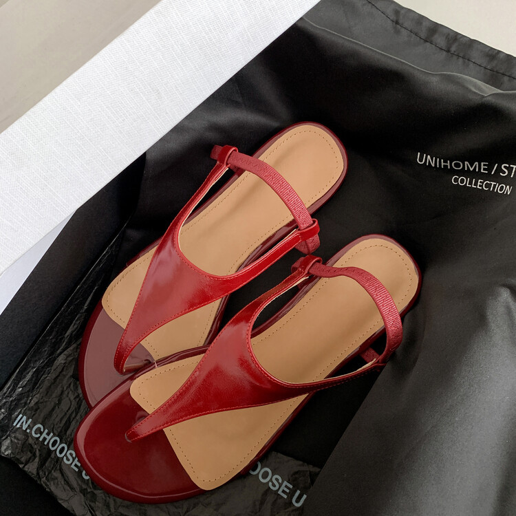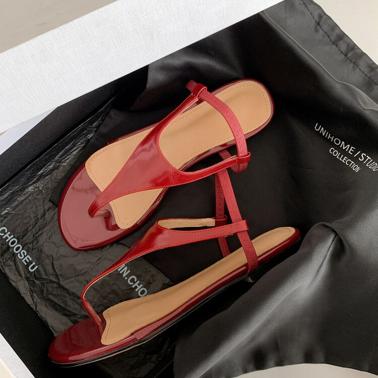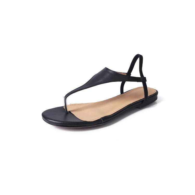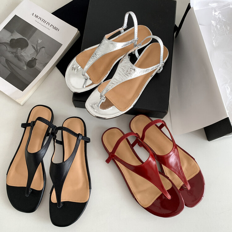 클립 발가락 샌들 여성 플랫 슈즈 여름 새로운 풀 가죽 라운드 발가락 T 패션 여성 샌들 도매스토어 가기
