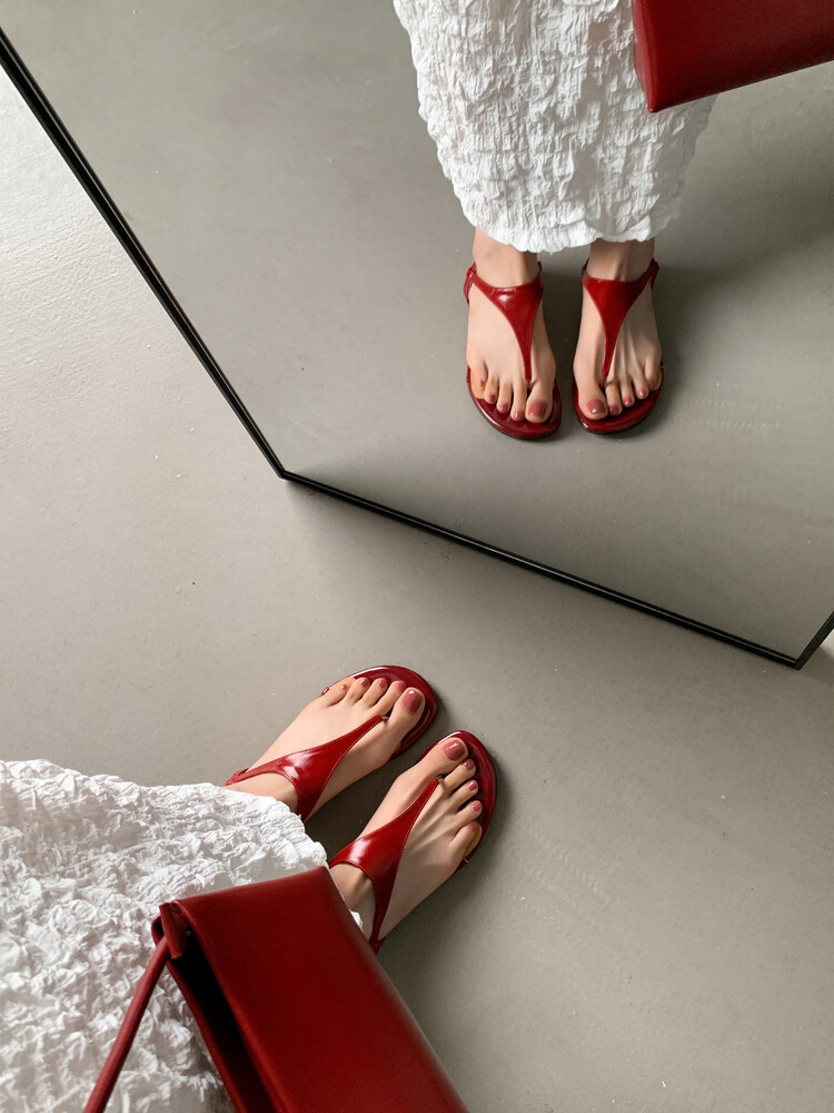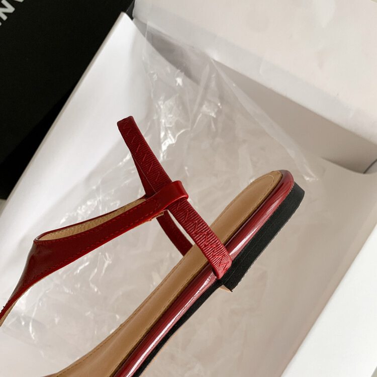 클립 발가락 샌들 여성 플랫 슈즈 여름 새로운 풀 가죽 라운드 발가락 T 패션 여성 샌들 도매
