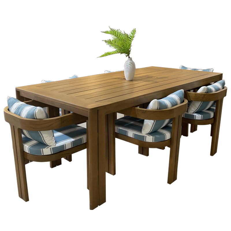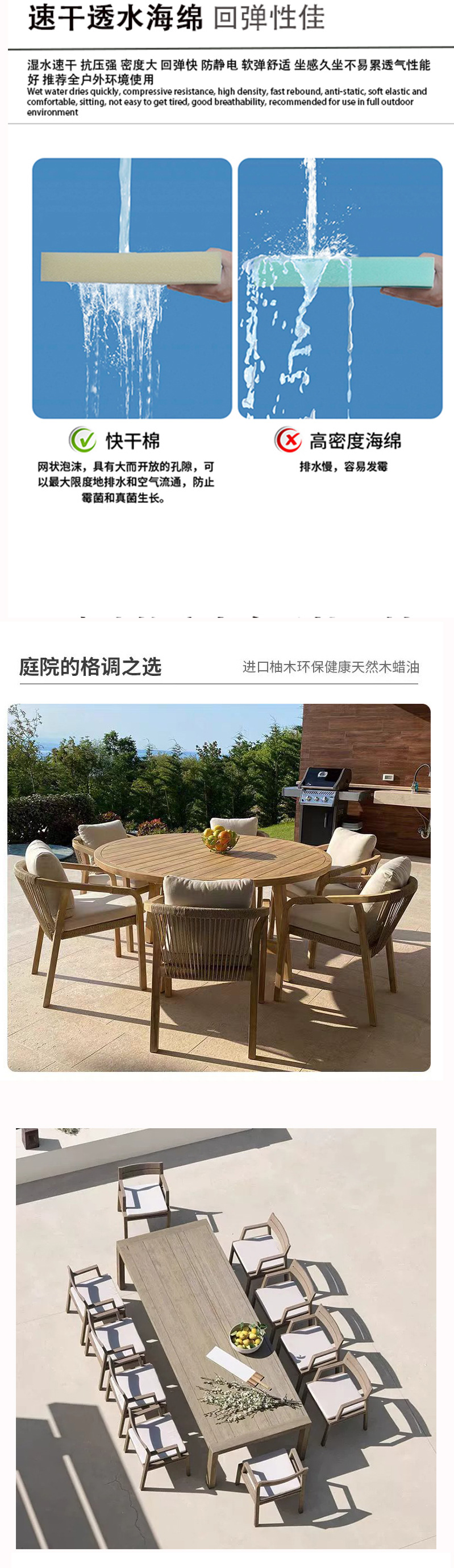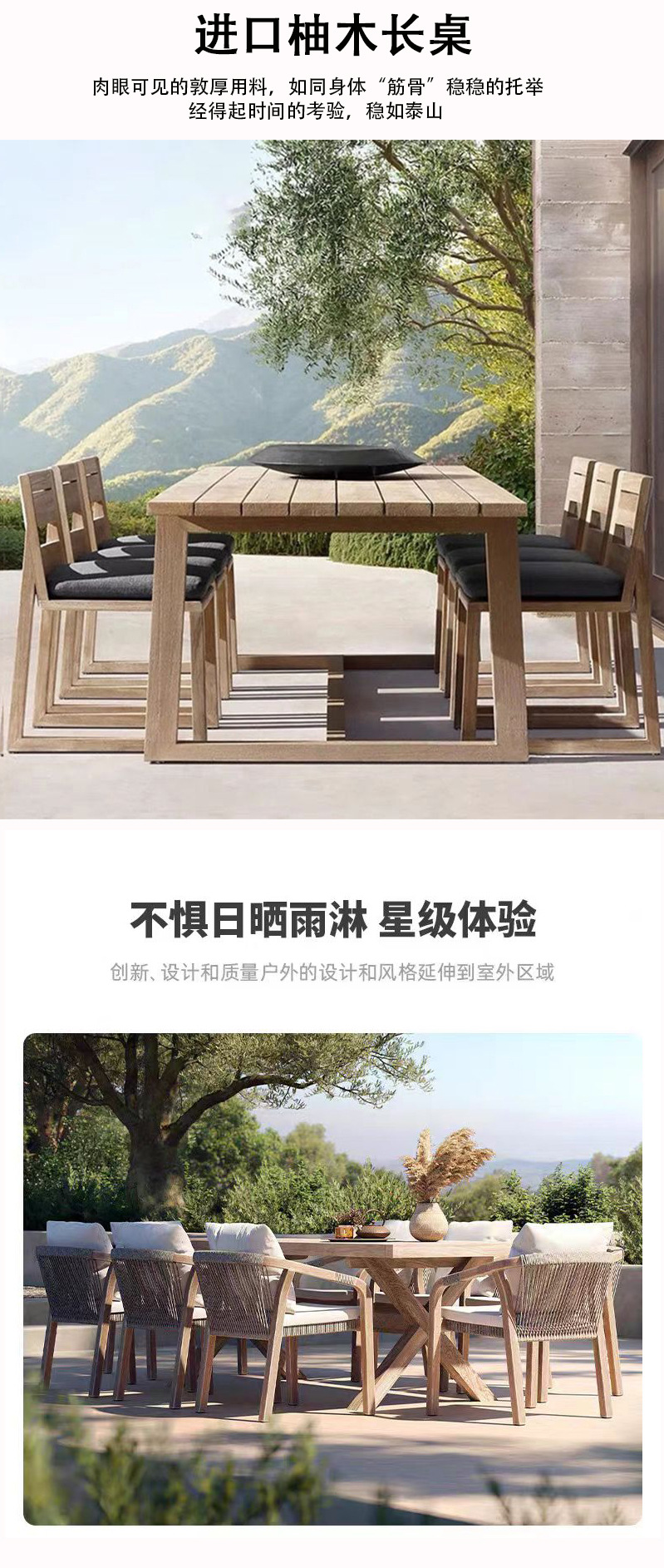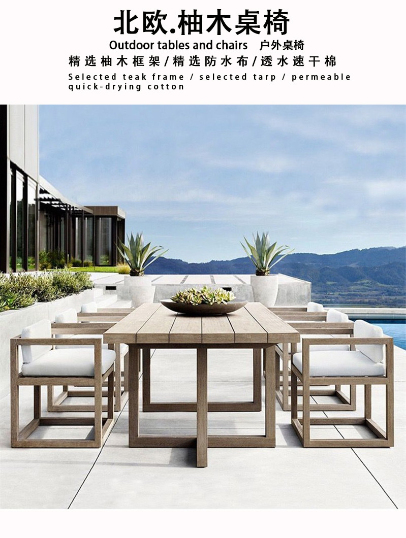 야외 테이블과 의자, 티크 목재 레스토랑, 야외 안뜰 리조트, 방수 및 자외선 차단, 여가용 연장형 야외 원목 식탁과 의자스토어 가기