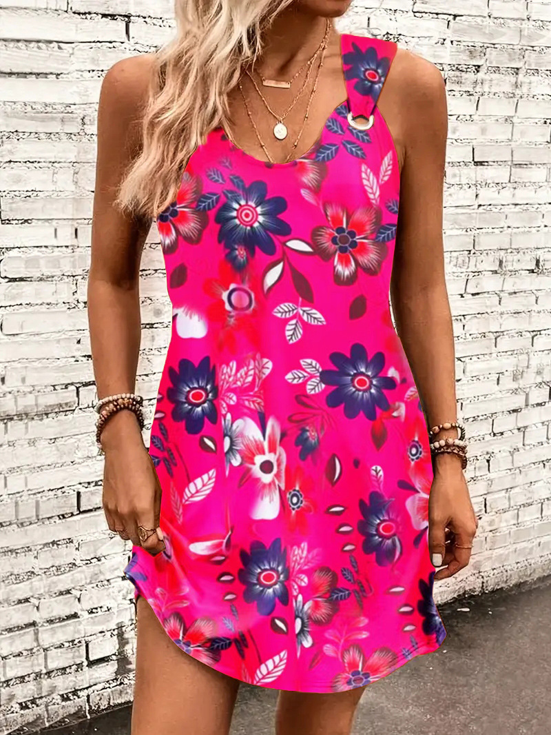 2024 국경을 넘는 유럽과 미국의 원피스 민소매 여름 여성 패션 섹시한 심플 컬러 메탈 버클 V 넥 민소매