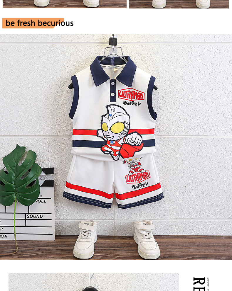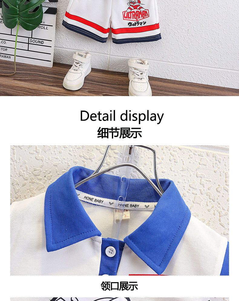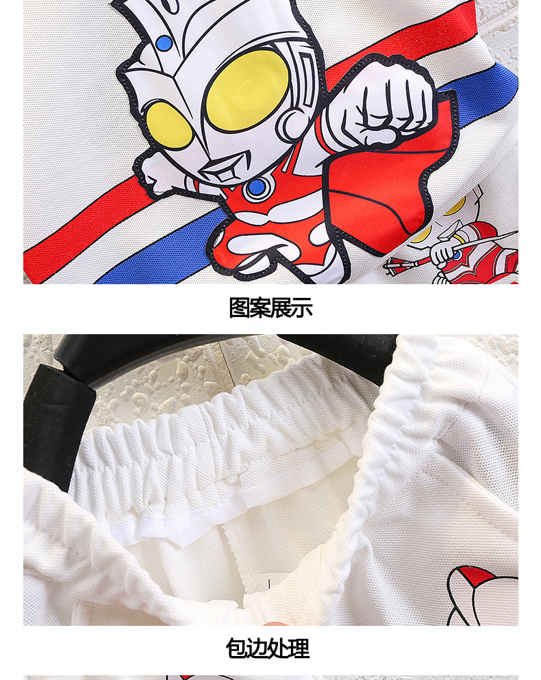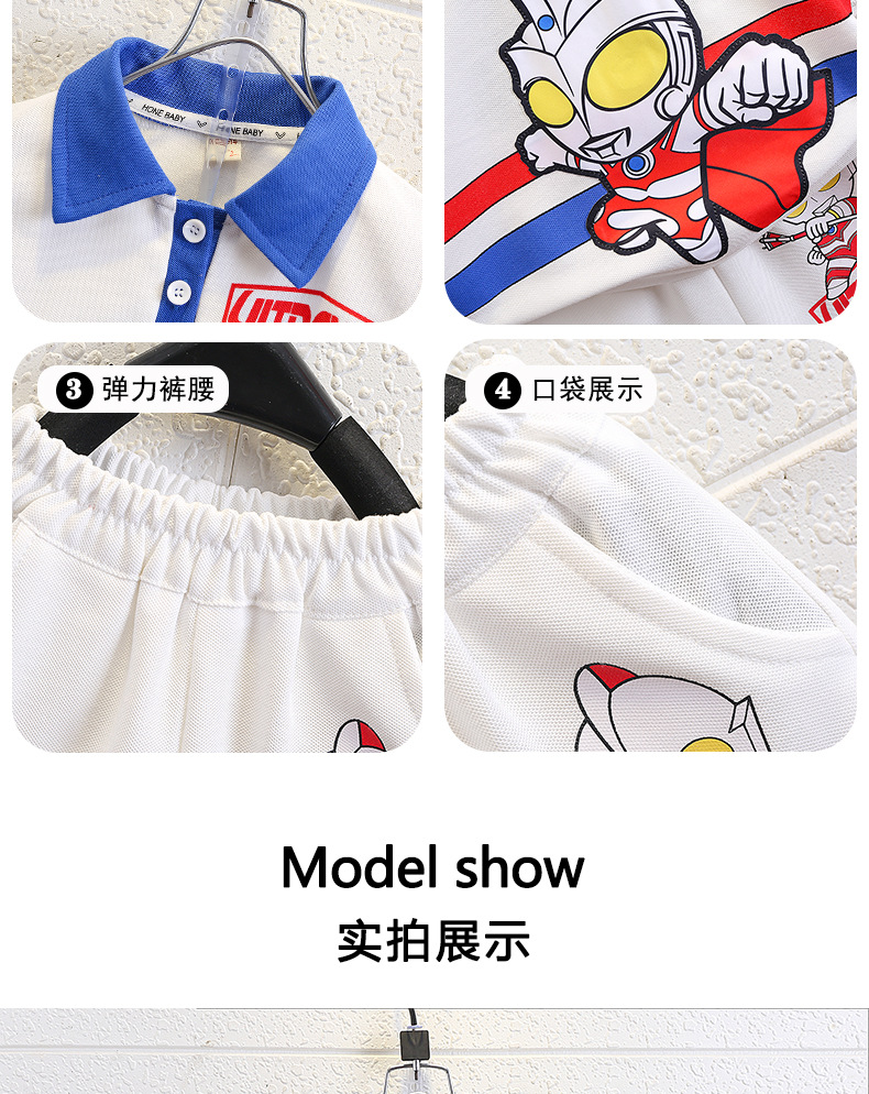 울트라 맨 조명 옷 소년 여름 옷 세트 2024 새로운 어린이 만화 잘 생긴 두 조각 남자의 보물스토어 가기