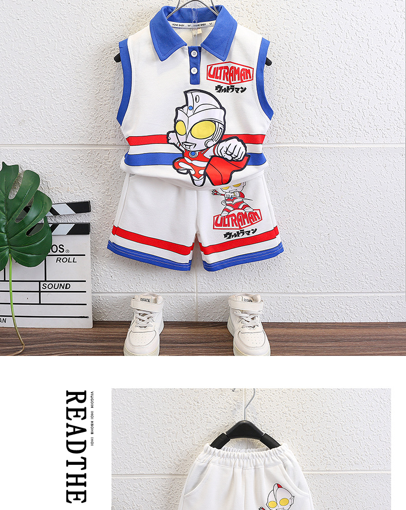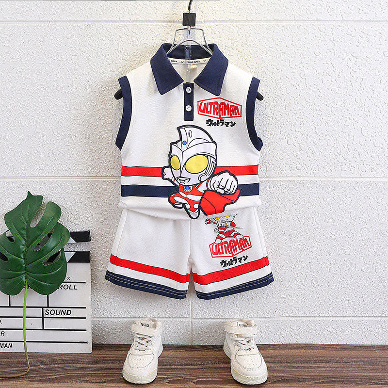 울트라맨 라이트업 의상 남아 여름옷 세트 2025 신상 어린이 만화 멋진 투피스 세트 남자아이용