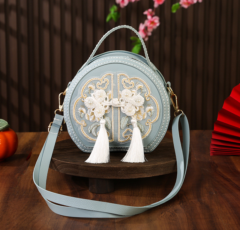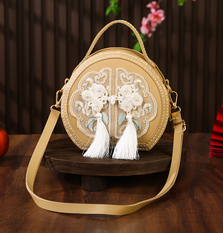 Guofeng 수제 DIY 자수 가방 새로운 중국 스타일 조커 작은 라운드 가방 소재 가방 크로스 바디 가방 여성용 싱글 숄더 핸드백