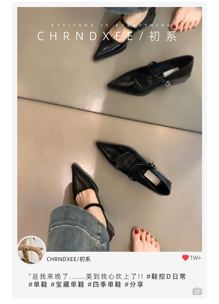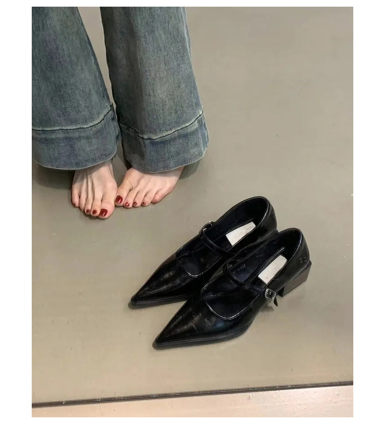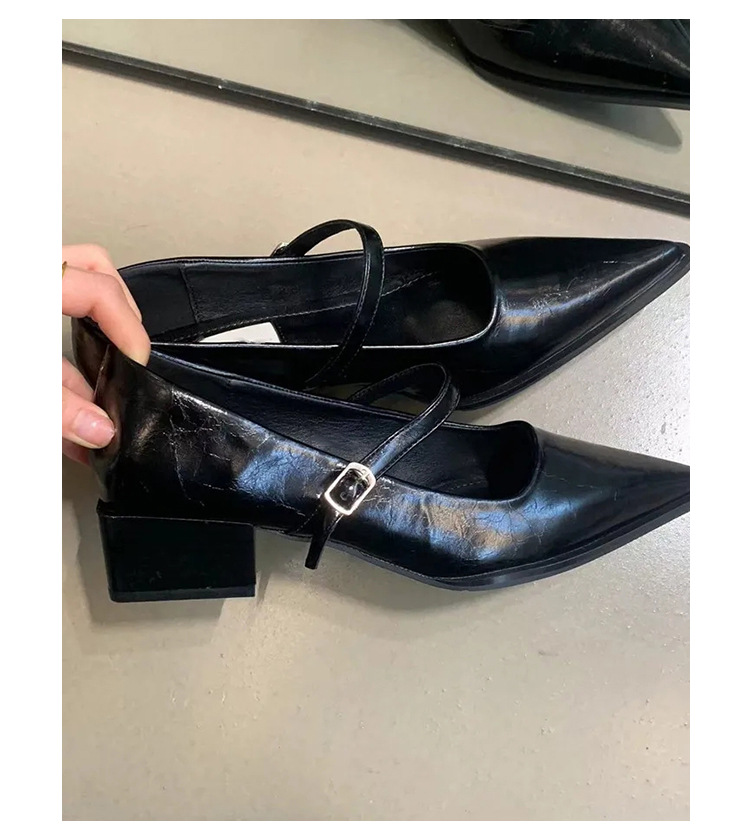 양가죽 버전~뾰족한 발가락 메리제인 여성화, 레트로한 원라인 블랙 두꺼운 굽, 발이 피곤하지 않은 프렌치 스타일 하이힐스토어 가기