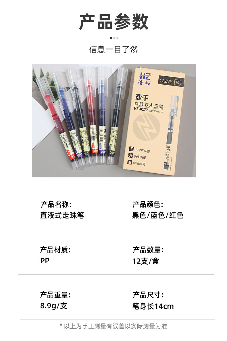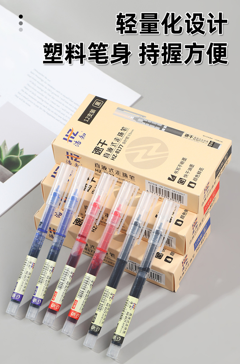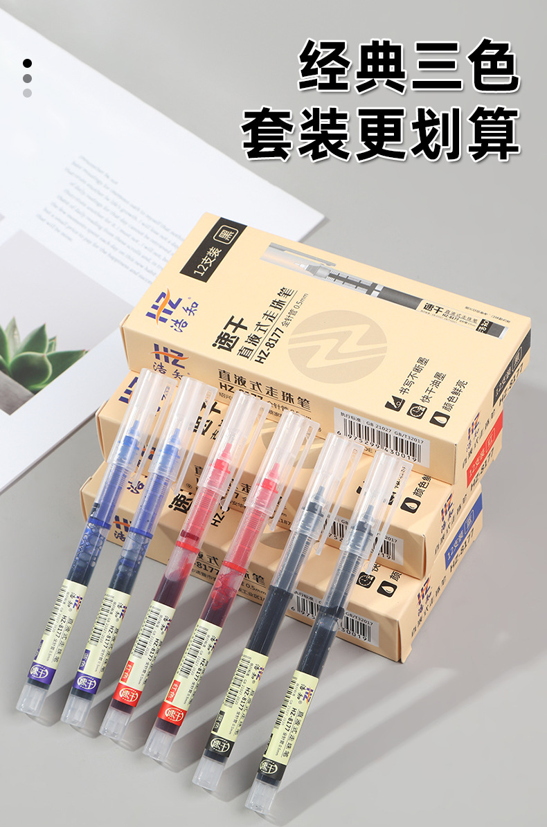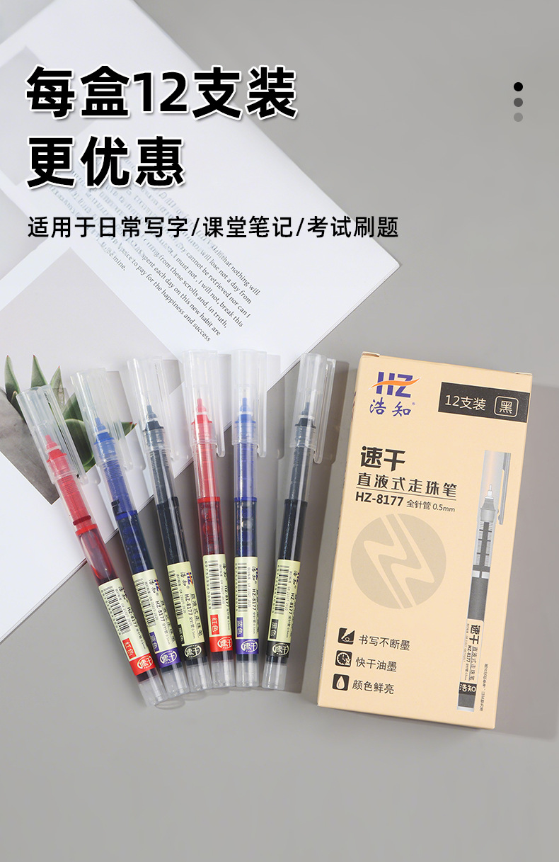 Haozhi 사무실 도매 학생 빠른 건조 0.5mm 바늘 시그니처 펜 물 펜 스트레이트 액체 볼펜 젤 펜