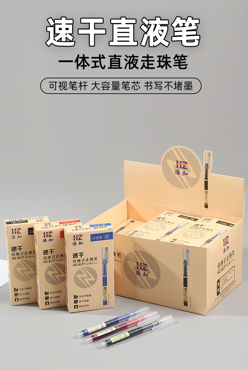 Haozhi 사무실 도매 학생 빠른 건조 0.5mm 바늘 시그니처 펜 물 펜 스트레이트 액체 볼펜 젤 펜스토어 가기