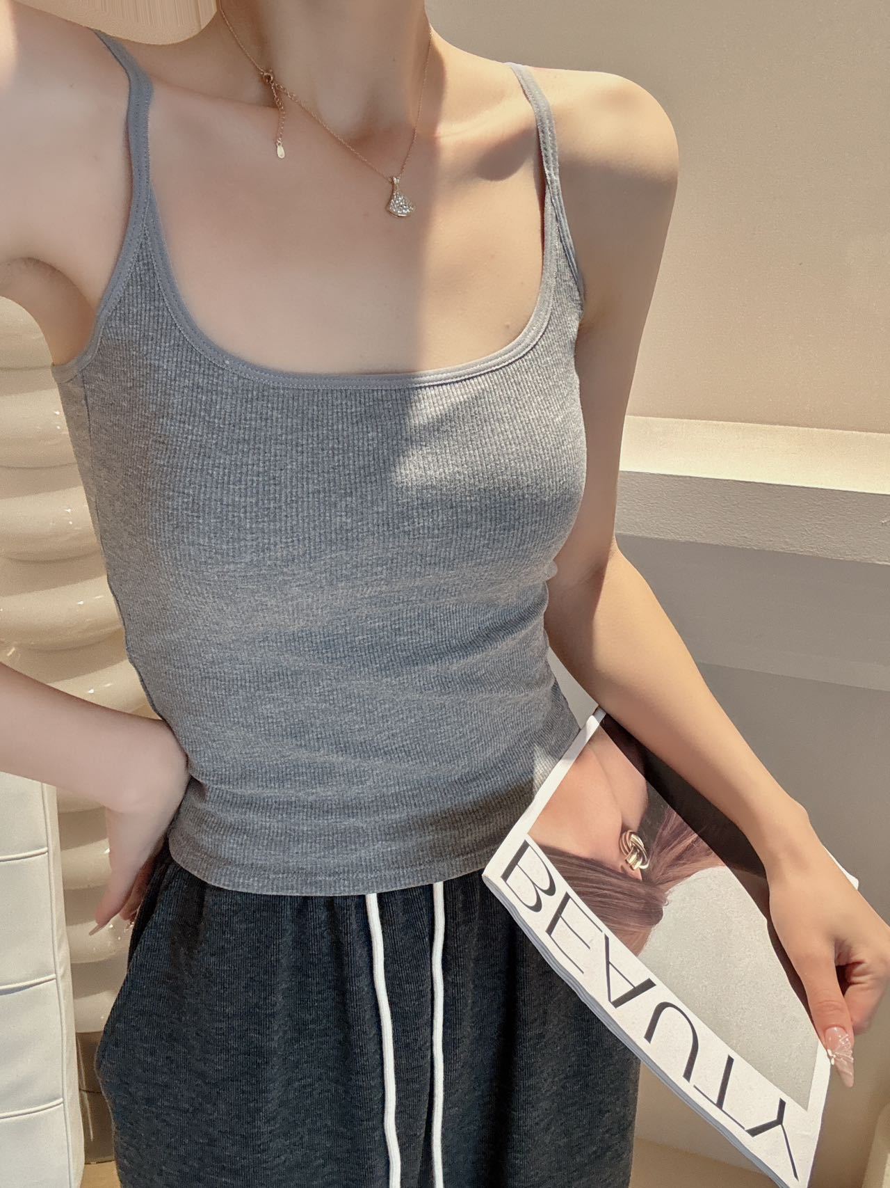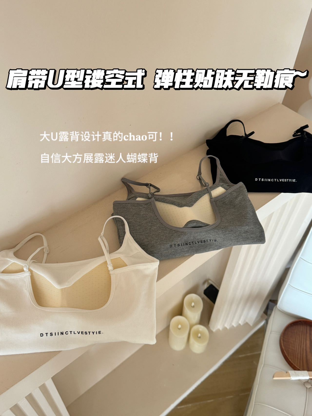 라이브 폭발 스레드 U 자형 문자 캐미솔 여성 자체 포함 라텍스 패드 내부 및 외부 착용 아름다운 백베이스 코트