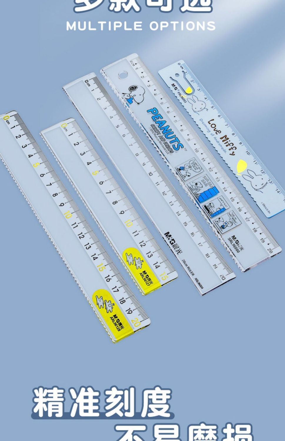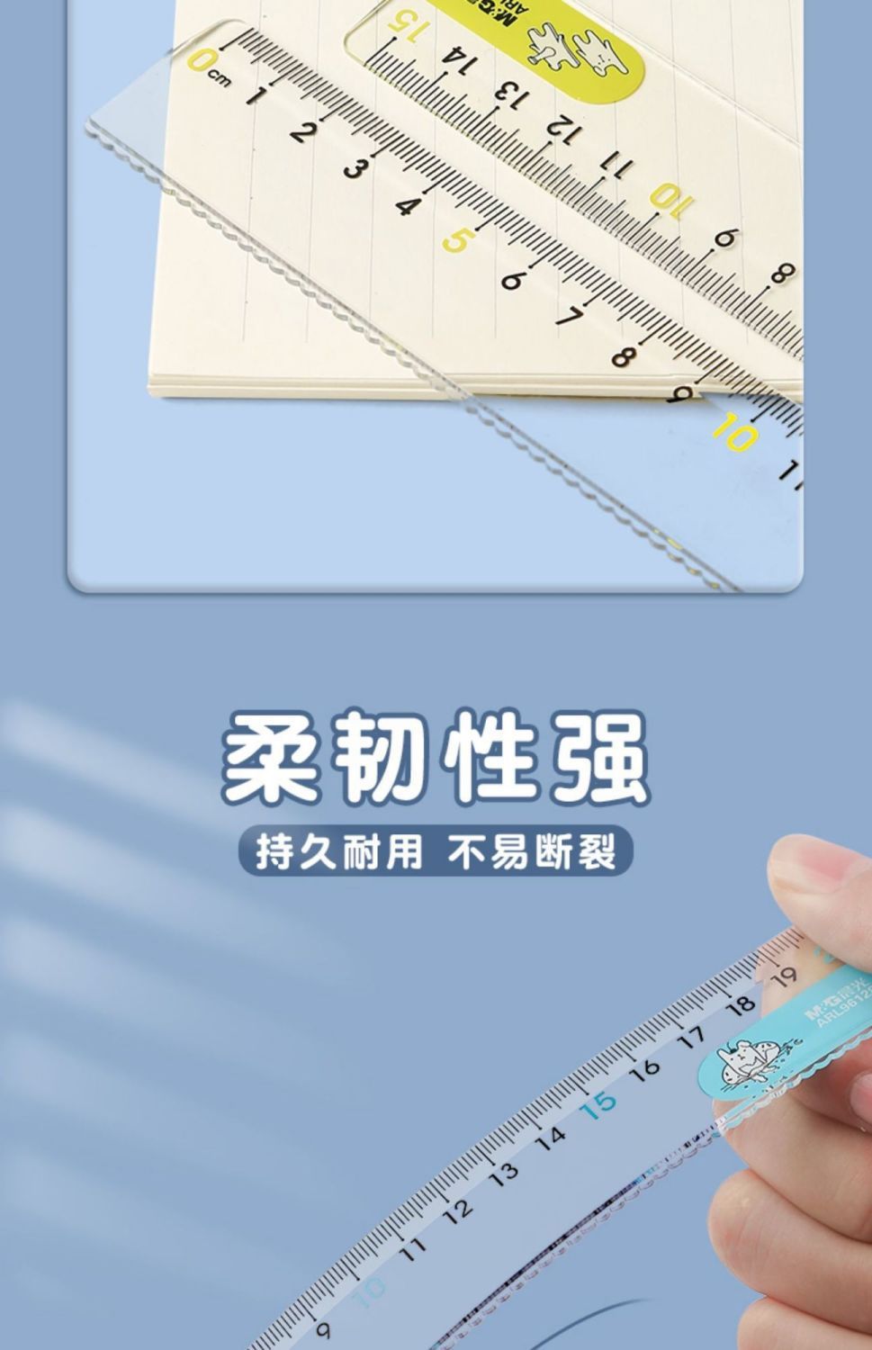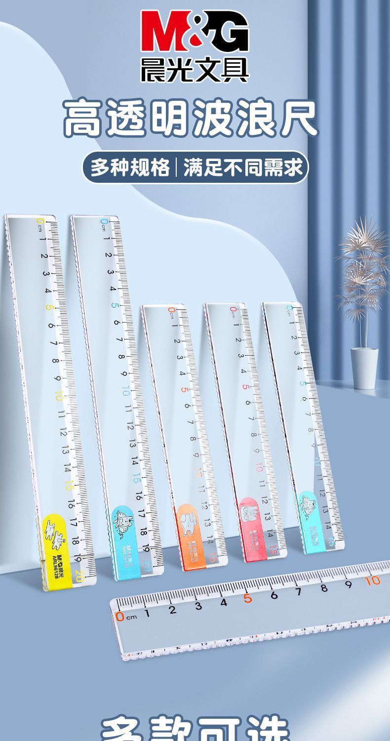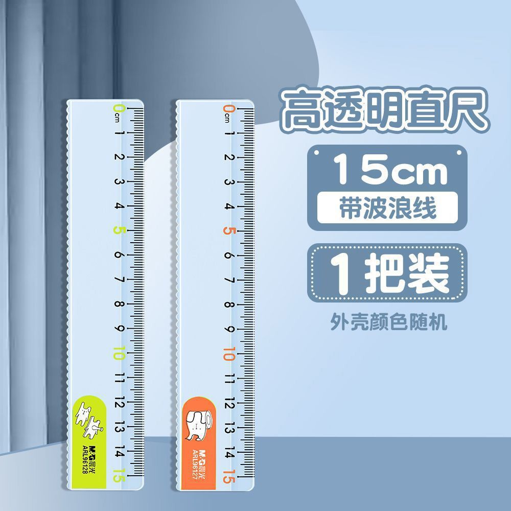 학생들이 직선을 그릴 수 있도록 물결 모양의 선 통치자 15/20cm 투명 플라스틱 통치자를 가진 아침 빛 처진 토끼스토어 가기