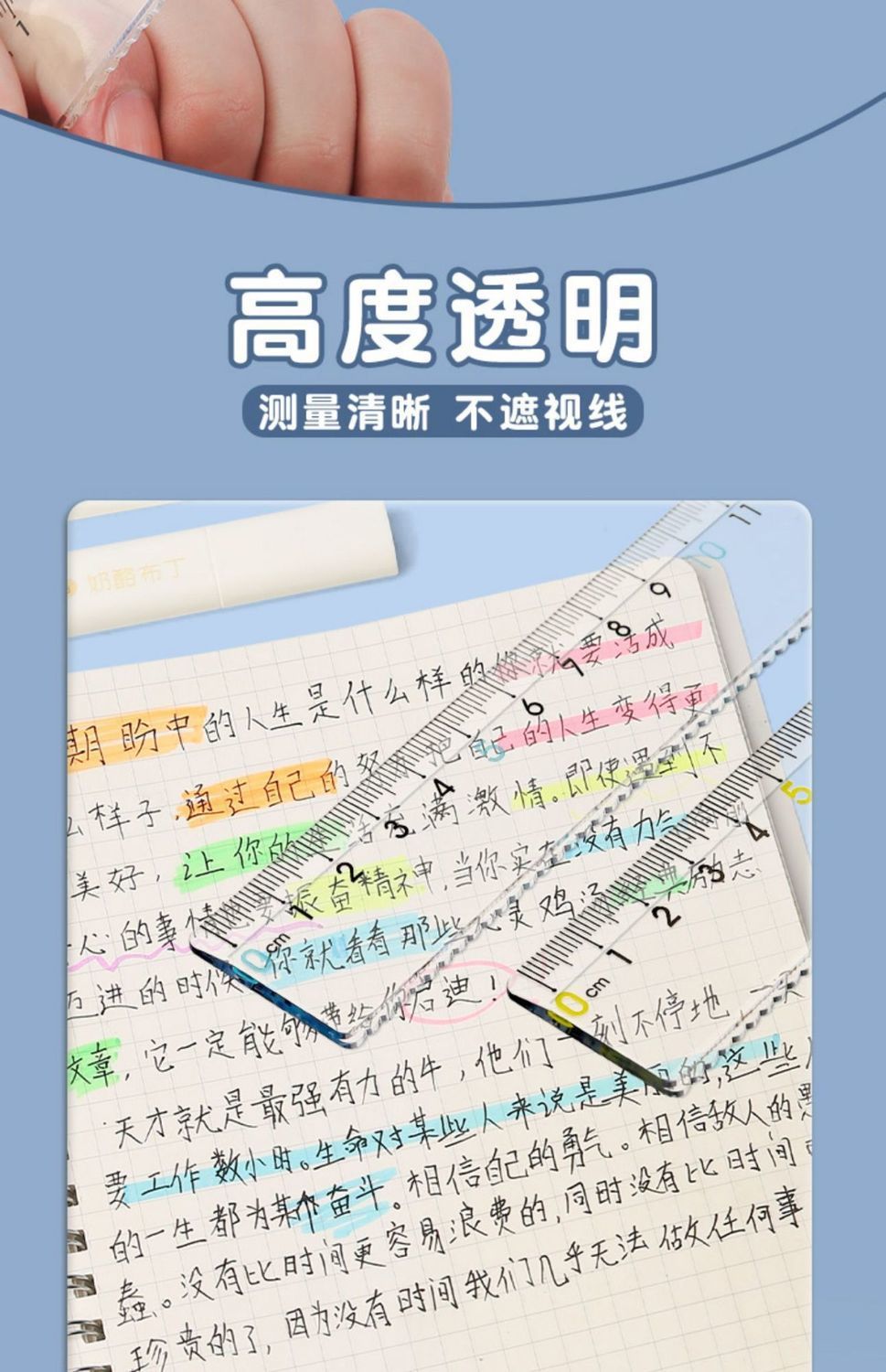 학생들이 직선을 그릴 수 있도록 물결 모양의 선 통치자 15/20cm 투명 플라스틱 통치자를 가진 아침 빛 처진 토끼