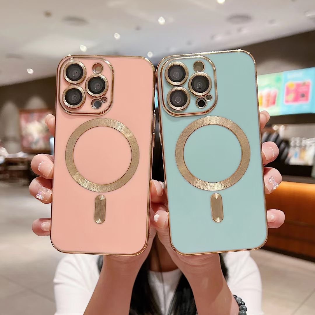 아이폰17프로맥스용 단색 전기도금 자석 휴대폰 케이스, 애플16용 유리 렌즈 필름 보호 케이스스토어 가기