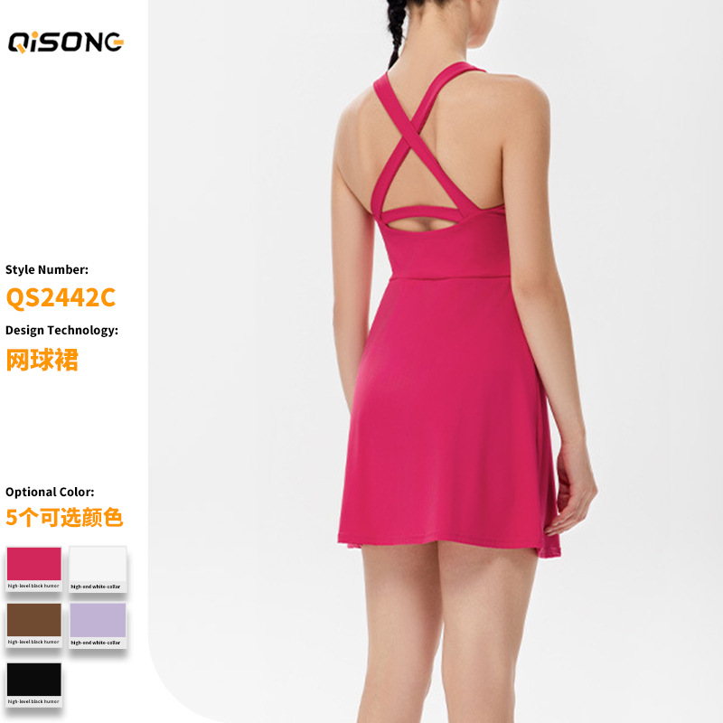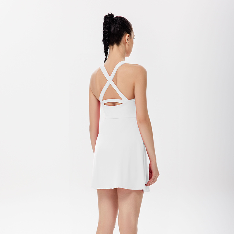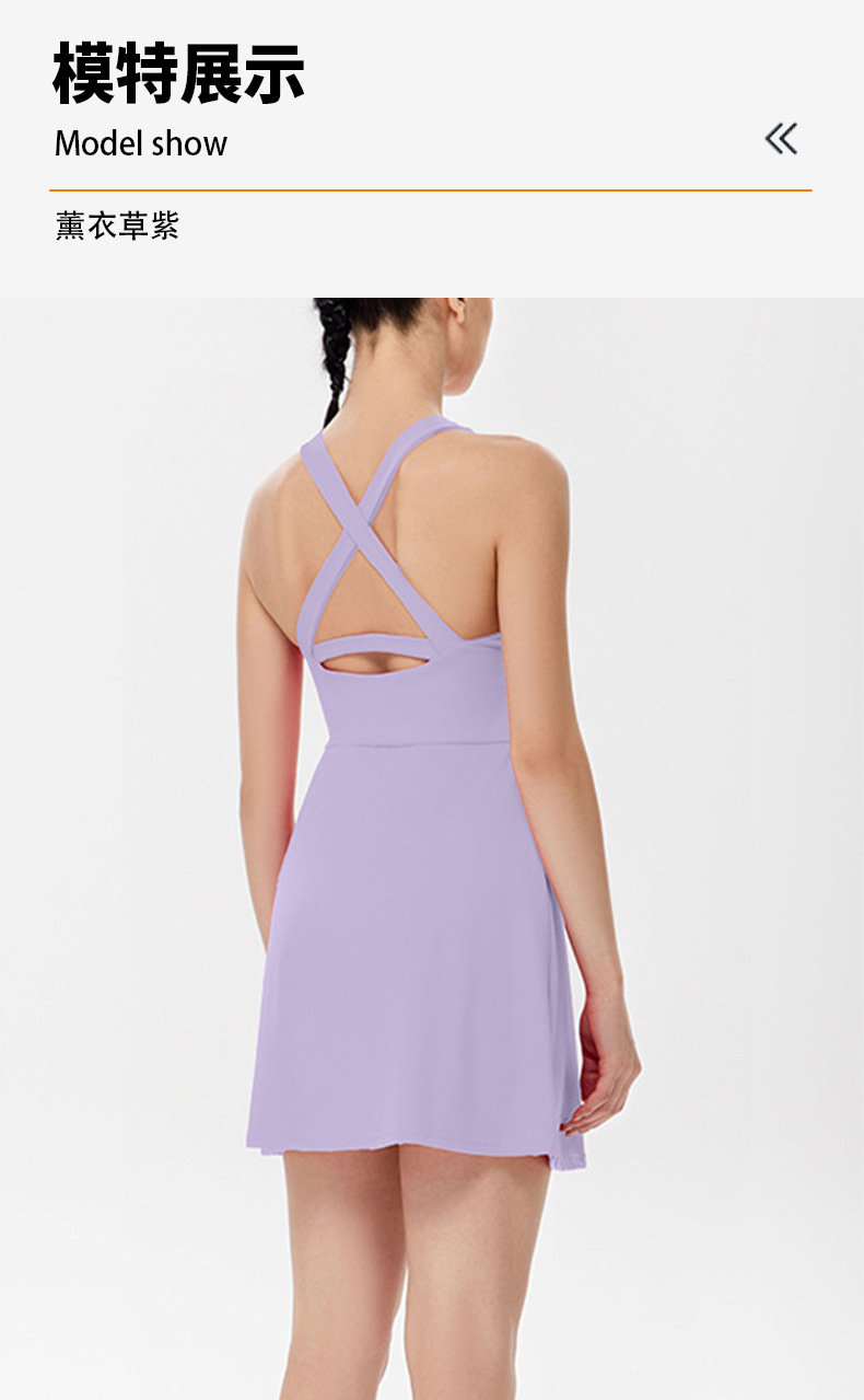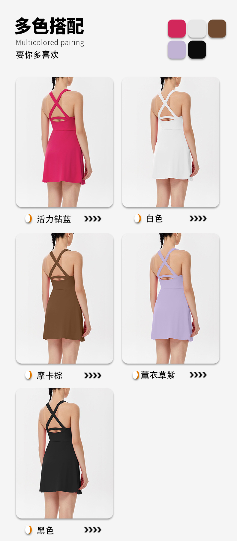 2025LULU 네이키드 넥 테니스 스커트 탈착식 가슴 패드 노출 방지 원피스 테니스 스포츠 야외 요가복