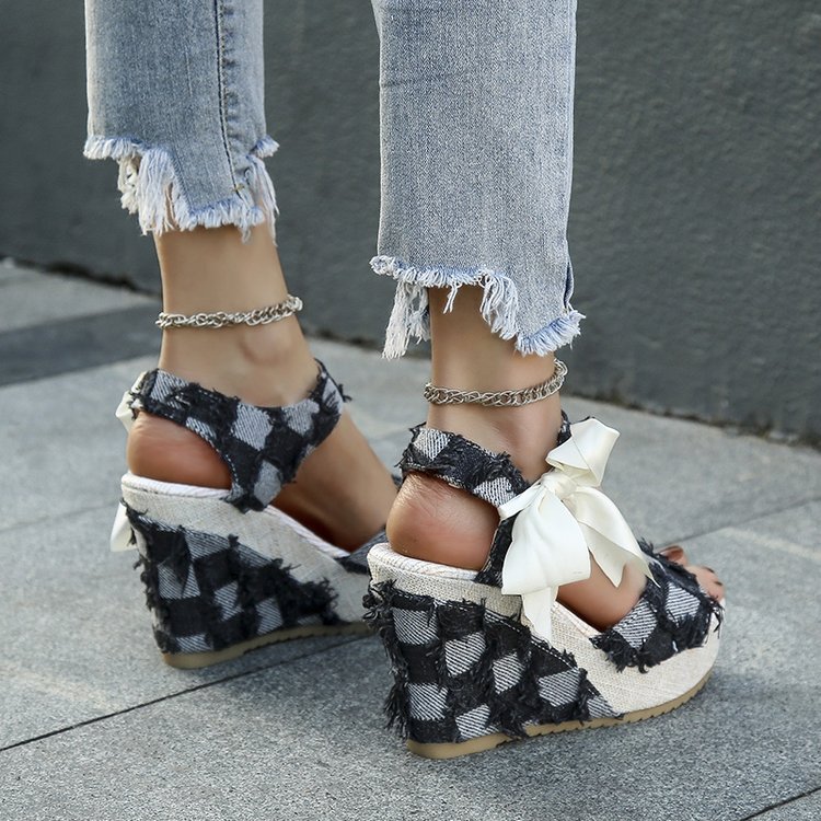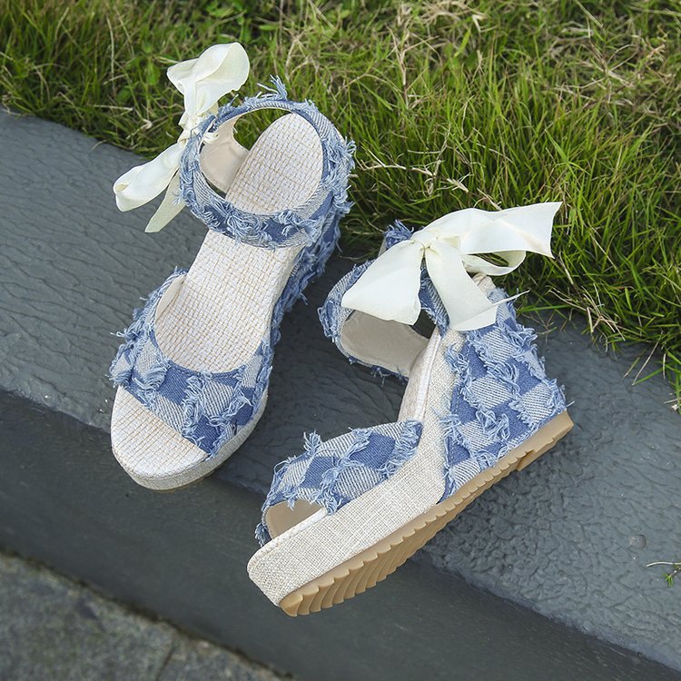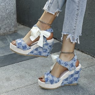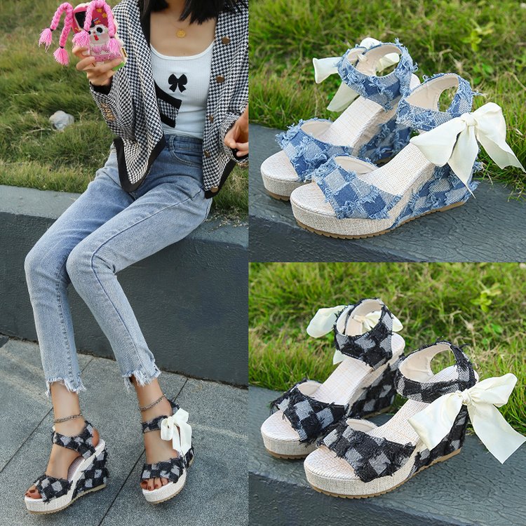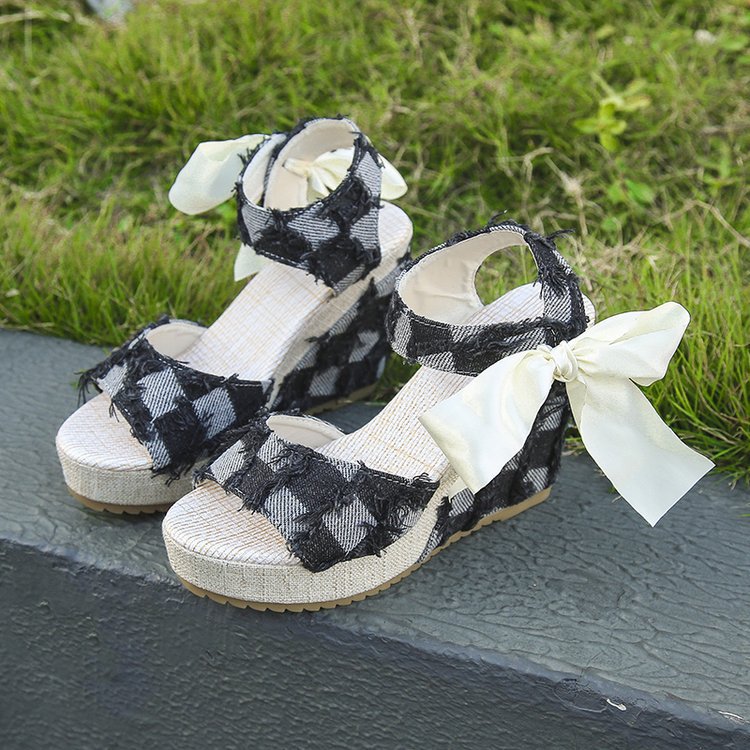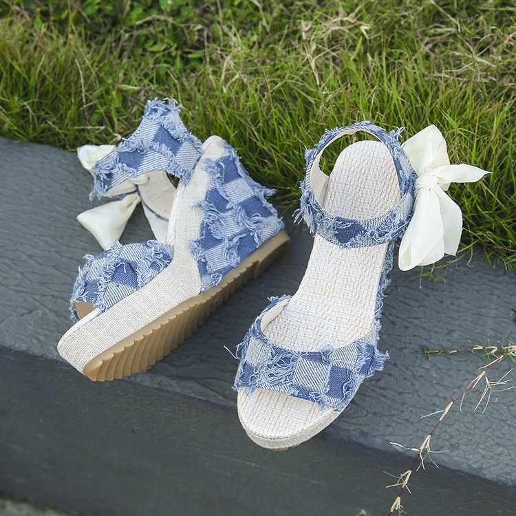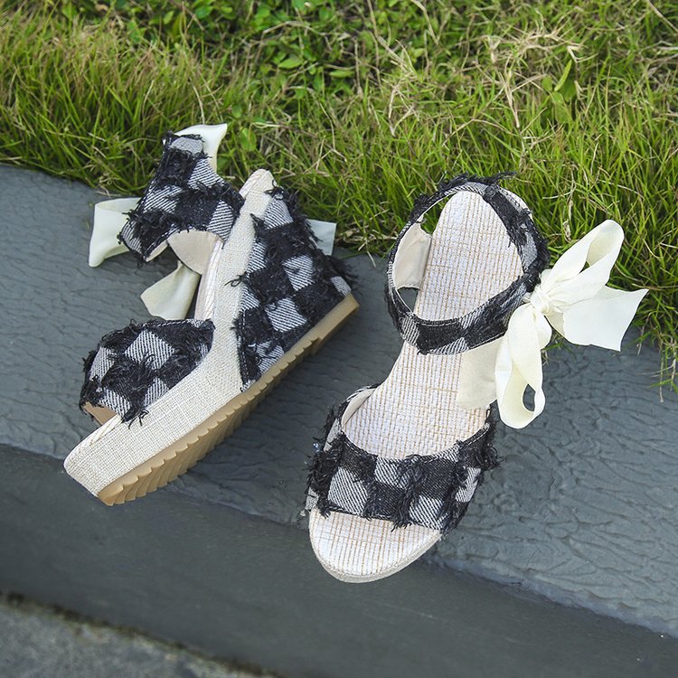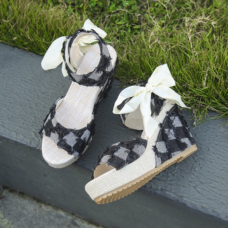 민족 스타일 쐐기 물고기 발가락 샌들 여성 여름 새로운 도착 활 레이스 업 컬러 짠 플랫폼 굽 샌들스토어 가기