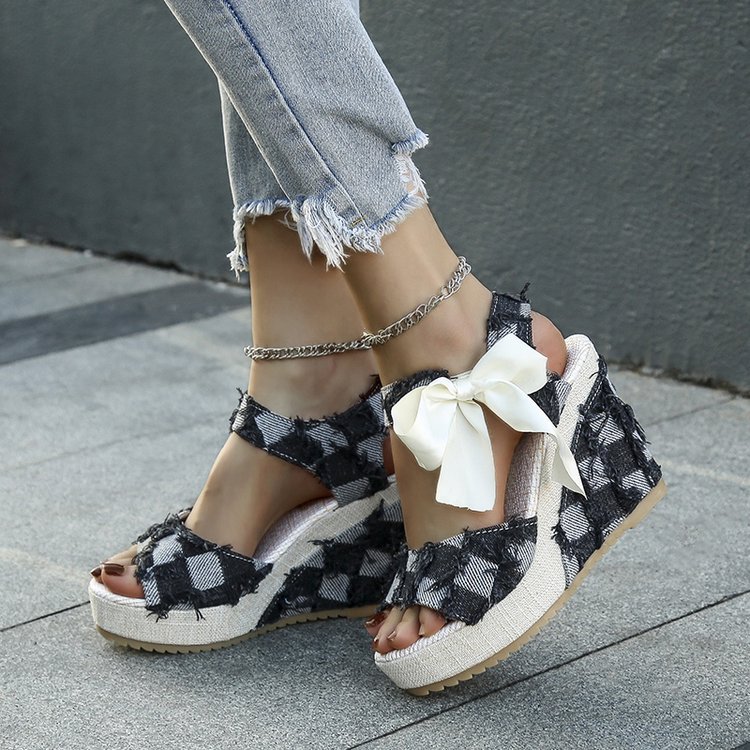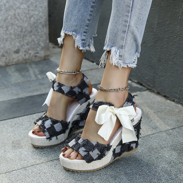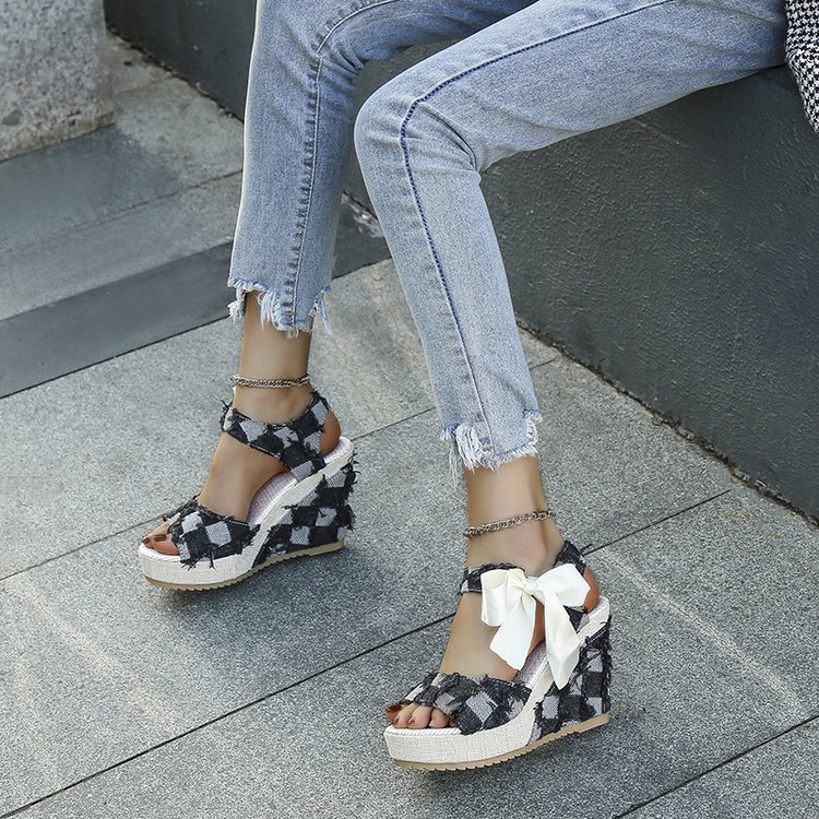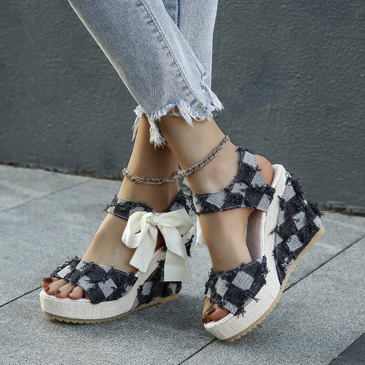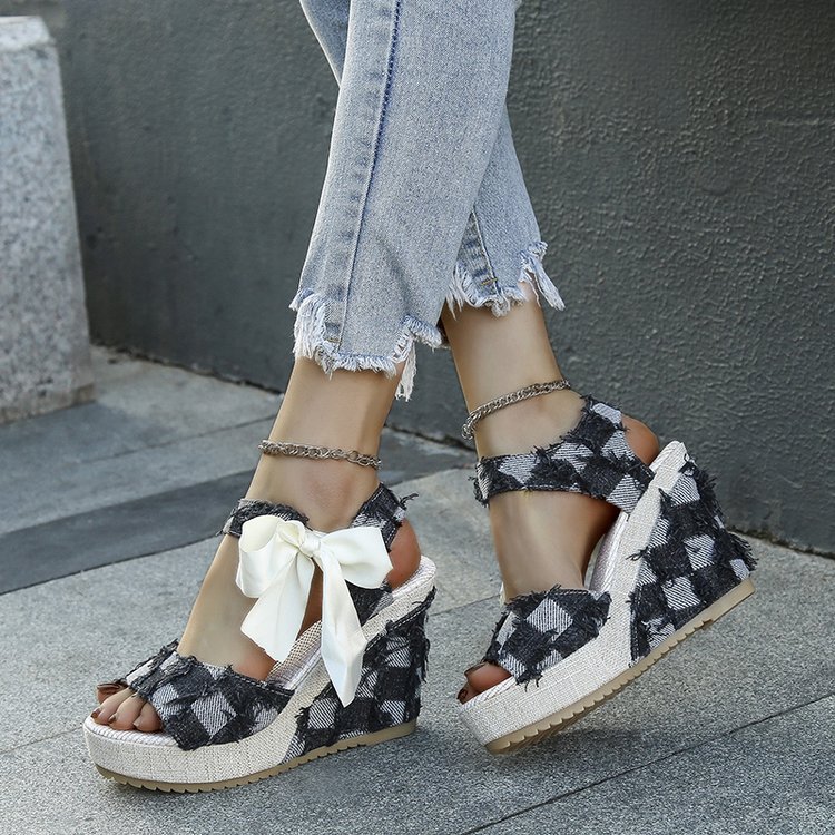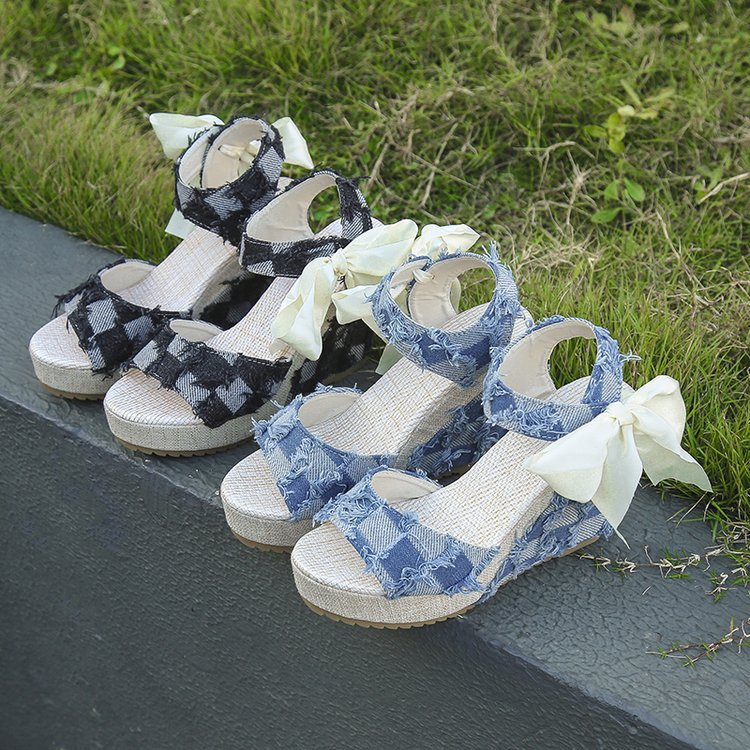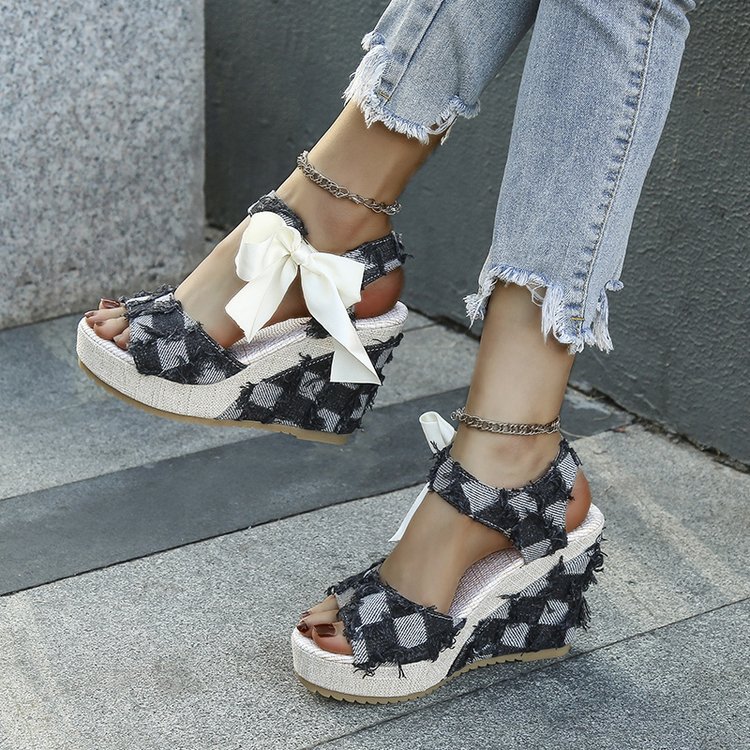 민족 스타일 쐐기 물고기 발가락 샌들 여성 여름 새로운 도착 활 레이스 업 컬러 짠 플랫폼 굽 샌들스토어 가기