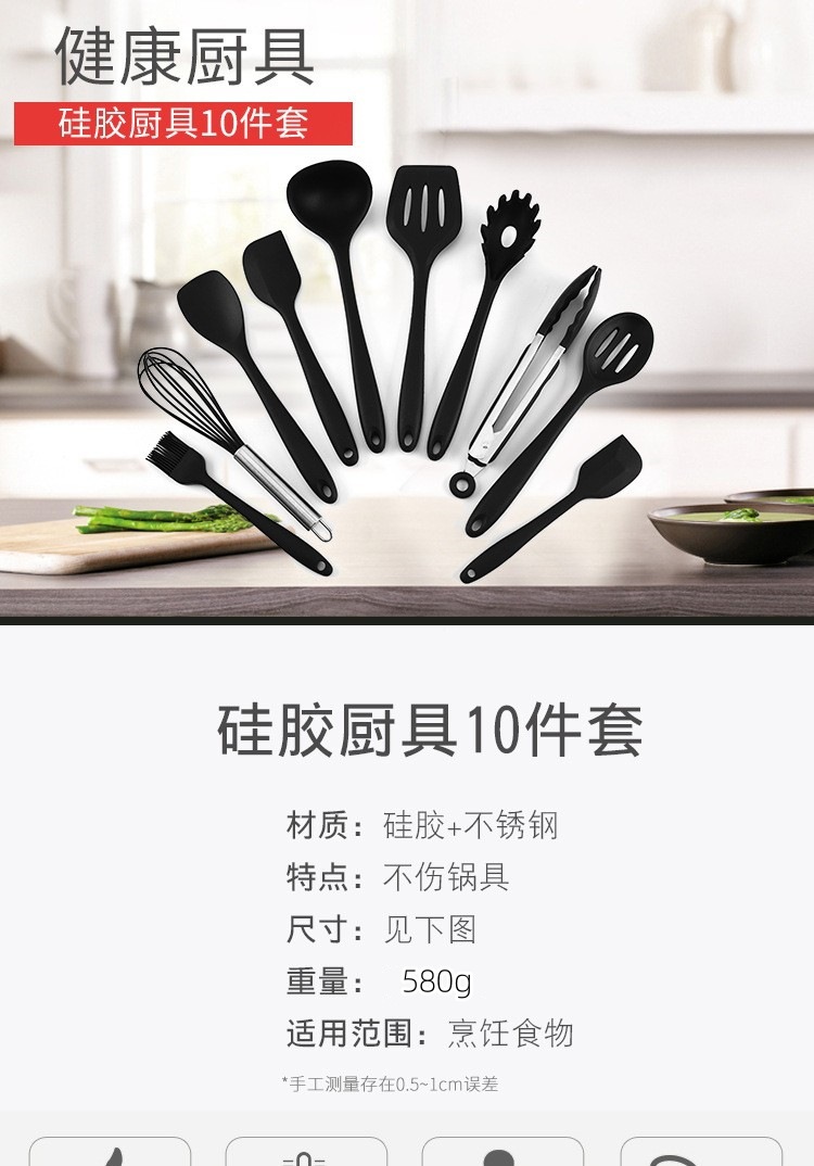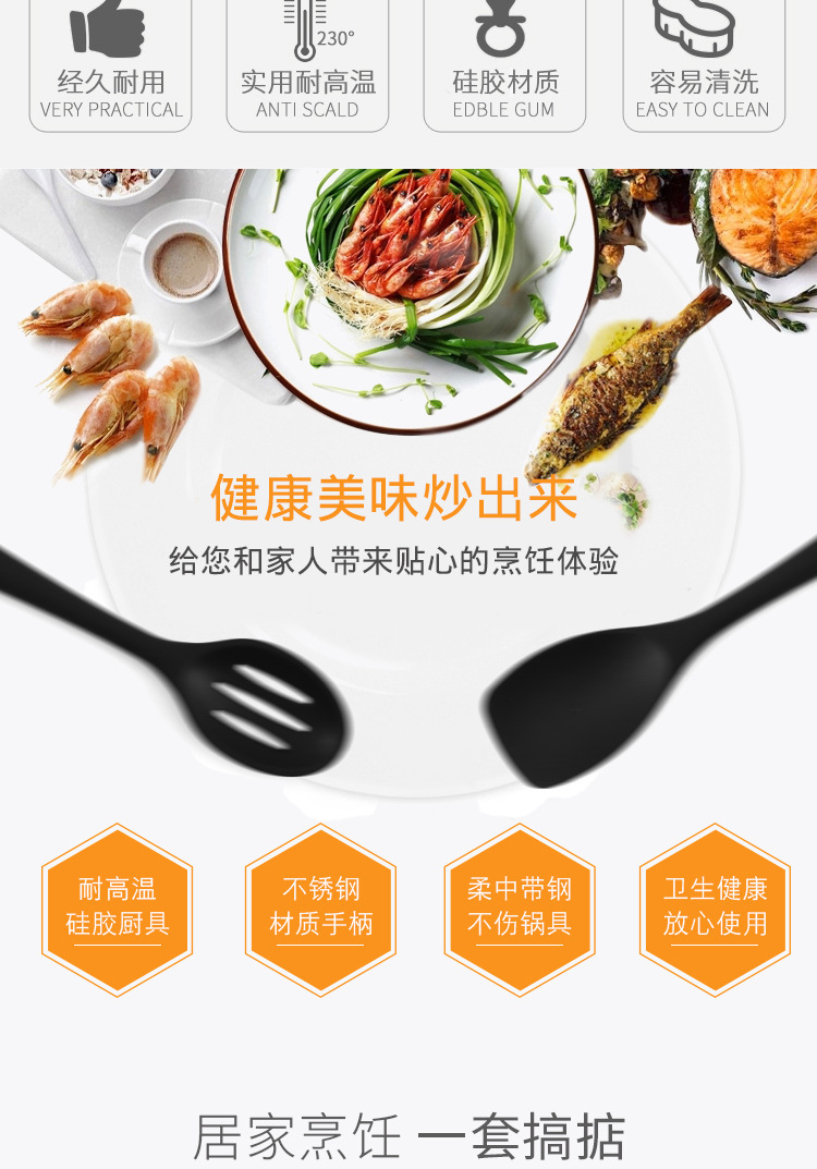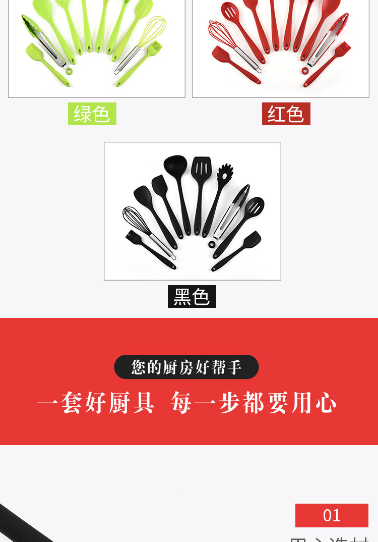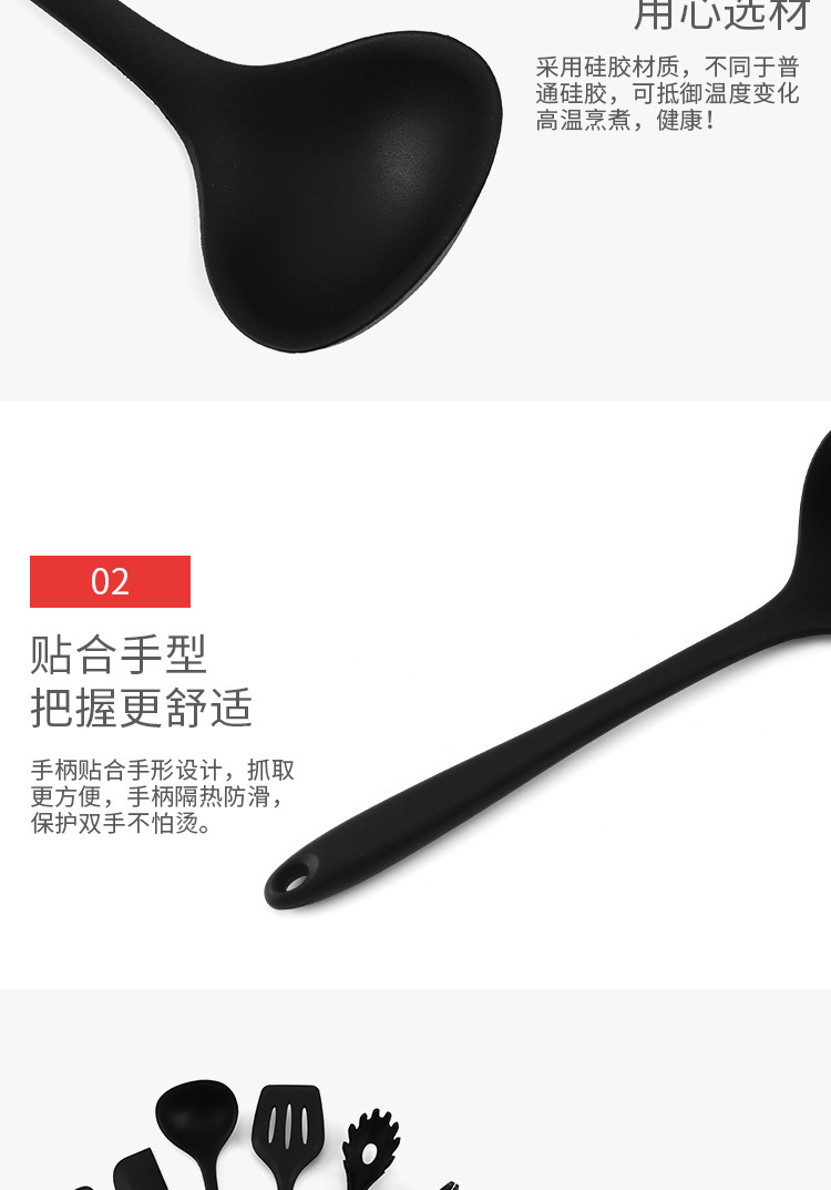 뜨거운 판매 실리콘 주방용품 10 조각 세트 실리콘 냄비 삽 숟가락 수프 스푼 비 스틱 요리 삽 스푼 세트 주방 용품스토어 가기