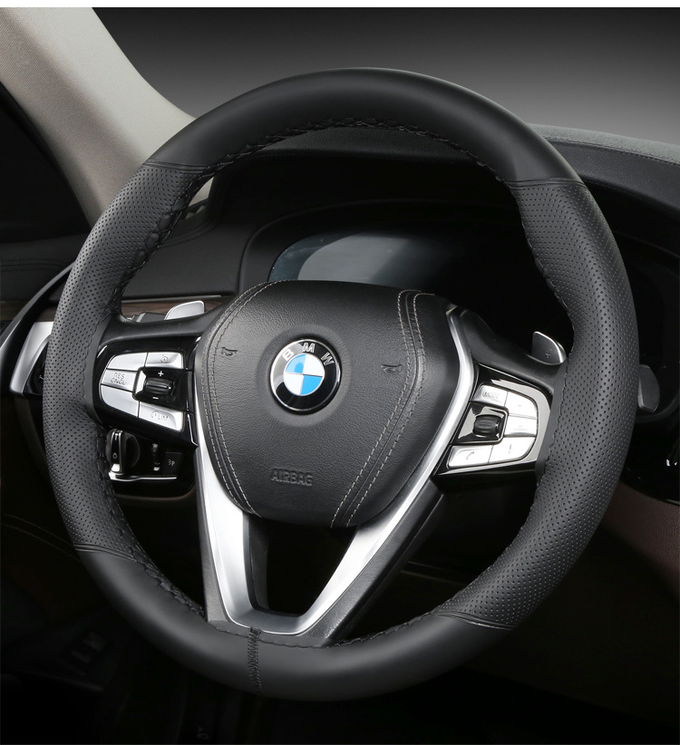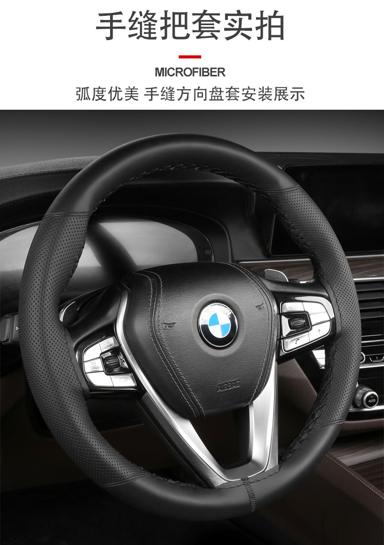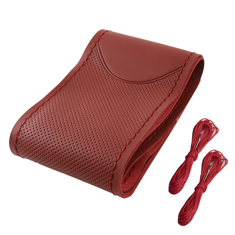 여름용 향기로운 차 폴리페놀이 포함된 국경 간 차량용 손바느질 스티어링 휠 커버, 가죽 미끄럼 방지 남성용 및 여성용 올 시즌 범용 핸들 커버스토어 가기