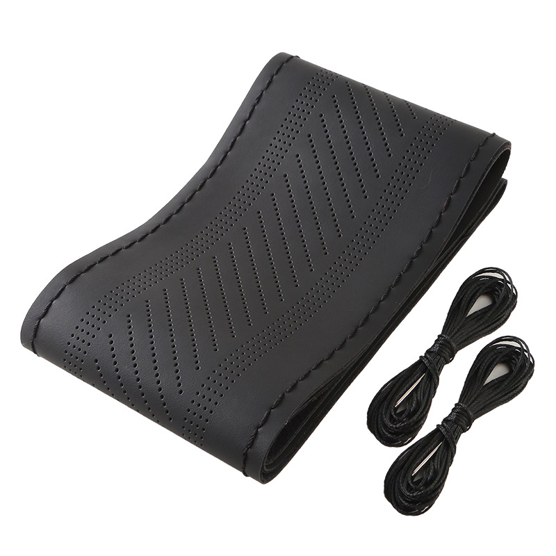 여름용 향기로운 차 폴리페놀이 포함된 국경 간 차량용 손바느질 스티어링 휠 커버, 가죽 미끄럼 방지 남성용 및 여성용 올 시즌 범용 핸들 커버