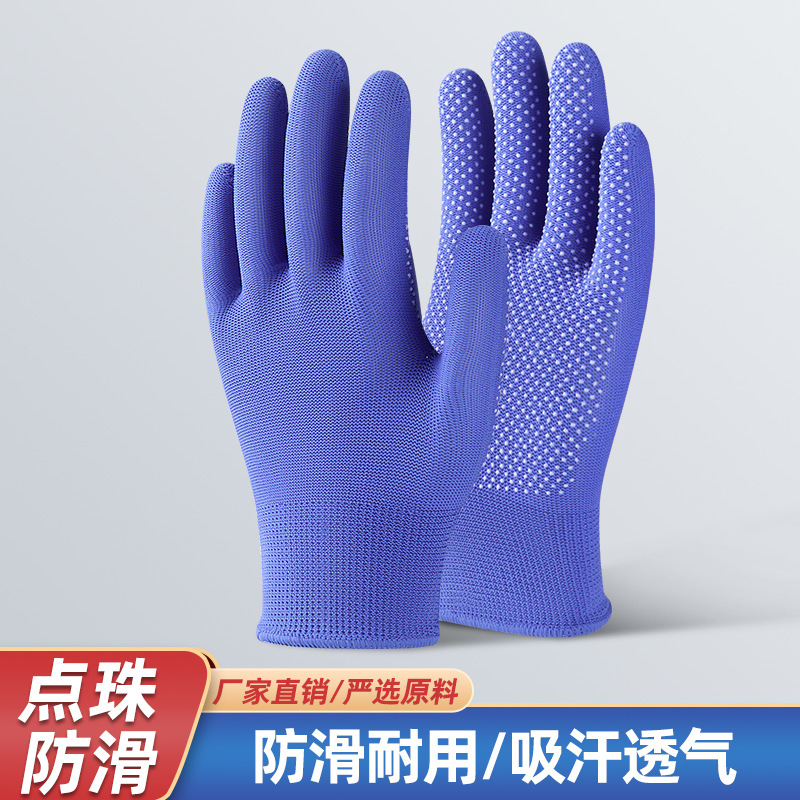 노동 보호 장갑 나일론 미끄럼 방지 장갑 13 핀 얇은 나일론 운전자 원예 남성 및 여성 분배 플라스틱 재고 운전