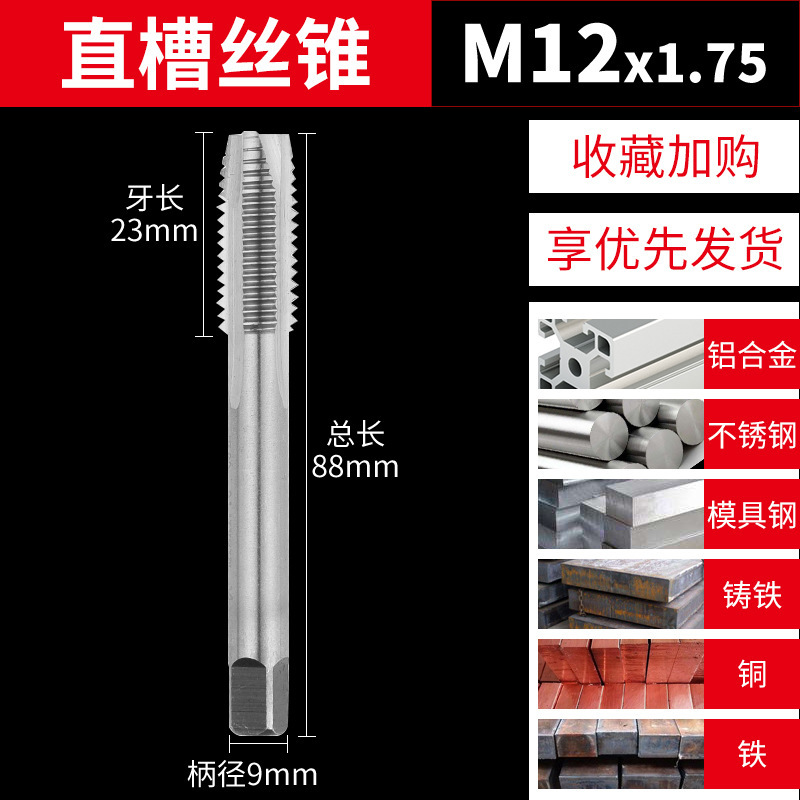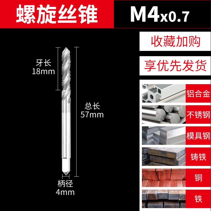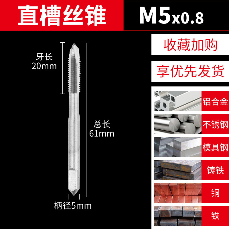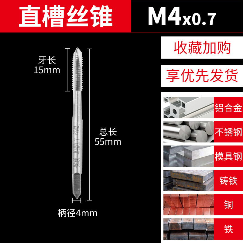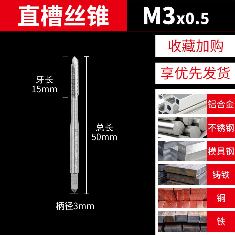 스테인레스 스틸 기계 손 셀프 태핑 메트릭 탭 스크류 트위스트 핸드 다이 스크류 압출 스트레이트 홈 탭 M2-M24스토어 가기