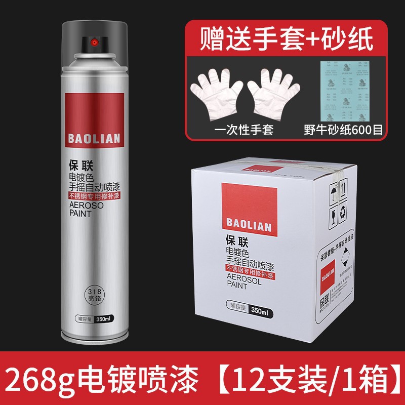 • (12개/상자) 268g 크롬 도금 스프레이 페인트(사포 장갑 포함)