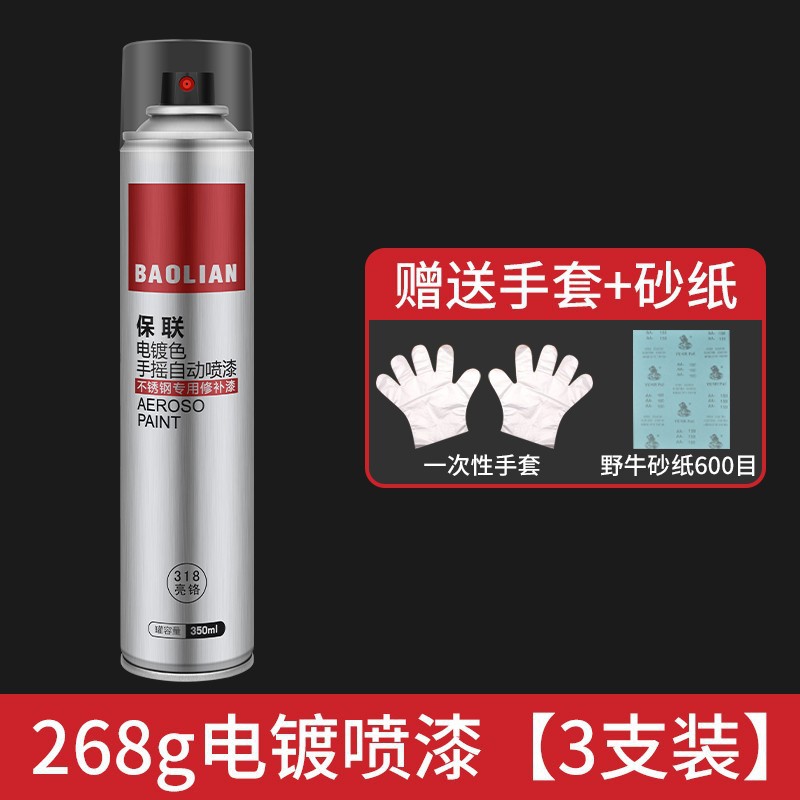 • (3개 팩) 268g 크롬 도금 스프레이 페인트(사포 장갑 포함)
