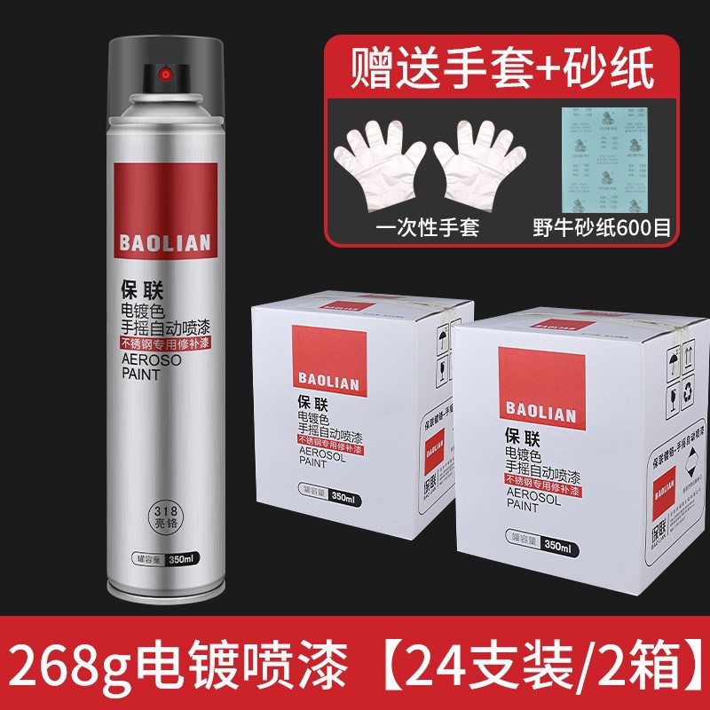 • (24개/2박스) 268g 크롬 도금 스프레이 페인트(사포 장갑 포함)