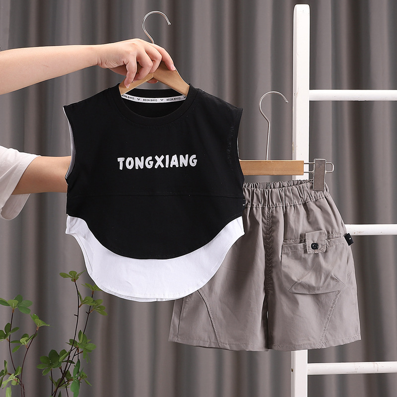 소년 여름 조끼 세트 2024 새 아기 여름 한국 잘 생긴 얇은 민소매 투피스 패션스토어 가기