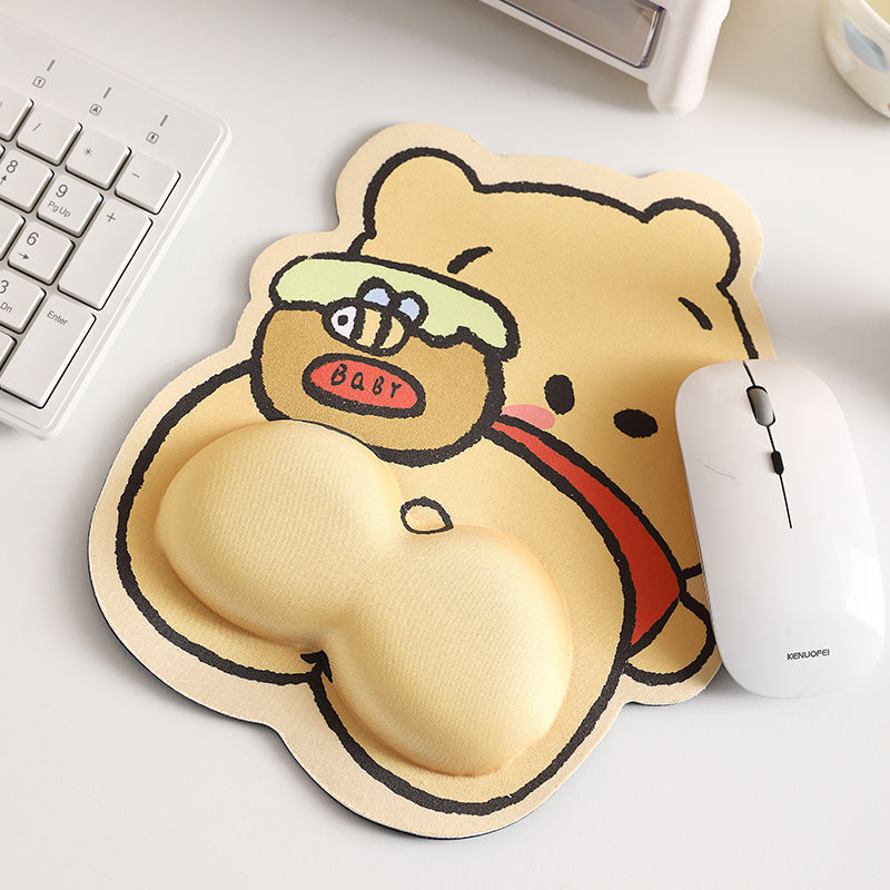 • 푸싱 방귀 노란색 곰 마우스 패드 키보드 손 휴식/2 팩