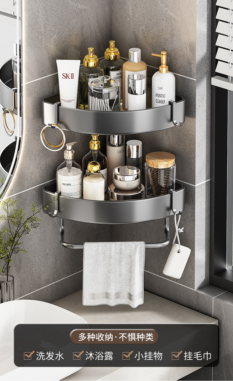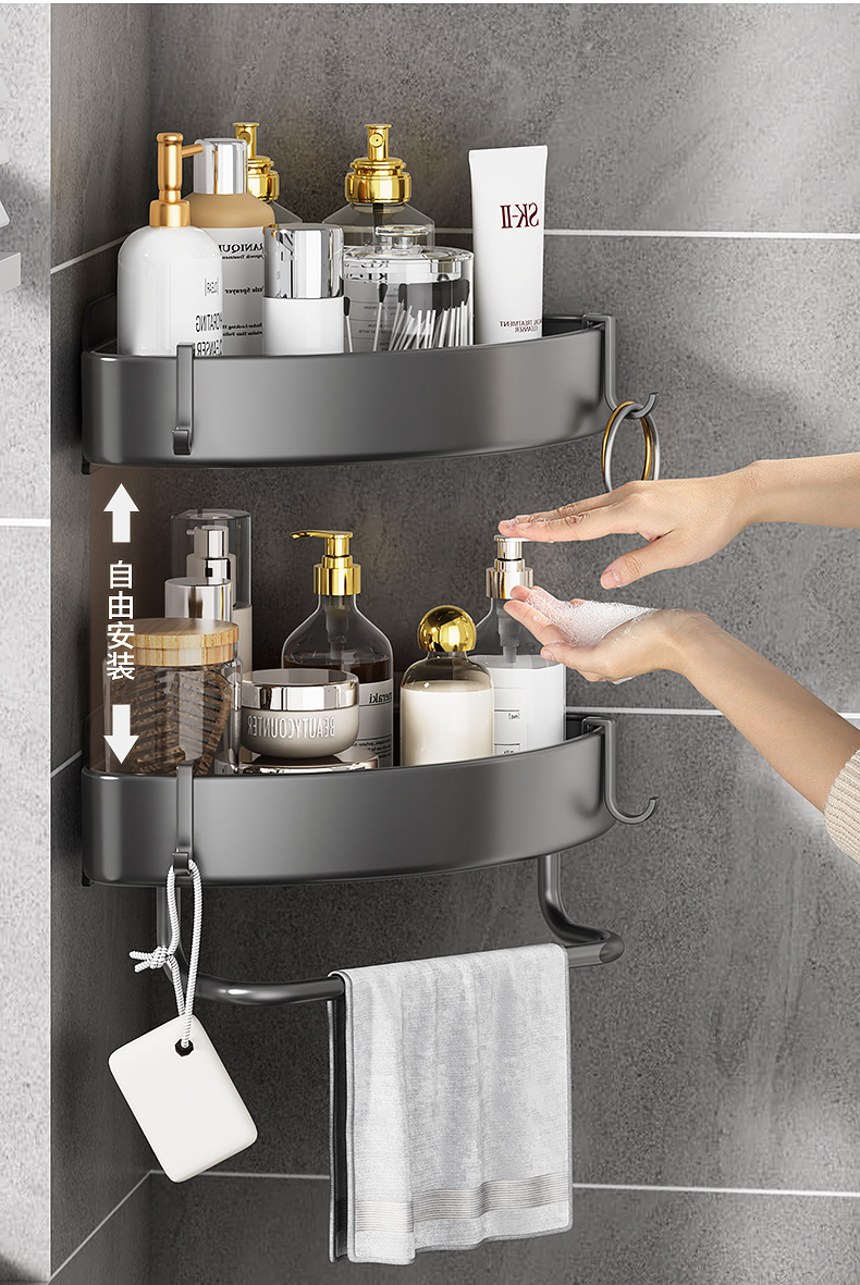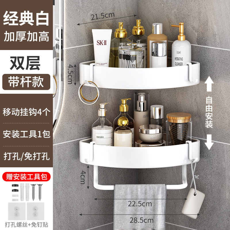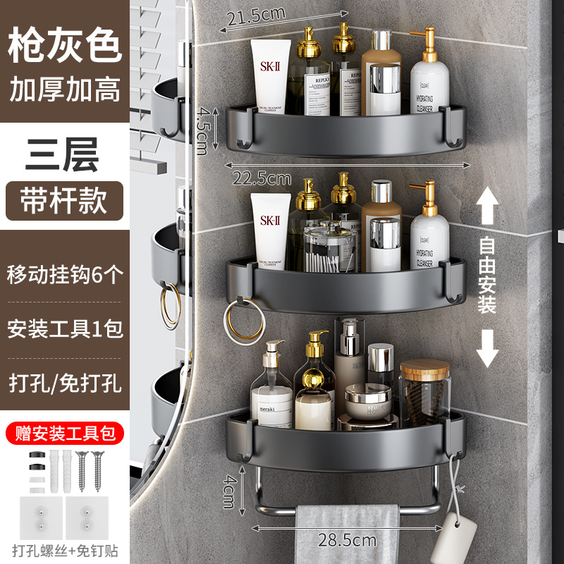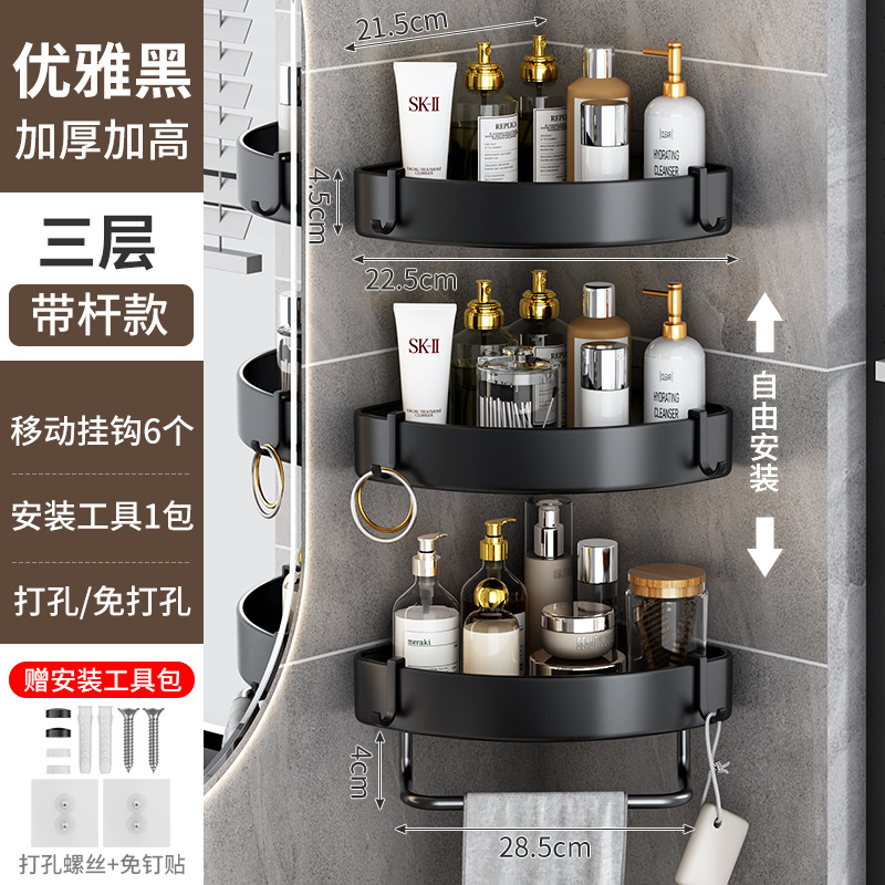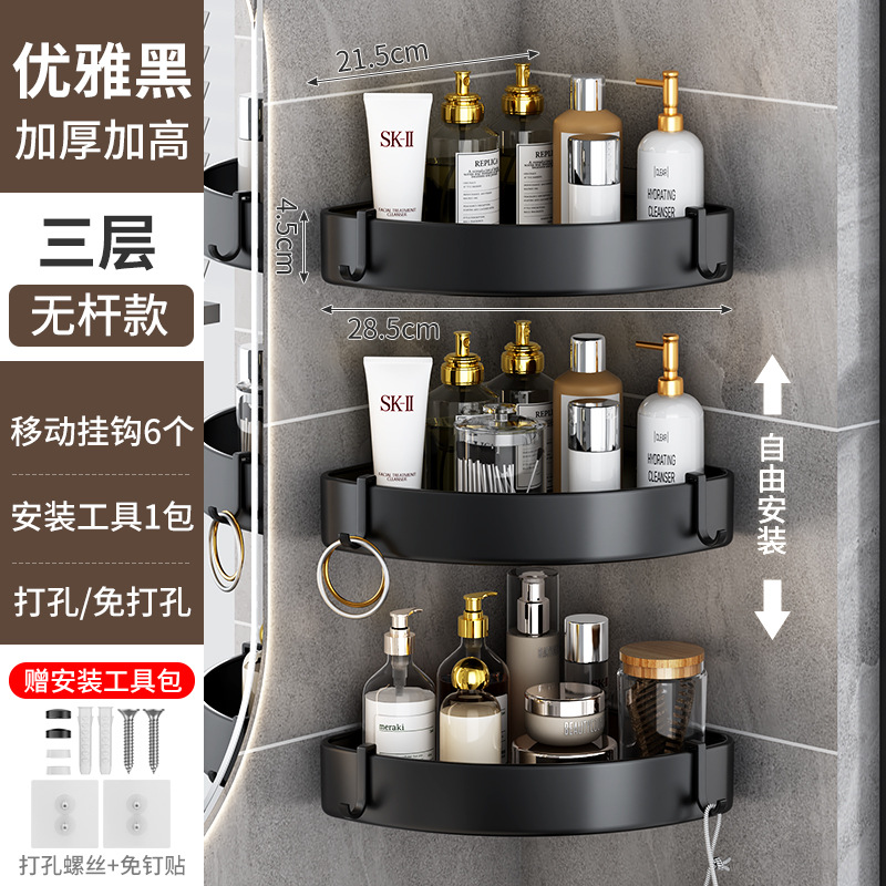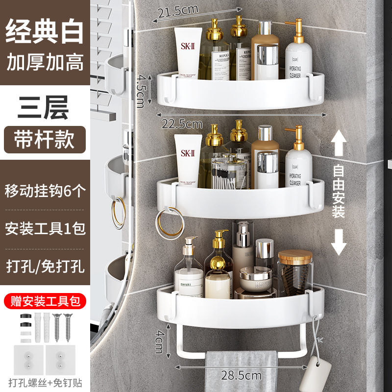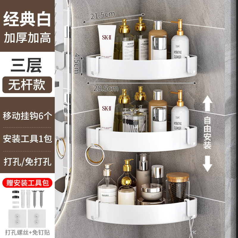 국경 간 욕실 삼각대 가정용 주방 코너 벽 교수형 랙 욕실 구멍이없는 보관 랙스토어 가기