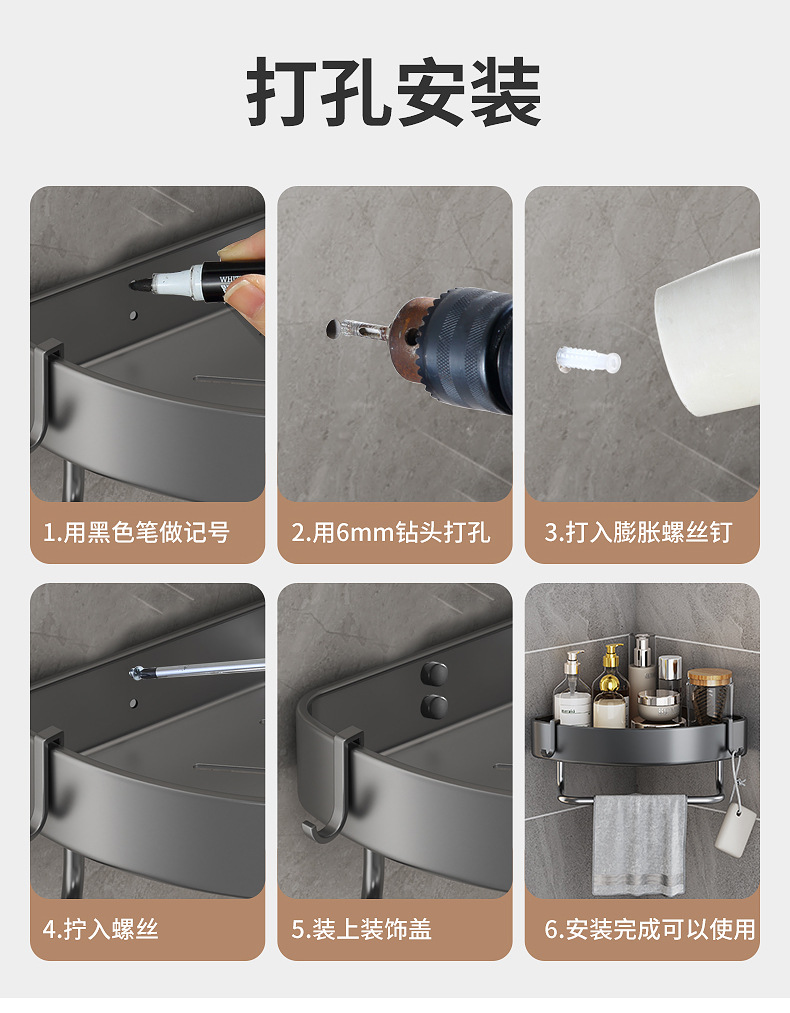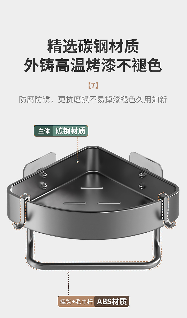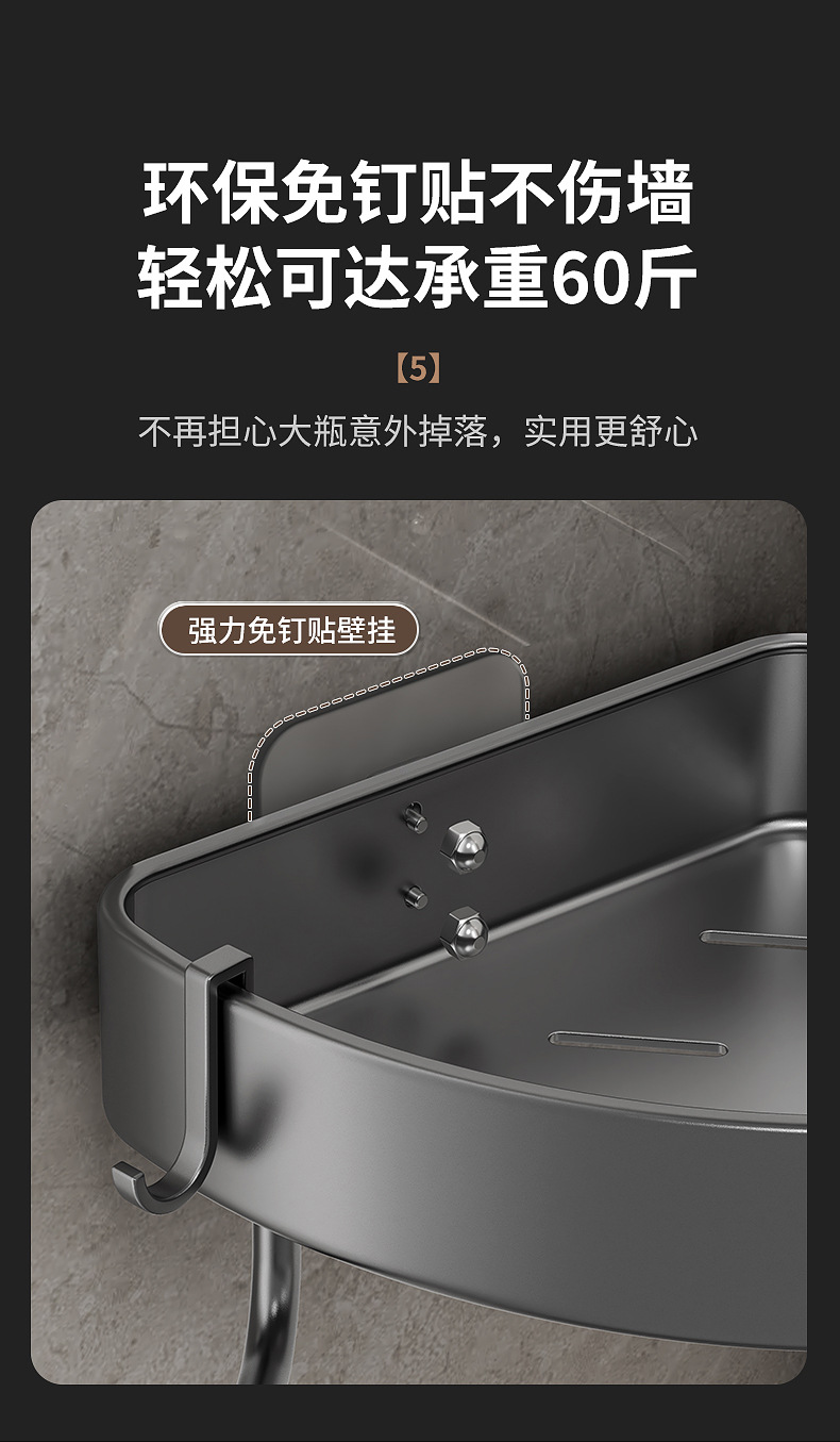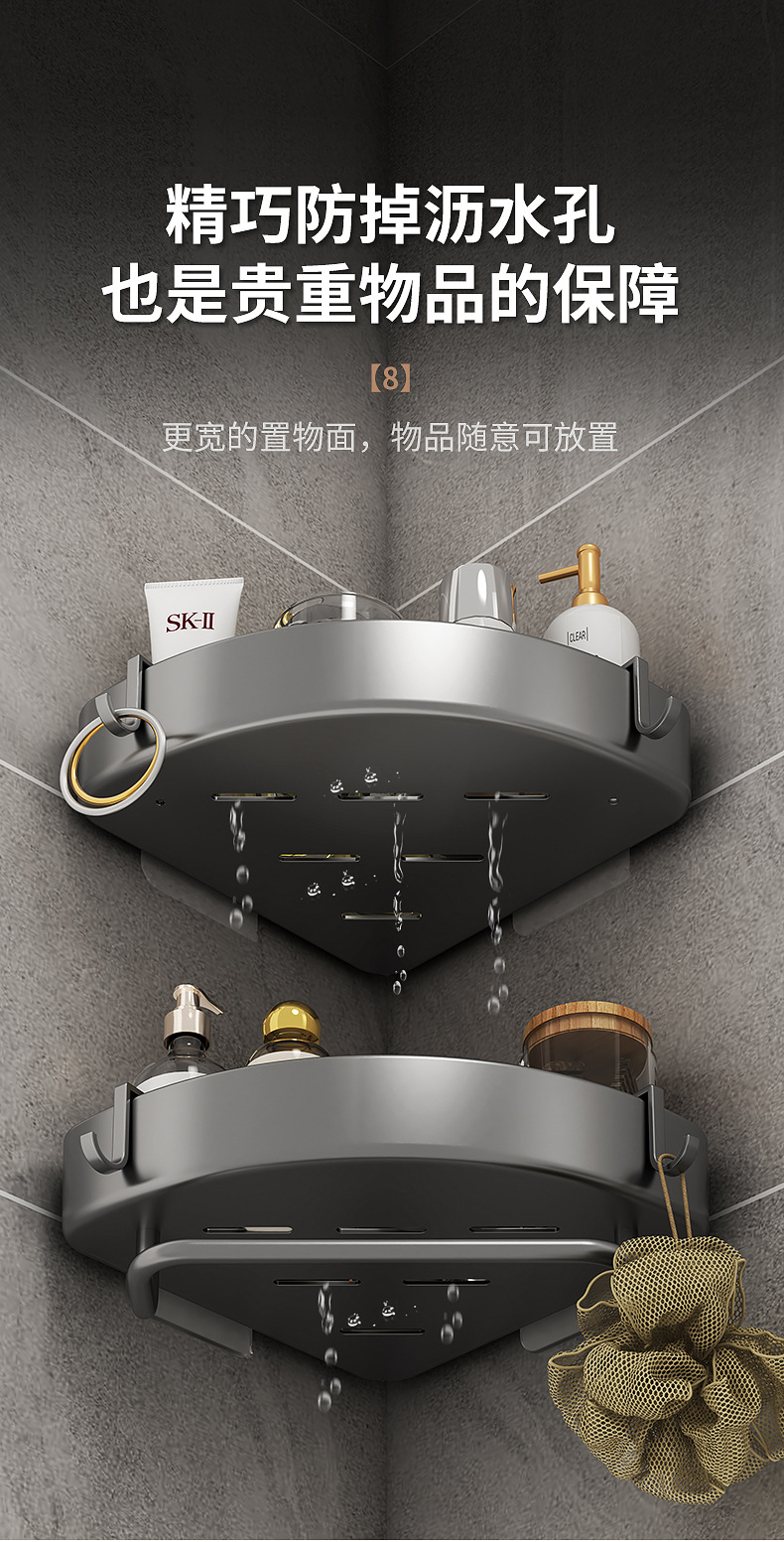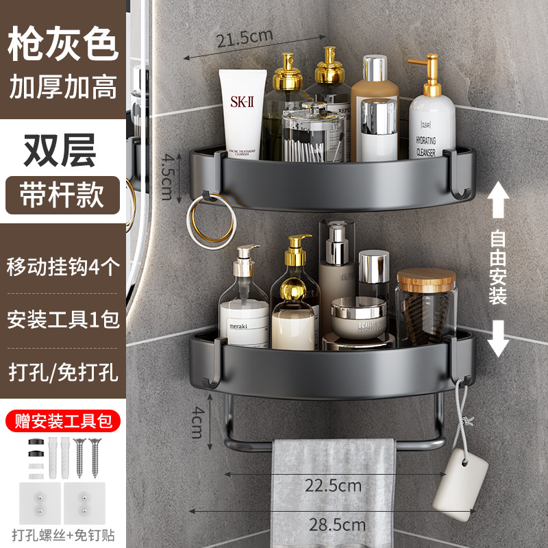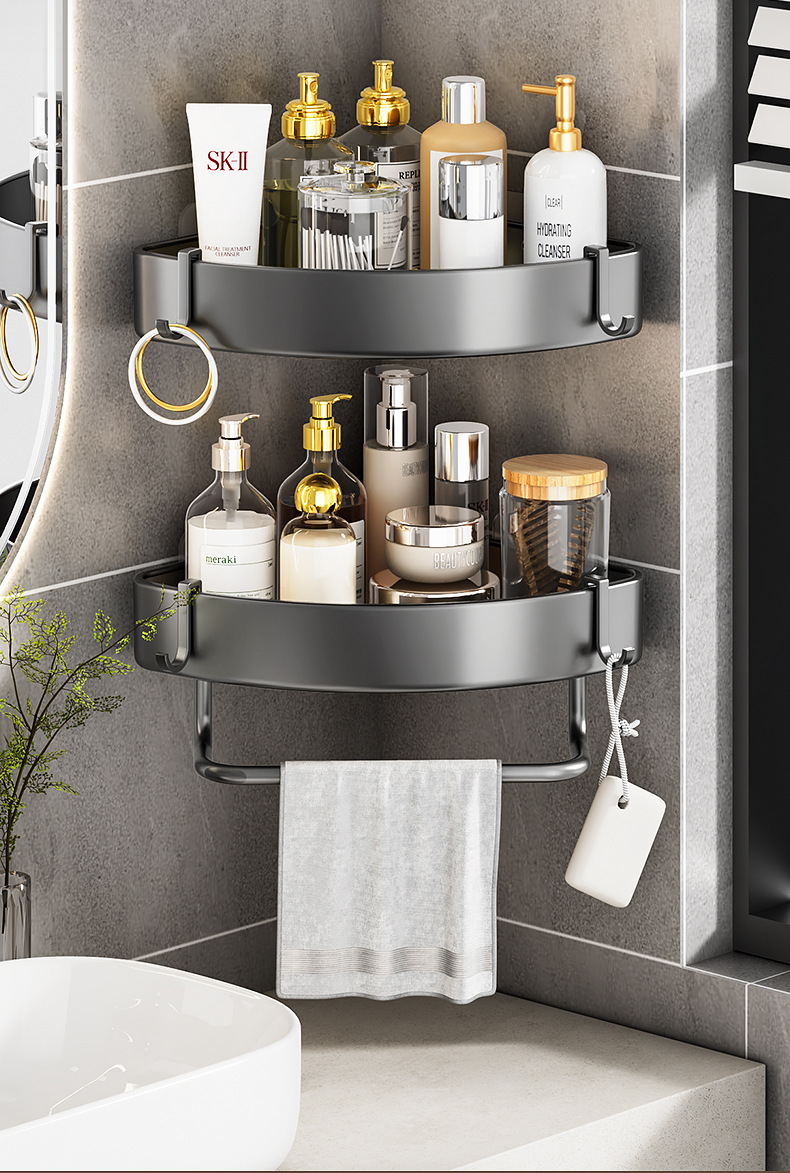 국경 간 욕실 삼각대 가정용 주방 코너 벽 교수형 랙 욕실 구멍이없는 보관 랙스토어 가기